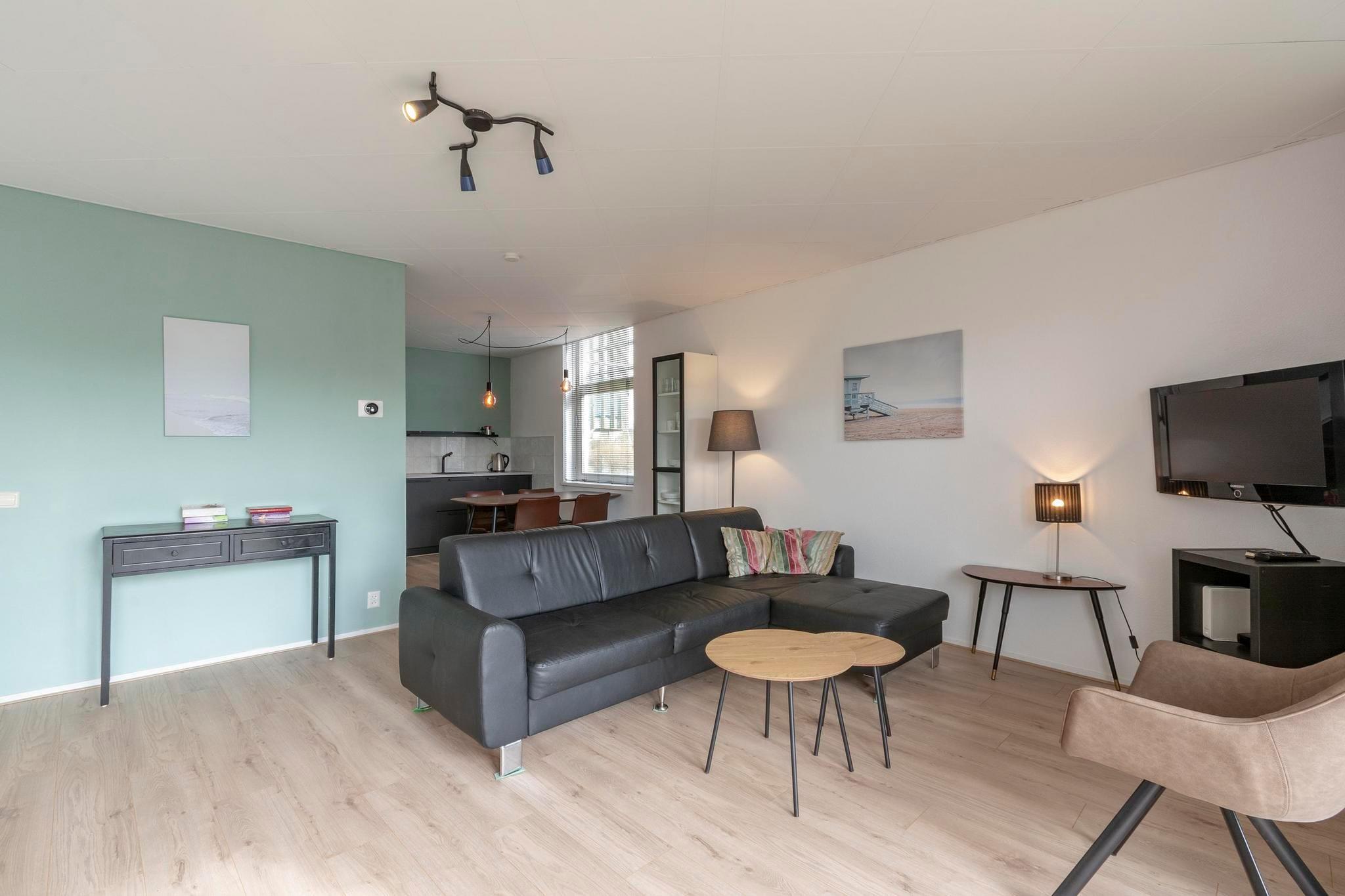 Velkommen til en nydelig kystleilighet perfekt plassert ved foten av sanddynene, et ideelt tilfluktssted for opptil fire gjester som ønsker å roe ned og nyte livet ved sjøen. Denne leiligheten er gjennomtenkt designet med moderne møbler og stilig innredning, og passer perfekt for par, små familier eller venner som ønsker en avslappet strandferie med komfort og sjarm. Innvendig føles leiligheten lys og innbydende. Stuen tilbyr vakker utsikt over sanddynene og et koselig sted å slappe av sammen etter en dag utendørs. Den innbydende spisestuen er perfekt for felles måltider, mens det fullt utstyrte kjøkkenet har alt du trenger for å tilberede frokost før stranden eller en avslappet middag om kvelden. To komfortable soverom lover avslappende netter, og badet, utstyrt med badekar og dusj, gir hverdagslig bekvemmelighet. Gå ut på den solrike terrassen og nyt den friske sjøluften, enten du starter dagen med kaffe eller slapper av etter en lang spasertur langs kysten. Lange sandstrender ligger bare noen få minutter unna, ideelle for bading, soling, drageflyging eller fredelige solnedgangsturer. I kjøligere årstider inviterer de omkringliggende sanddynene og kyststiene til naturskjønne turer og sykling gjennom vide, åpne landskap. I nærheten finner du sjarmerende kystbyer med butikker, bakerier, kafeer og restauranter, samt lokale markeder og sesongbaserte arrangementer som gir oppholdet ditt særpreg. Beliggenheten er også et flott utgangspunkt for dagsturer til nærliggende kystlandsbyer, havner og naturområder. For å gjøre oppholdet ditt enda mer spesielt, er én hund velkommen, slik at din firbeinte følgesvenn også kan nyte stranden og sanddynene. Denne leiligheten tilbyr en avslappet og minneverdig feriesetting der komfort, natur og kystliv forenes vakkert.