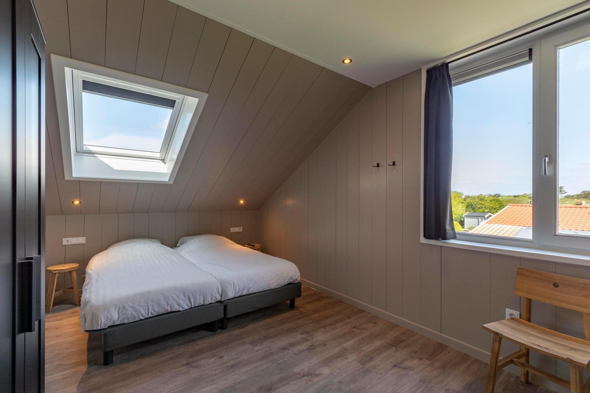 Denne luksuriøse villaen er det perfekte stedet for å lade opp og koble av. Etter en lang spasertur på stranden eller en dag i solen, kan du slappe av i badstuen, boblebadet eller badekaret. Huset er ideelt for familier, par eller grupper, og tilbyr god plass både inne og ute, med hvert soverom med eget bad for ekstra komfort. Kos deg med å lage mat sammen ved kjøkkenøya, spise ved bordet og deretter slappe av i boblebadet eller badstuen. Den romslige hagen har en trampoline for de små, mens eldre barn og voksne kan kose seg i boblebadet og nyte privatlivet på sine egne bad. Villaen er moderne og vakkert innredet, og har alt som trengs for en fantastisk ferie. Velværeområdet inkluderer et frittstående badekar, dusjkabinett og infrarød badstue. Det overbygde boblebadet gjør utendørs avslapning enkelt året rundt. Ett av de tre soverommene er i første etasje, noe som gjør hjemmet tilgjengelig og praktisk for alle. Det fullt utstyrte kjøkkenet har innebygde hvitevarer, og den koselige stuen med peis åpner direkte ut mot hagen via franske dører. Gulvvarme gir ekstra komfort. Villaen ligger bare noen få minutters gange fra stranden i Nord-Holland, og tilbyr en perfekt balanse mellom avslapning og utforskning. Om våren kan du nyte de fantastiske løkeåkrene og ta dagsturer til Alkmaar eller Texel. Den anlagte, inngjerdede hagen gir privatliv og god plass til at hunder kan løpe fritt. Det er parkering for to biler på gården, pluss et romslig skur for sykler og en vaskemaskin for enkelhets skyld. Hunder er velkomne, noe som gjør dette til et fantastisk tilfluktssted for alle.