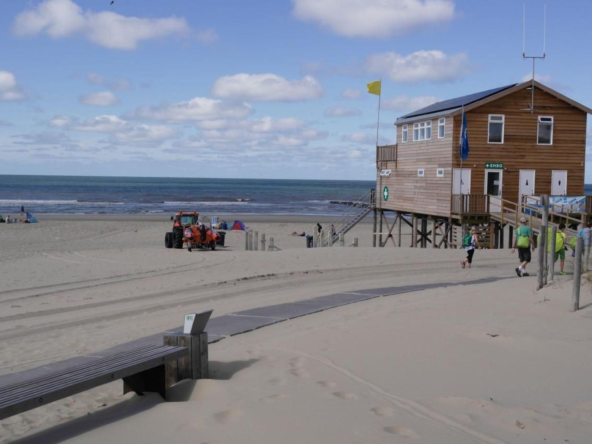 The holiday bungalow is located on a small, spacious holiday park 'De Zandloper', directly behind the dunes. The holiday home is only 5 minutes away on foot (500 m) from the beach leading ramp. The footpath through the dune is then about 300m long. In the immediate vicinity of the park you will find relaxation on the beach and many hiking and biking trails, numerous attractions and a subtropical swimming pool (3 km). The long and wide beach and the diverse surroundings will enchant you. There are various beach pavilions and in the summer season the beach is guarded by the coastal lifeguards.