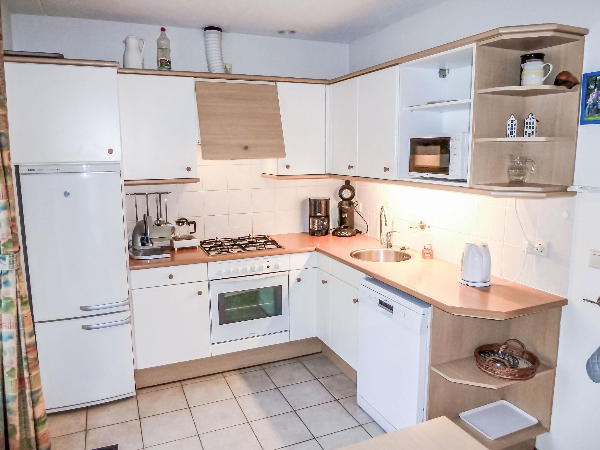 "4L", 3-room bungalow 50 m2, on the ground floor. Practical and cosy furnishings: entrance hall. Living/dining room with dining table and TV. Exit to the garden, to the terrace. 1 room with 2 beds, hand-basin and shower/WC. 1 room with 2 beds and bath/WC. Open kitchen (4 hot plates, dishwasher, kettle, electric coffee machine). Heating. Terrace, garden. Terrace furniture. Facilities: Internet (WiFi, free). Parking at the house. Please note: maximum 2 pets/ dogs allowed. Smoke alarm. Pets on request. One bedroom may have a double bed instead of two single beds.