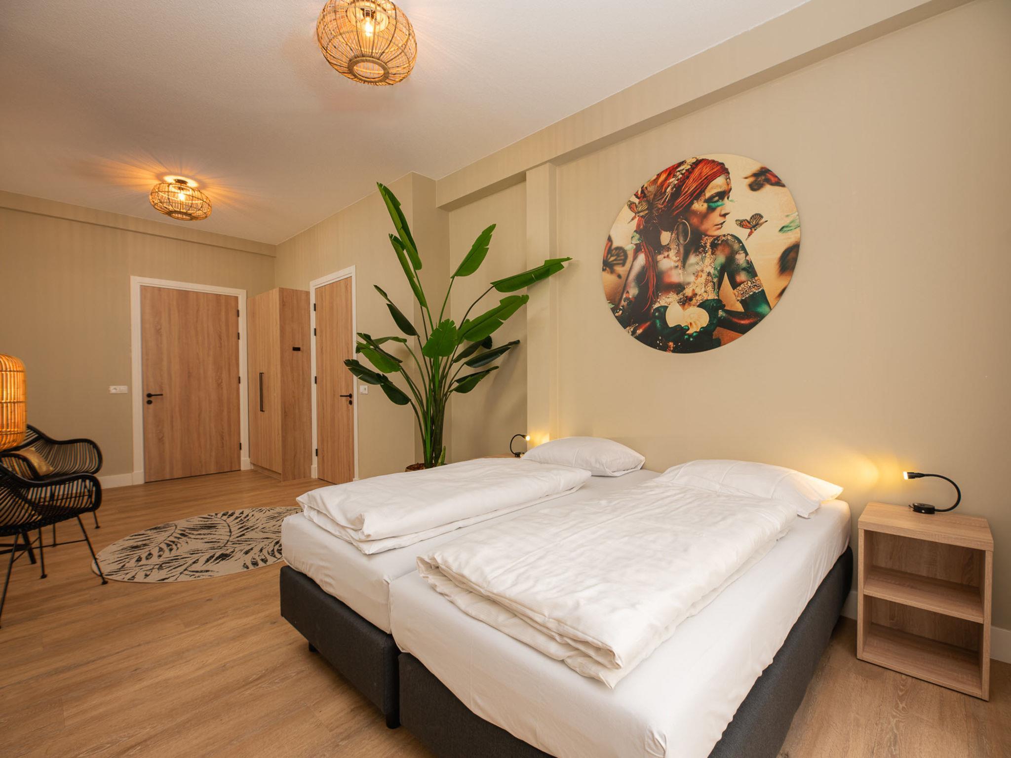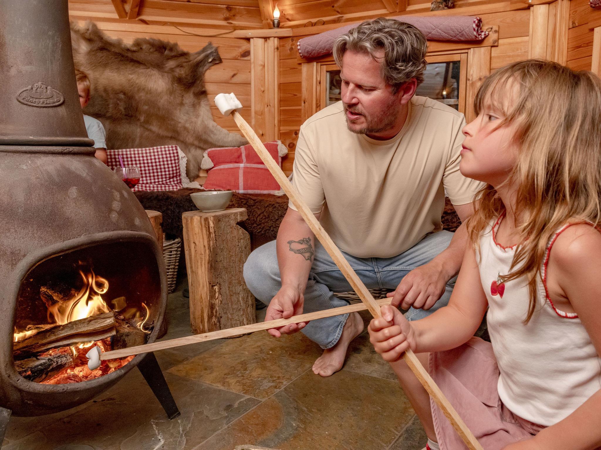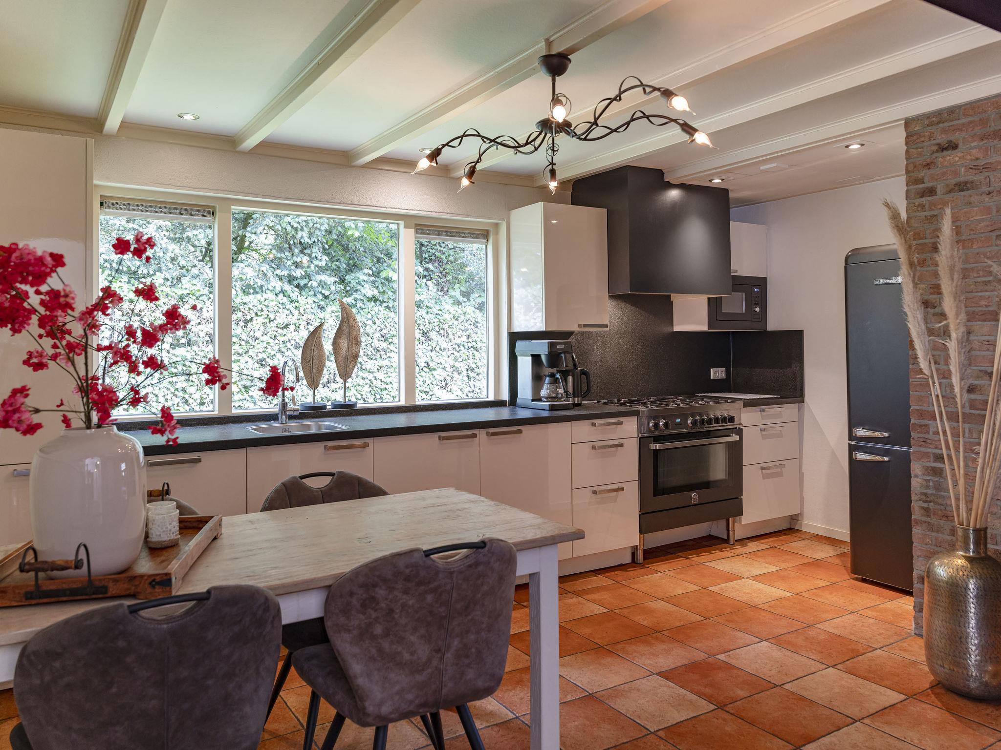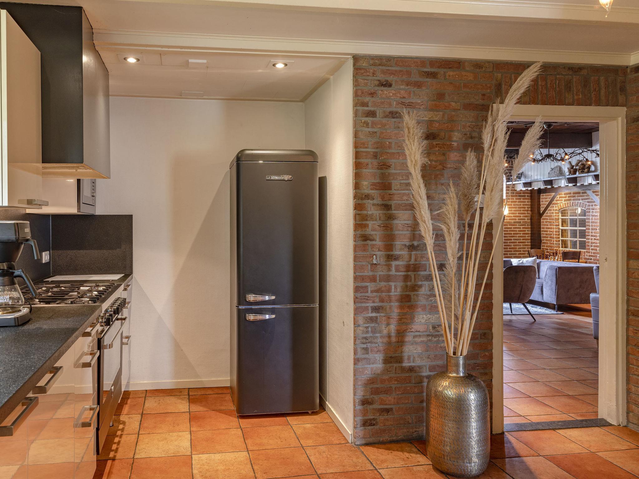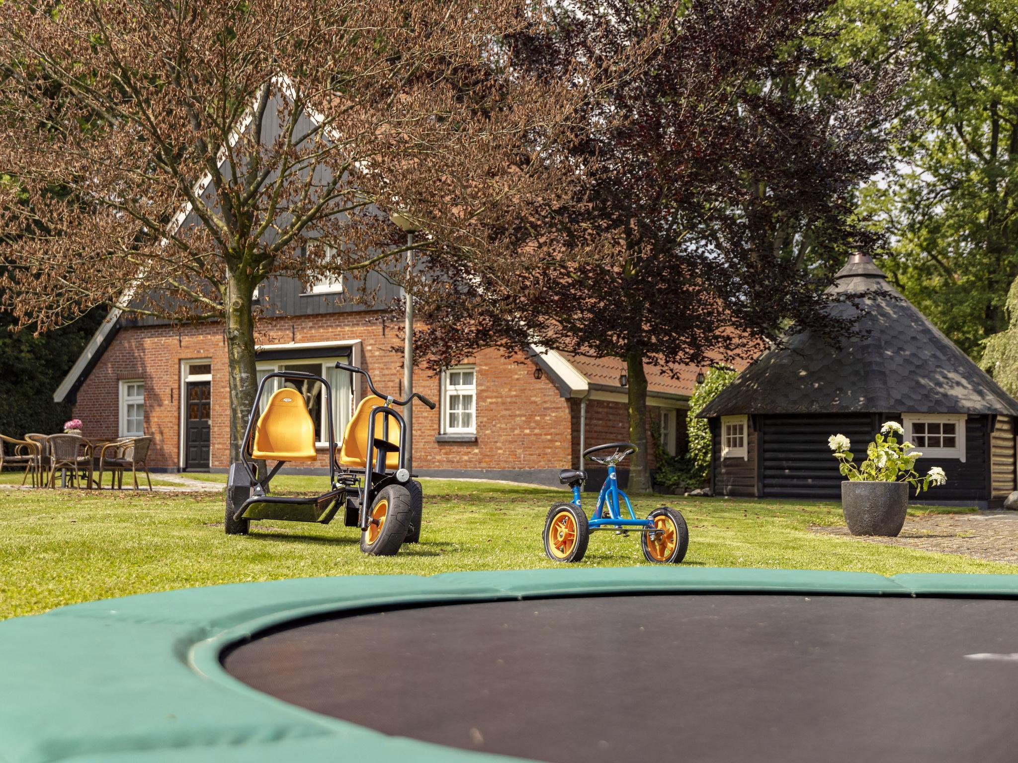 "Familieboerderij", 8-room farmhouse 230 m2 on 2 levels. Comfortable and rustic furnishings: entrance hall with separate WC. Living/dining room with TV. 4 rooms, each room with 2 beds, hand-basin and shower/WC. 1 room with 2 beds, hand-basin and hip bath. Kitchen (6 hot plates, oven, dishwasher, kettle, microwave, electric coffee machine) with dining table. Heating. Upper floor: 2 rooms, each room with 2 beds, hand-basin and shower/WC. Terrace, garden. Terrace furniture, box-room. Facilities: washing machine, dryer, children's high chair, baby cot for up to 3 year olds. Internet (WiFi, free). Please note: non-smokers only. Smoke alarm. In the garden is a Finnish Kota and a hot tub for private use.
