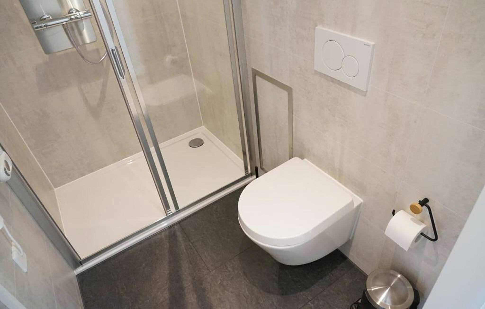 - WC med varmt og kaldt vann, Dusj