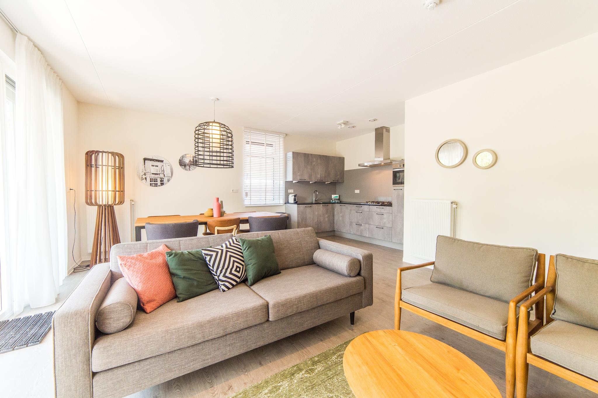 Moderne komfort i hjertet av Resort Maastricht Velkommen til ditt stilige hjem-borte-fra-hjemmet på det pulserende Wilhelmusplein, det bankende hjertet av Resort Maastricht. Denne lyse og moderne leiligheten, ferdigstilt i 2018, tilbyr den perfekte blandingen av komfort og bekvemmelighet, ideell for familier, grupper eller venner som reiser sammen. Med tre koselige soverom og en romslig stue, er dette kjæledyrvennlige stedet perfekt for å slappe av etter en dag med utforsking. Det åpne kjøkkenet har førsteklasses hvitevarer, noe som gjør matlagingen til en lek, mens den solrike terrassen inviterer deg til å slappe av med din favorittdrink. Sentral beliggenhet med servering og morsomme skritt unna Gå ut døren og inn på det livlige torget, hvor kafeer, et bakeri og et velassortert supermarked gjør hver dag enkel og overbærende. Enten du tar morgencroissanter eller nyter en lang middag på et nærliggende brasserie, er alt du trenger bare noen få skritt unna. Gjestene har også tilgang til et felles innendørsbasseng – flott for alle årstider. En kjæledyrelskende base for å utforske Limburg Ta med deg din pelskledde venn! Maastricht tilbyr naturskjønne kjæledyrvennlige stier, som den frodige Jekerdal-parken i nærheten, og mange kafeer i sentrum tar imot hunder på terrassene deres. Etter en dag med eventyr kan du gå tilbake til ditt rolige tilfluktssted og slappe av på balkongen eller den romslige terrassen. Med komfort, stil og en fantastisk beliggenhet, er denne leiligheten den perfekte basen for din Maastricht-ferie.