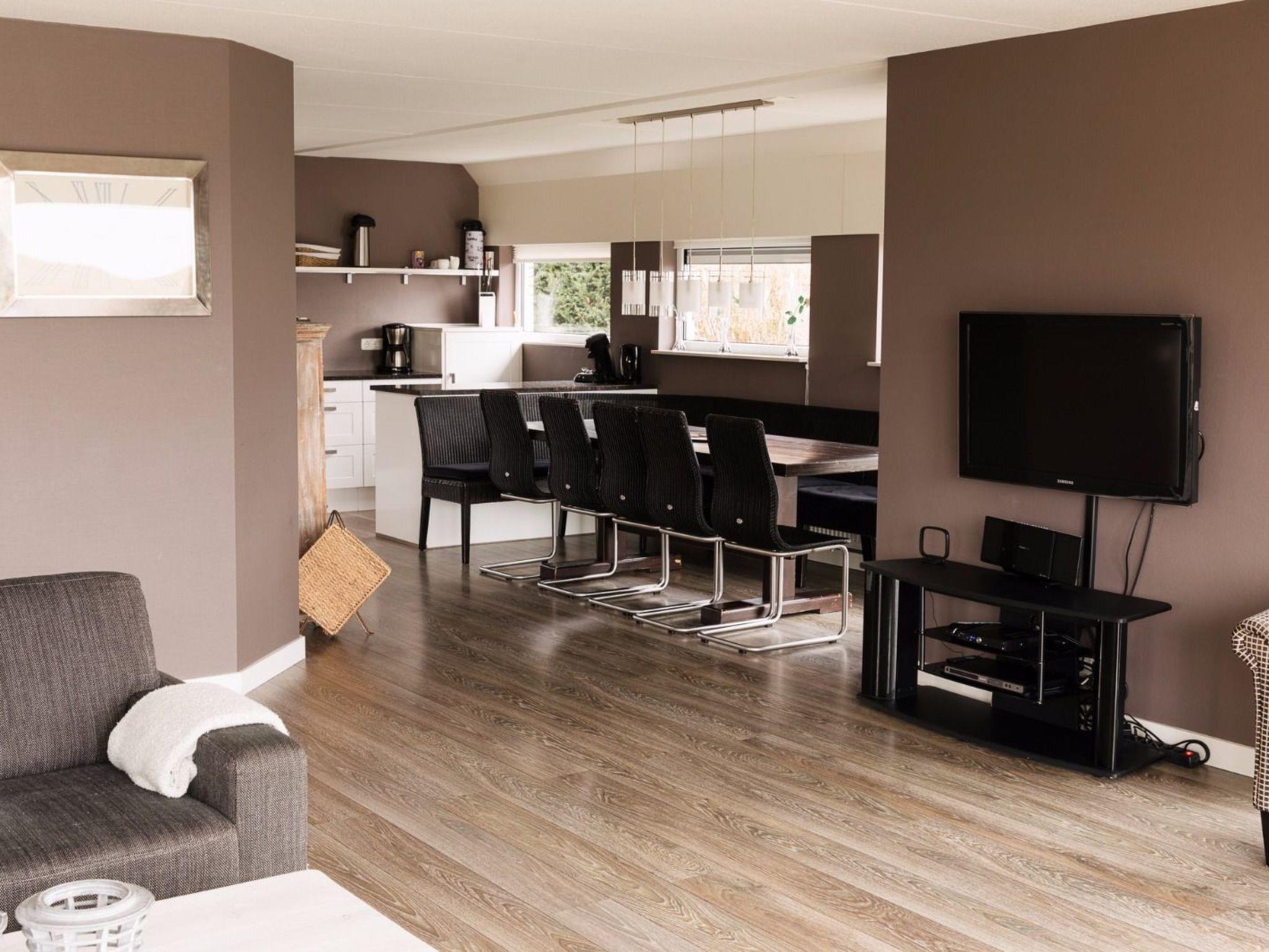 The two-storey holiday house has been completely renovated and newly furnished. It has central heating and provides 130m² of living space for ten people. The first bedroom is on the ground floor and is furnished with a double bed (180 x 200cm). It has direct access to a bathroom with a toilet and shower. The other three bedrooms are on the first floor. Two of them each have a double bed (180 x 200cm) and a single bed (90 x 200cm), the other has two single beds (90 x 200cm). There is a second bathroom with a bath on the first floor. The ground floor also has an additional WC. The spacious living room on the ground floor, like the bedrooms, has modern and well-presented furnishing, with a cosy sitting area with a big corner sofa and armchairs, as well as a fully-equipped kitchen with a dining space in front with a corner bench and chairs for ten people.