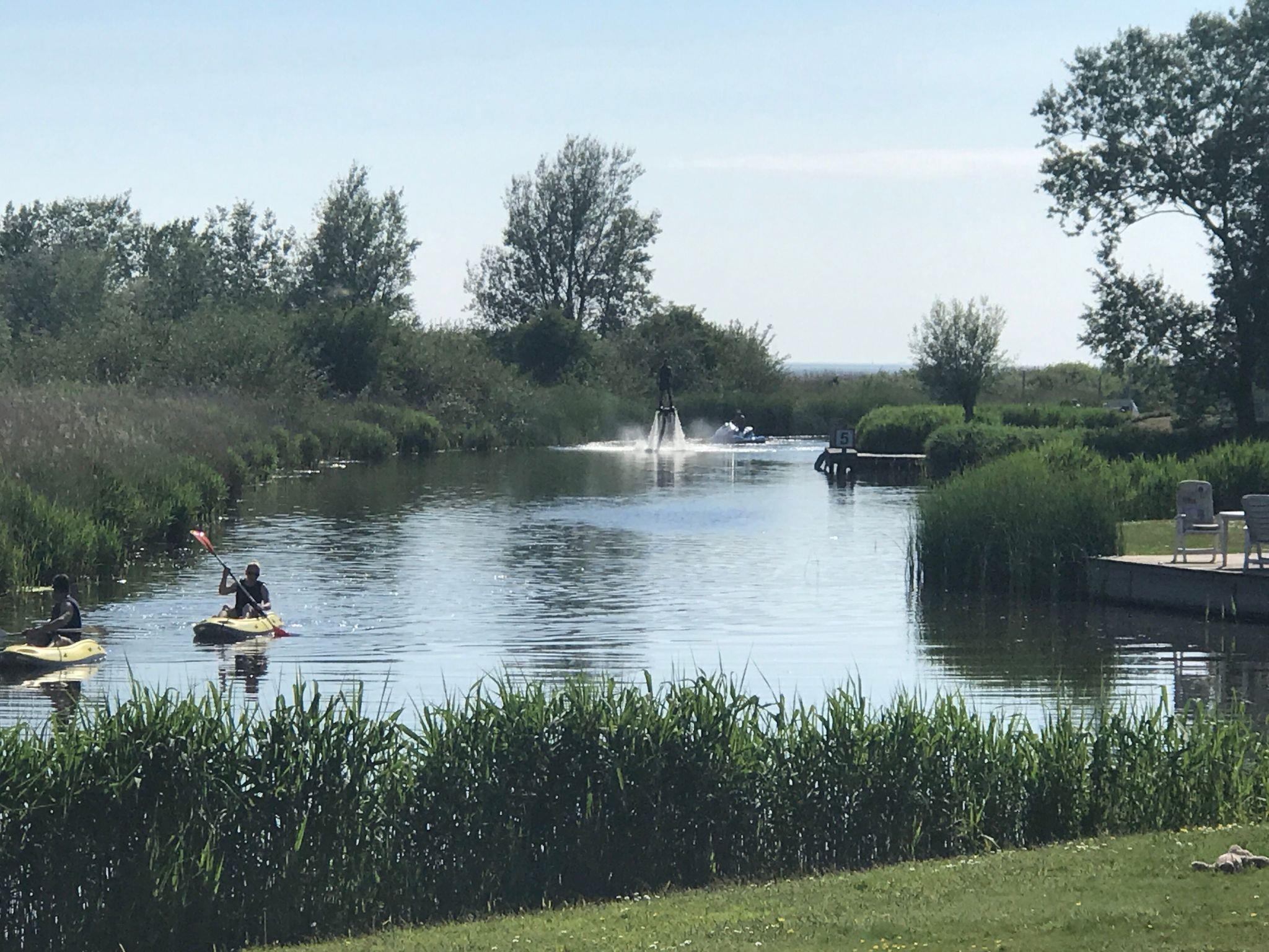 The house lies by the open channel to Ijsselmeer. You can go on boat trips on Ijsselmeer from your own boot jetty or just cruise around the park e.g. with a dinghy. The sandy and surfing beach with a boulevard is just a couple of hundred metres away through the park.