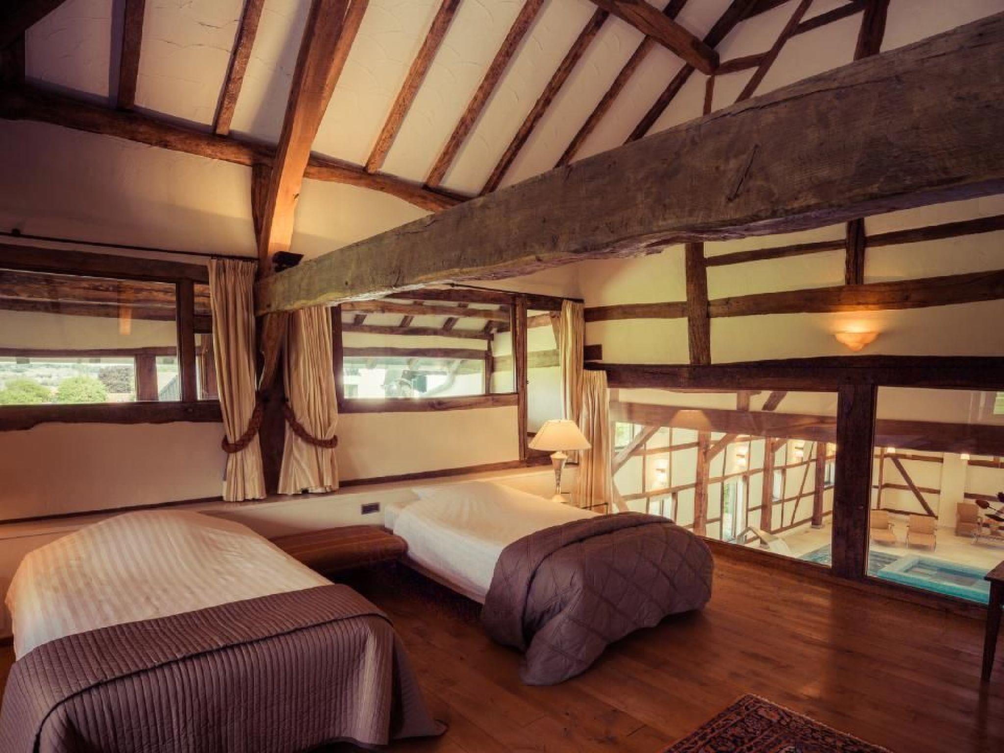 The unique, half-wooden country house with swimming pool has been converted into a spacious villa for groups where everything has been thought of. The villa has 5 bedrooms, all with bathrooms and jacuzzi, suitable for 10-20 people.