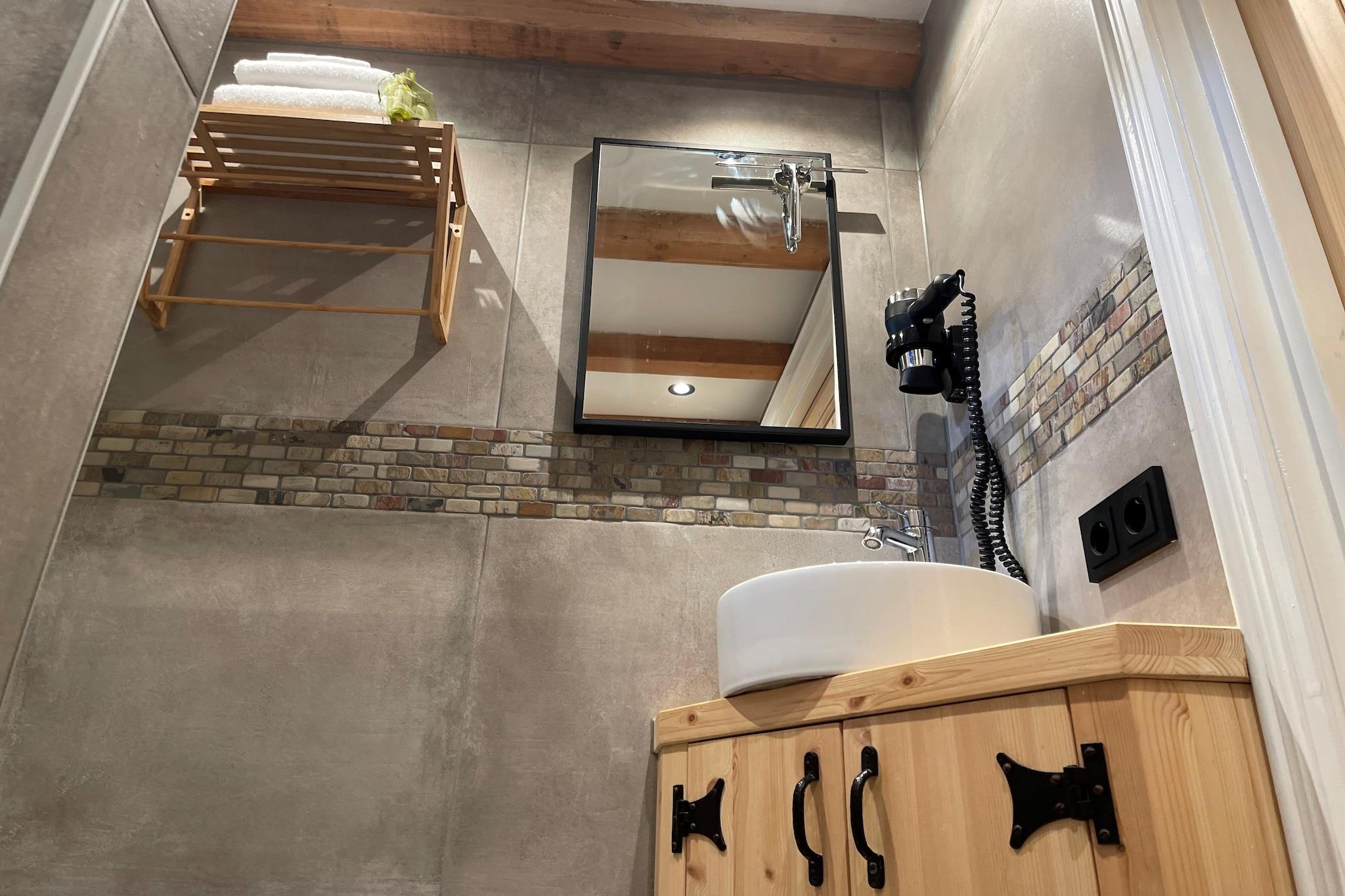 Første etasje: (åpent kjøkken(vedovn, komfyr med kokeplater, brødrister, kjøkkenvifte, espressomaskin, Kombi stekovn/mikrobølgeovn, oppvaskmaskin, kjøleskap med fryser, håndvask), Stue/spisestue(dobbel sovesofa, TV, spisebord, sittehjørne), bad(dusj, håndvask, toalett), loft/dueslag(dobbeltseng, oppvarming, klimaanlegg)) hage, hagemøbler, parkering