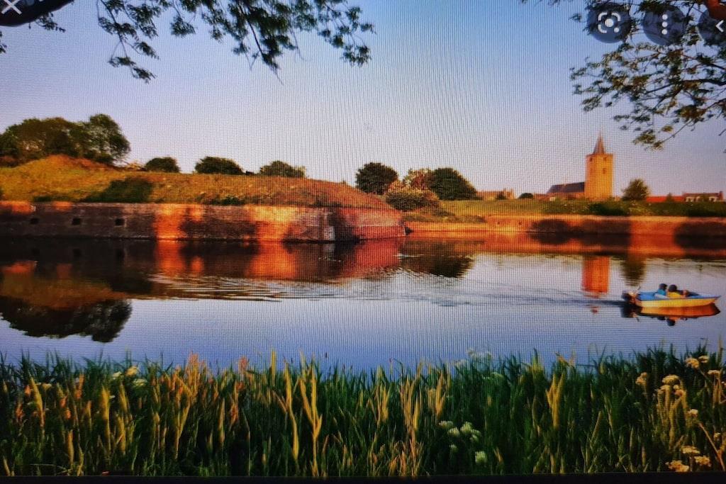 Et vakkert hjørnehus i den pittoreske Naarden festning, velutstyrt med alle fasiliteter og nylig totalrenovert. Ta en titt på bildene. Det er en nydelig hage med fantastisk utsikt over festningsmurene. Kjøkkenet er stort og velutstyrt med et langt bord. I tillegg til soveplass til seks og to toaletter, er det også ekstra plass til en baby takket være en reiseseng og barnestol. Det er så mye å gjøre i de vakre naturomgivelsene, for mye å liste opp. Våre mange gjester setter pris på oss som superverter og er fulle av lovord for huset og området rundt.