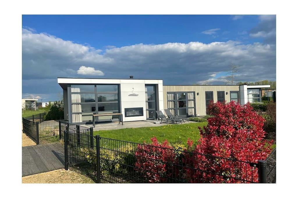 Vår moderne og lyse hytte for 4 personer ligger på en vakker eiendom omgitt av en menneskeskapt vannvei. Eiendommen er fullstendig inngjerdet, noe som gjør den perfekt for en avslappende ferie med små barn eller hunder. Den romslige terrassen er utstyrt med hagemøbler og solsenger. Den fantastiske utsikten over vannet og sivet inviterer deg til å nyte lange sommerkvelder på din egen eiendom. En privat brygge for soling og avslapning kan nås via en port fra hagen. Den romslige stuen og spisestuen med TV og klimaanlegg har et kjøkken av høy kvalitet med oppvaskmaskin. Det er to soverom med dobbeltsenger og garderober. Det større soverommet med TV tilbyr en vakker utsikt over vannet fra sengen. Begge soverommene har myggnett i vinduene. Vaskemaskin og tørketrommel kan brukes mot et gebyr i lobbyen.