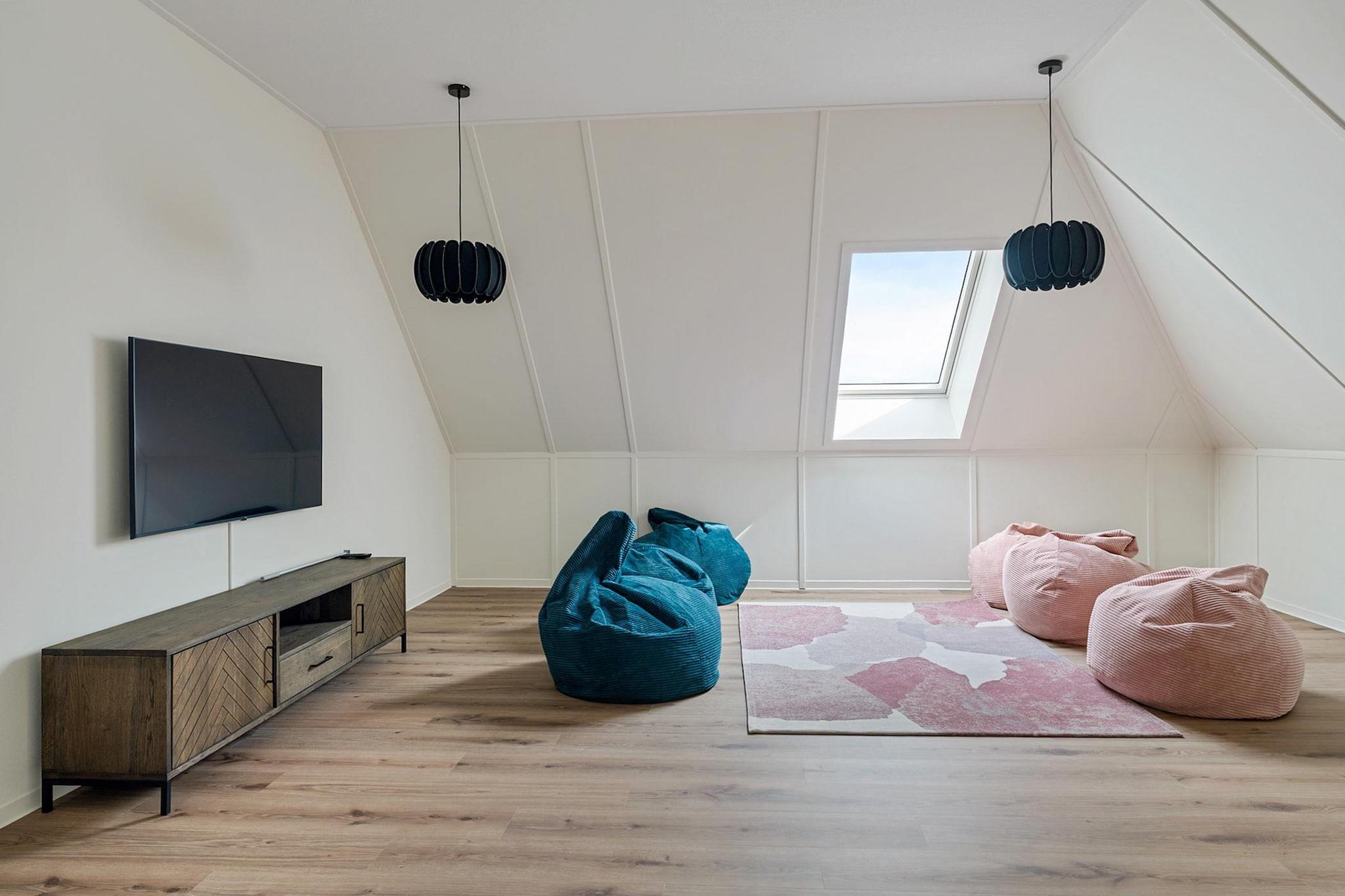 Romslig tilfluktssted ved IJsselmeer Kleine Vliet på Dormio Resort Medemblik er den ideelle gruppeinnkvarteringen for opptil 14 gjester, beliggende rett ved vannkanten i Nord-Holland. Dette moderne, frittliggende feriehuset har syv soverom og fem bad fordelt på to etasjer – perfekt for store familier, sammenkomster eller venner som søker plass og ro. En privat brygge lar deg seile rett fra hagen din til IJsselmeer, noe som skaper en sømløs forbindelse mellom land og vann. Komfort, forbindelse og underholdning Innvendig inviterer den lyse og åpne stuen deg til å slappe av sammen i den koselige stuen med en smart-TV for strømming og en generøs spiseplass for felles måltider. Kjøkkenet er fullt utstyrt for matlaging i fellesskap med en sentral kjøkkenøy, to kombiovner, to oppvaskmaskiner, flere kjøleskap og både kapsel- og filterkaffemaskiner. I øverste etasje gir en uformell stue med saccosekker og en andre smart-TV den perfekte settingen for filmkvelder eller fritid med barna. Uteliv på vannet Gå gjennom stuedørene ut på en romslig terrasse med hagemøbler og utsikt over vannkanten. Spis utendørs, slapp av ved vannet, eller fortøy sluppen din ved den private bryggen bare noen skritt unna. Med to soverom med eget bad i første etasje og fem til oppe – pluss fem velutstyrte bad – nyter alle god plass og privatliv. Praktiske funksjoner som gratis Wi-Fi, gulvvarme, bod og tre private parkeringsplasser gjør dette oppholdet like praktisk som det er komfortabelt.