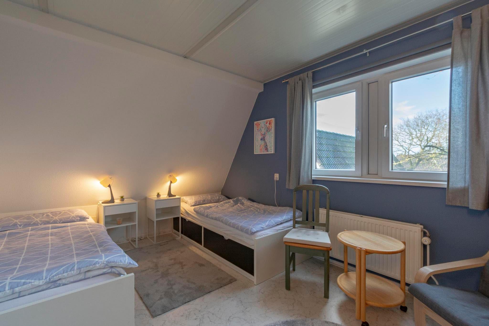Første etasje: (bad(dusj, håndvask, toalett)) i 2. etasje: (åpent kjøkken(komfyr med kokeplater(komfyr med 4 kokeplater, gass), vannkoker, brødrister, kjøkkenvifte, kaffetrakter(kaffetrakter, kaffepute), stekovn, mikrobølgeovn, oppvaskmaskin, kjøleskap med fryser, , ), Stue/spisestue(TV(flatskjerm, Nederlandske TV-kanaler , Tyske TV-kanaler), spisebord, sittehjørne, radio), soveværelse(dobbeltseng(180 x 200 cm)), soveværelse(enkeltseng(80 x 200 cm), enkeltseng(80 x 200 cm)), bad(dusj, håndvask, toalett, bidet), WC(toalett)) Internett-tilgang, tørketrommel, vaskemaskin, gårdhave, oppvarming(sentral, gulvvarme), terrasse, hage, sykkelparkering, hagemøbler, parkering, fluktstoler, Parasoll, svømmebasseng(innendørs), tennisbane, tørkeskap