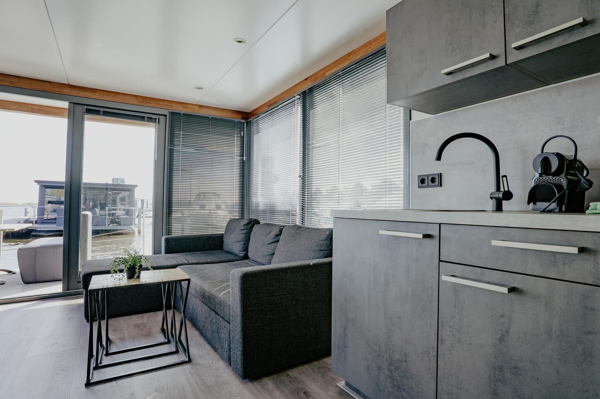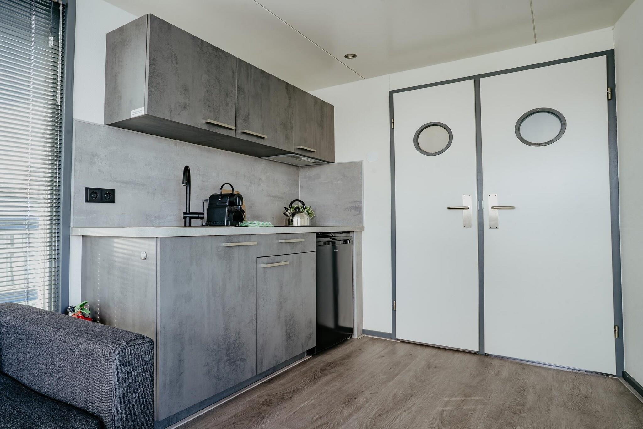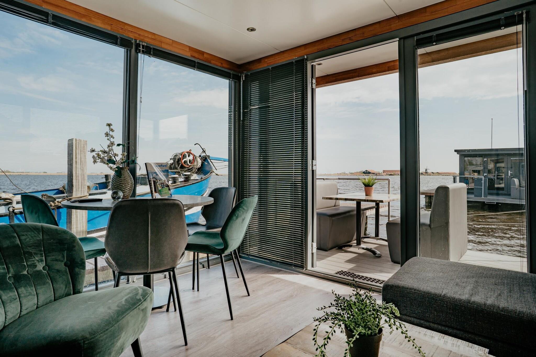 Fredelig husbåt med fantastisk utsikt over innsjøen Velkommen til din ferie ved innsjøen! Denne moderne og stilige havnehytta ligger fortøyd på et av marinaens roligste steder, og tilbyr uforstyrret utsikt over det glitrende Uitgeestermeer. Den er gjennomtenkt designet med tanke på komfort, og har en koselig stue, gulvvarme, et fullt utstyrt kjøkken med kaffemaskin og kjøleskap, og to fredelige soverom – ett med dobbeltseng og det andre med en sjarmerende køyeseng. Enten du nipper til kaffe ved soloppgang eller nyter en middag utendørs, gjør den private terrassen med hagemøbler hvert øyeblikk ekstra spesielt. Perfekte omgivelser for avslapning ved vannkanten Oppholdet ditt ligger i den fredelige enden av marinaen, og tilbyr det beste fra begge verdener – beroligende utsikt over vannet og minimal båttrafikk. Det begrensede Wi-Fi-et oppmuntrer til ekte avslapning, og inviterer deg til å koble fra, slappe av og gjenopprette kontakten med naturen. Enten du soler deg på terrassen, nyter en rolig frokost eller krøller deg sammen med en bok inni, tilbyr dette flytende hjemmet den ideelle atmosfæren for ro og stillhet. Utforsk Uitgeest som en lokal Det ligger bare en kort spasertur fra sjarmerende restauranter og kafeer ved innsjøen, og du har mange spisemuligheter med utsikt. For litt eventyr kan du utforske sykkelruter i nærheten eller lei en båt og oppdag innsjøens skjønnhet. Merk: Selv om vi elsker kjæledyr, er denne innkvarteringen kjæledyrfri for å sikre et rolig og allergivennlig miljø for alle gjester. Merk: Huseieren er stolt av å kunne kunngjøre at denne eiendommen har hatt Green Key-sertifikatet siden juni 2025.