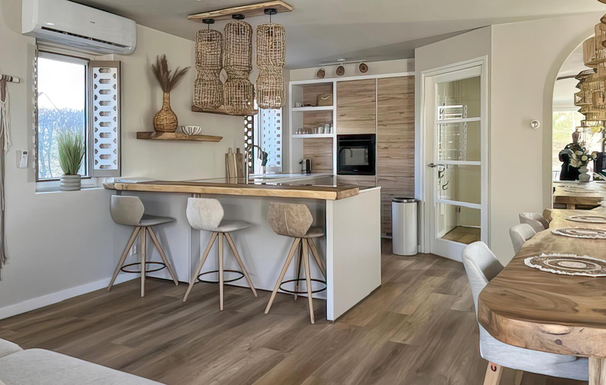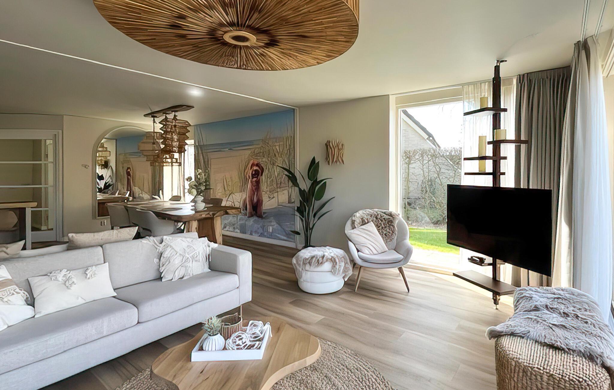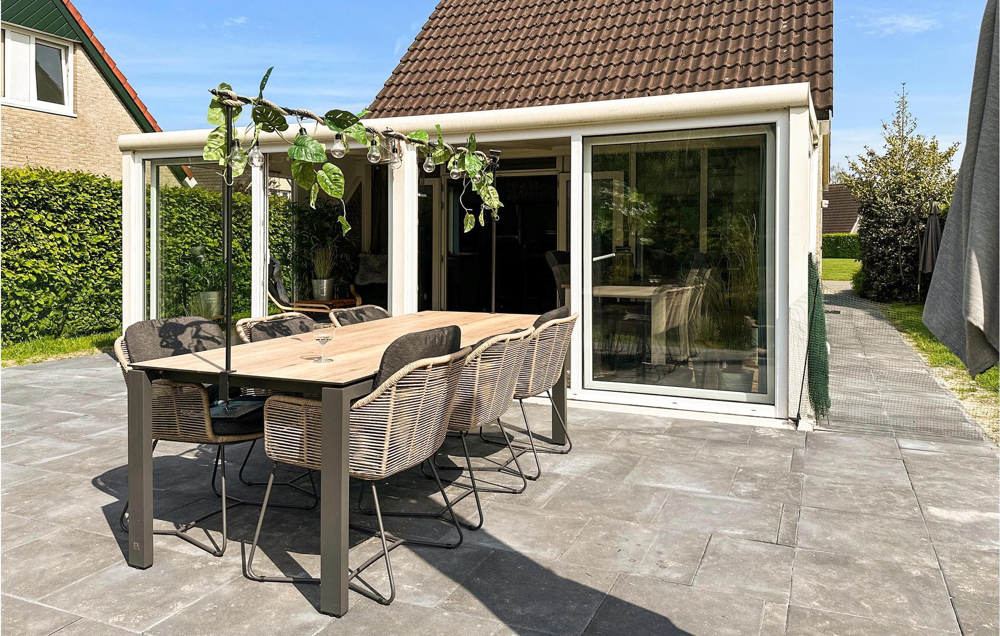 Det vakre feriehuset i Bungalowpark Emlandermeer gir deg og familien rikelig med plass til å slappe av. Hele boligen er smakfullt innredet i stilfull Ibiza-design, og i vinterhagen har du et herlig sted å samles med hele familien for å spise, leke og slappe av. Sett deg godt til rette i den store stuen og tilbring avslappende kvelder her med en spennende film eller en god bok. På det fullt utstyrte kjøkkenet kan dere lage mat sammen på den sentralt plasserte kokeplaten.