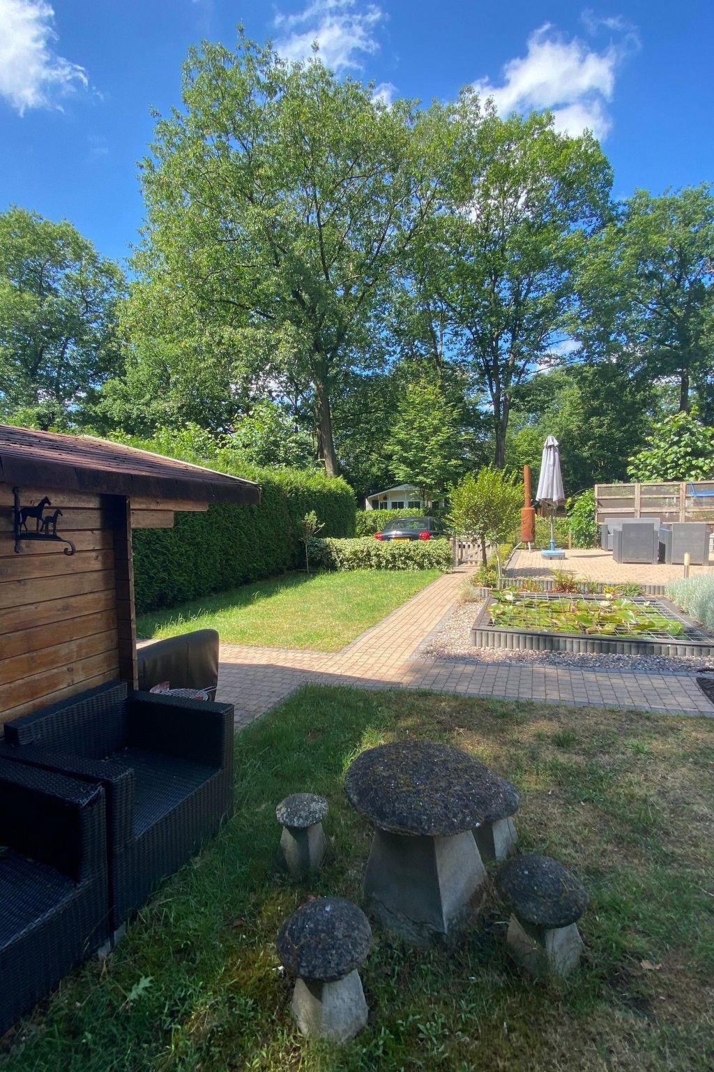 The terrace has garden furniture, a parasol and two deckchairs. The garden is fenced and therefore also perfectly suitable for children and dogs.