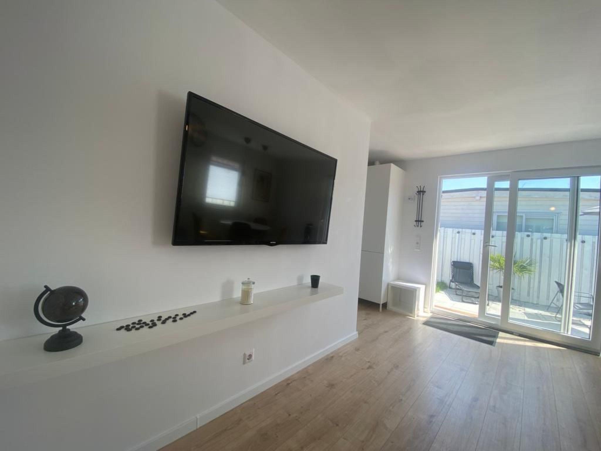 Beautiful holiday home on a small holiday island surrounded by water (lake for swimming, boating, relaxing on the sunbathing lawn) where all those seeking relaxation will feel at home. The holiday home is located on an island of approx. 2 hectares in a large lake, accessible via a bridge. The house offers everything you need for a great holiday! The light-flooded dining/kitchen area offers space for the whole family and is air-conditioned. The flat screen TV in the living room receives many German programmes. The kitchen is fully equipped: gas hob, dishwasher, oven, fridge with freezer compartment, kettle, filter coffee machine, toaster, crockery and cooking utensils. The bathroom has a welness shower, toilet and washbasin. Bedroom 1 is furnished with a double bed 140x200, a wardrobe and 2 bedside tables. Bedroom 2 has a double bed 140x200, a wardrobe with additional storage space. The sliding door leads to the sunny terrace, which invites you to relax with comfortable garden furniture. The entire house has central heating.