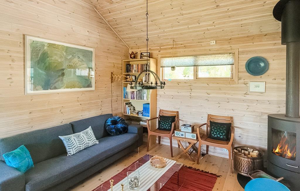 Dette innbydende feriehuset har en drømmeaktig beliggenhet og er det rette stedet for en avslappende ferie hvor du kan nyte aktiviteter i naturen. De lyse rommene med trepaneler innbyr til avslapping. Her kan du nyte panoramautsikten over fjorden mens dere spiser sammen, og om kvelden kan du sette deg ved peisen og lytte til flammenes knitring.