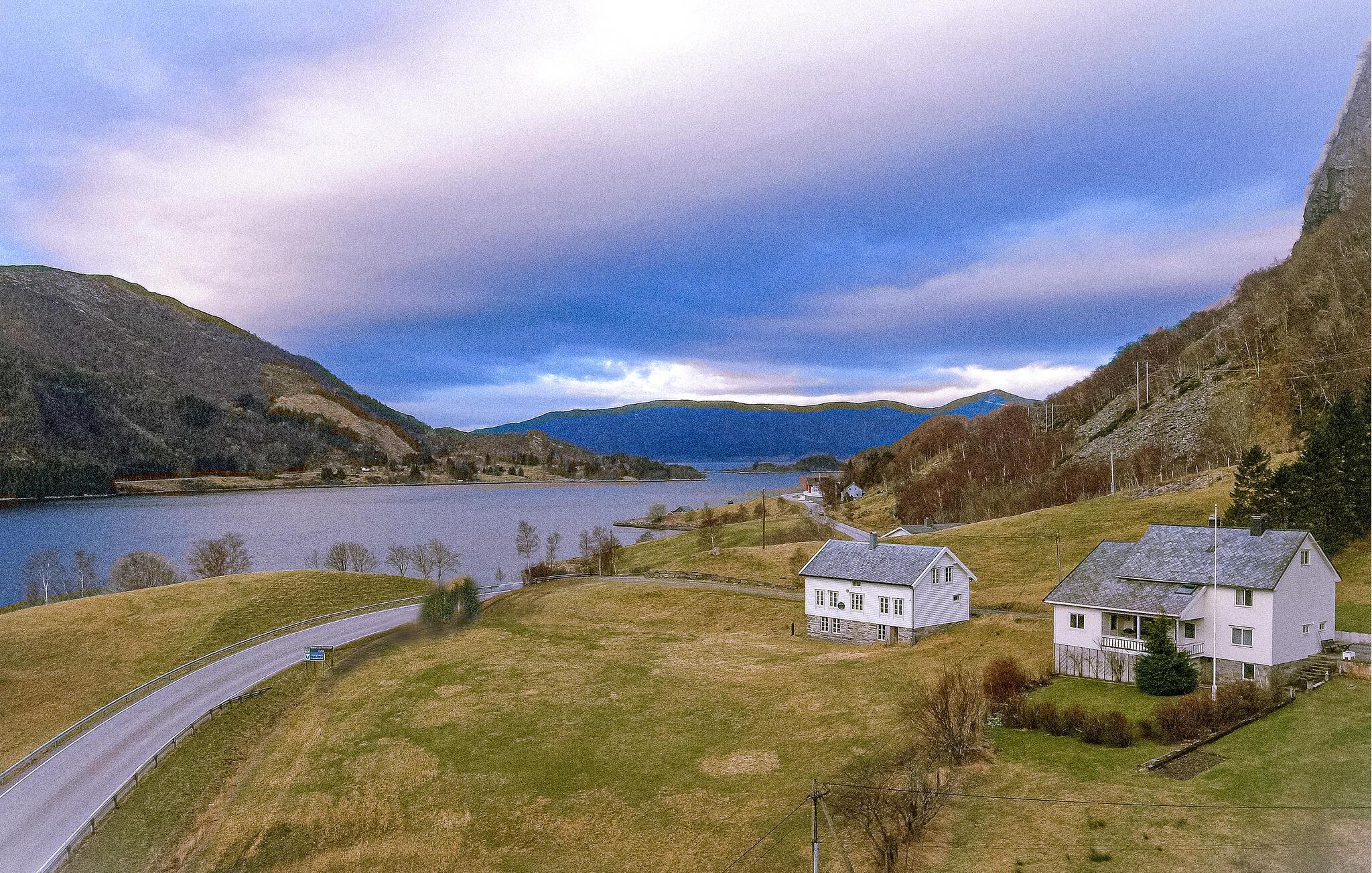 Nyt fredelige og idylliske dager i dette romslige huset ved fjorden.