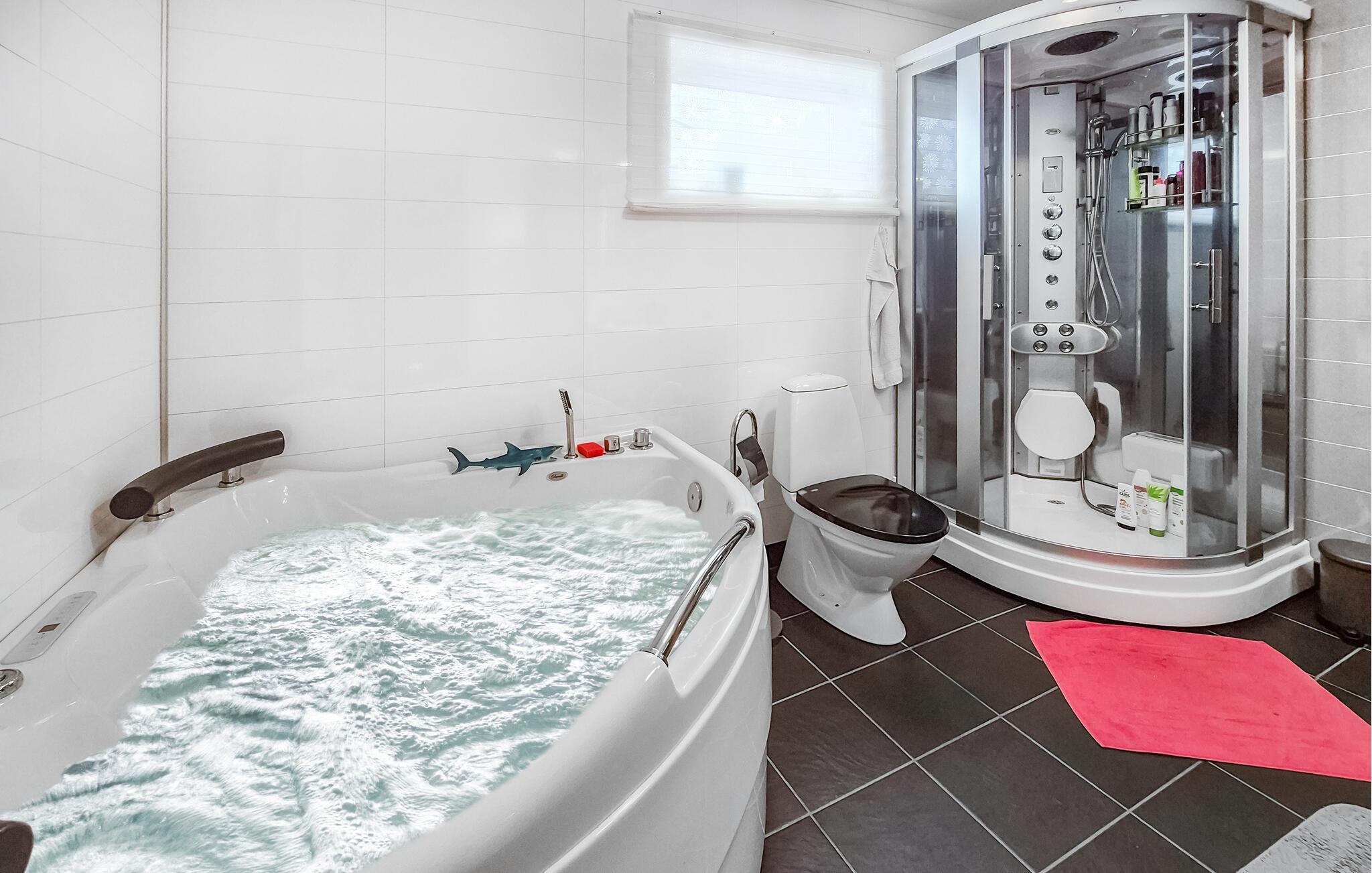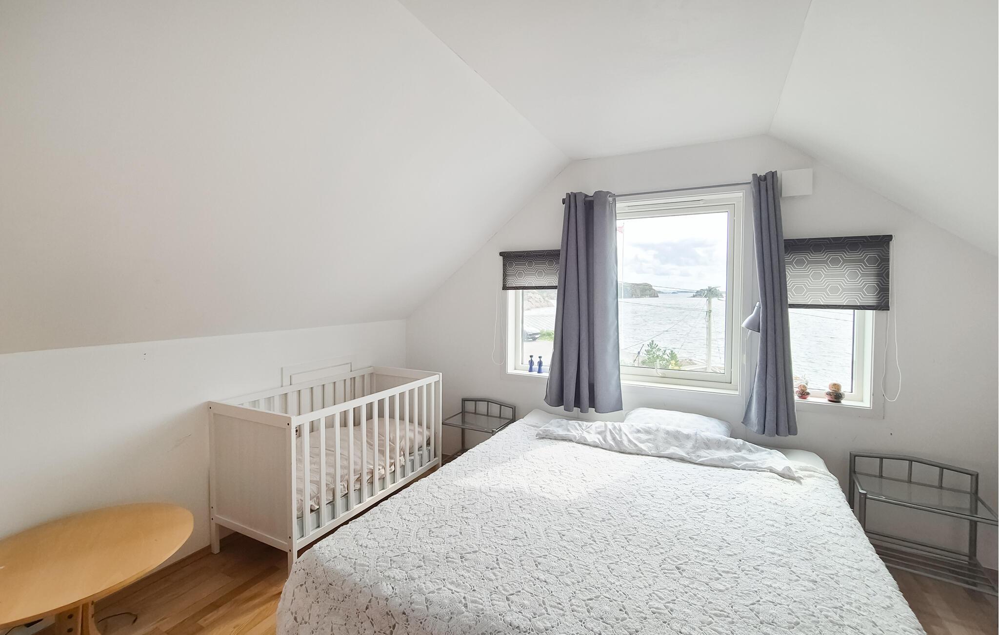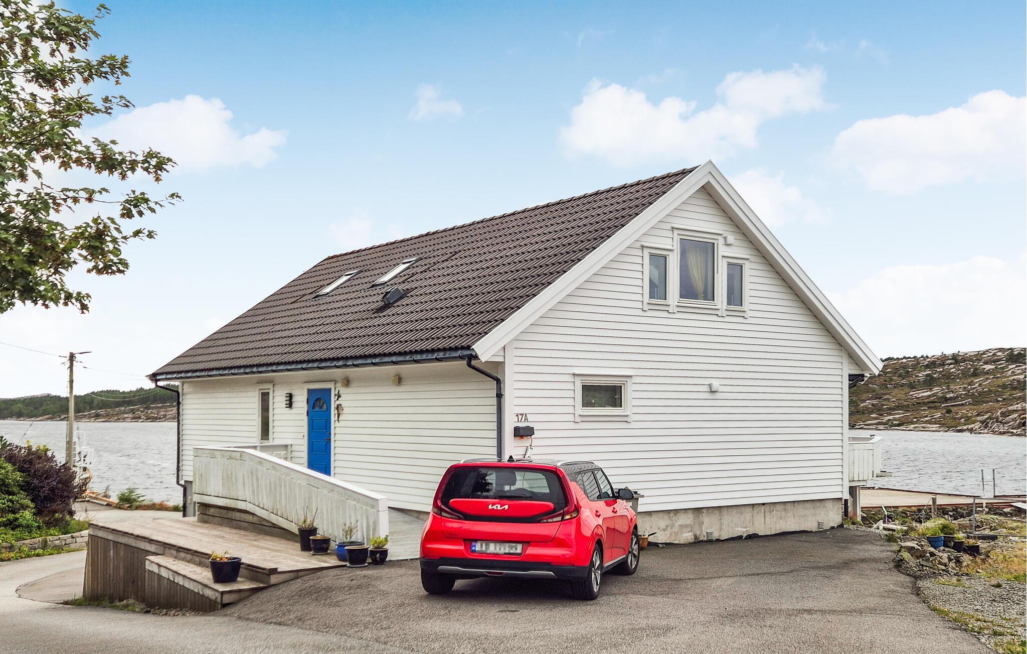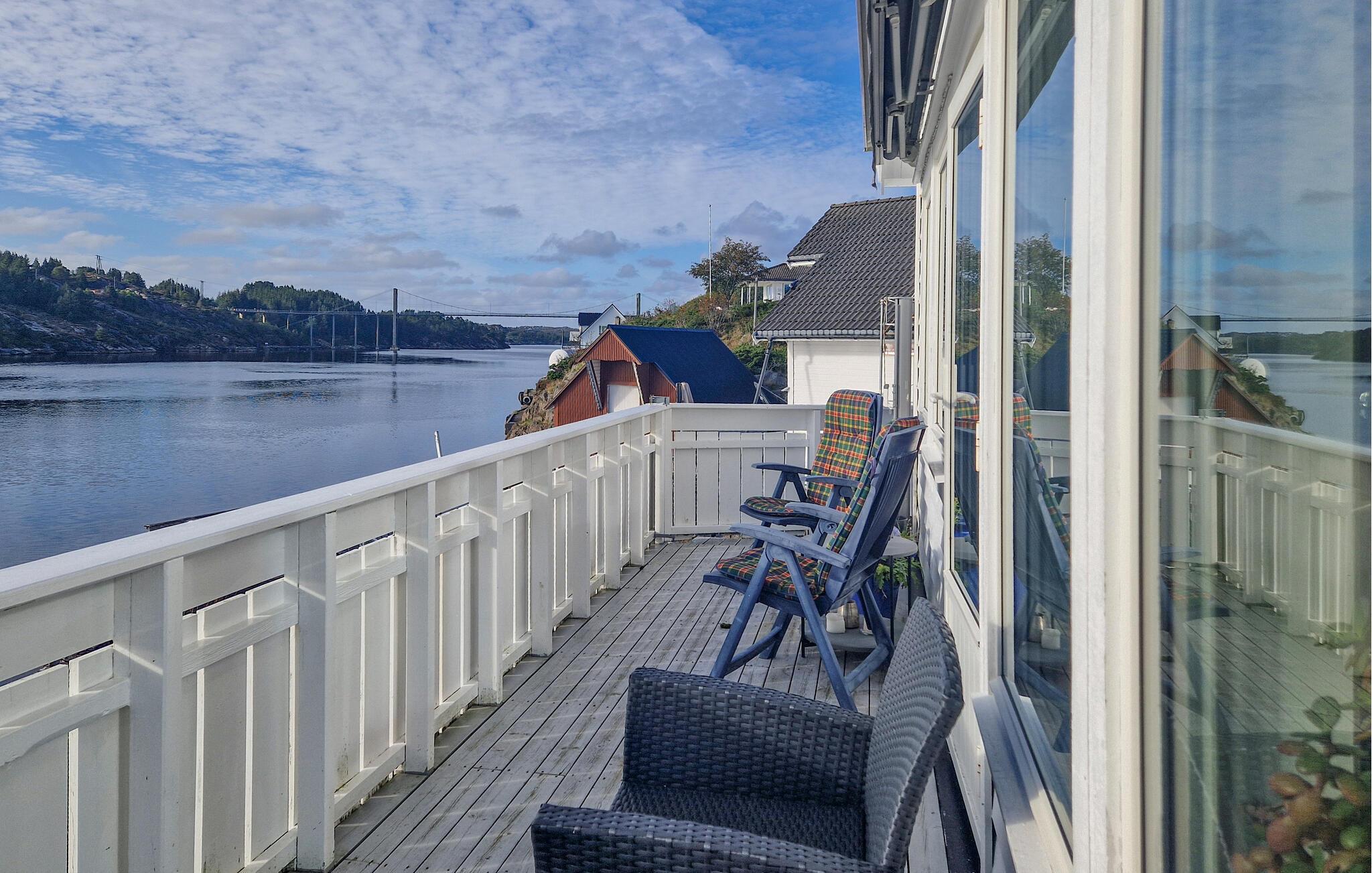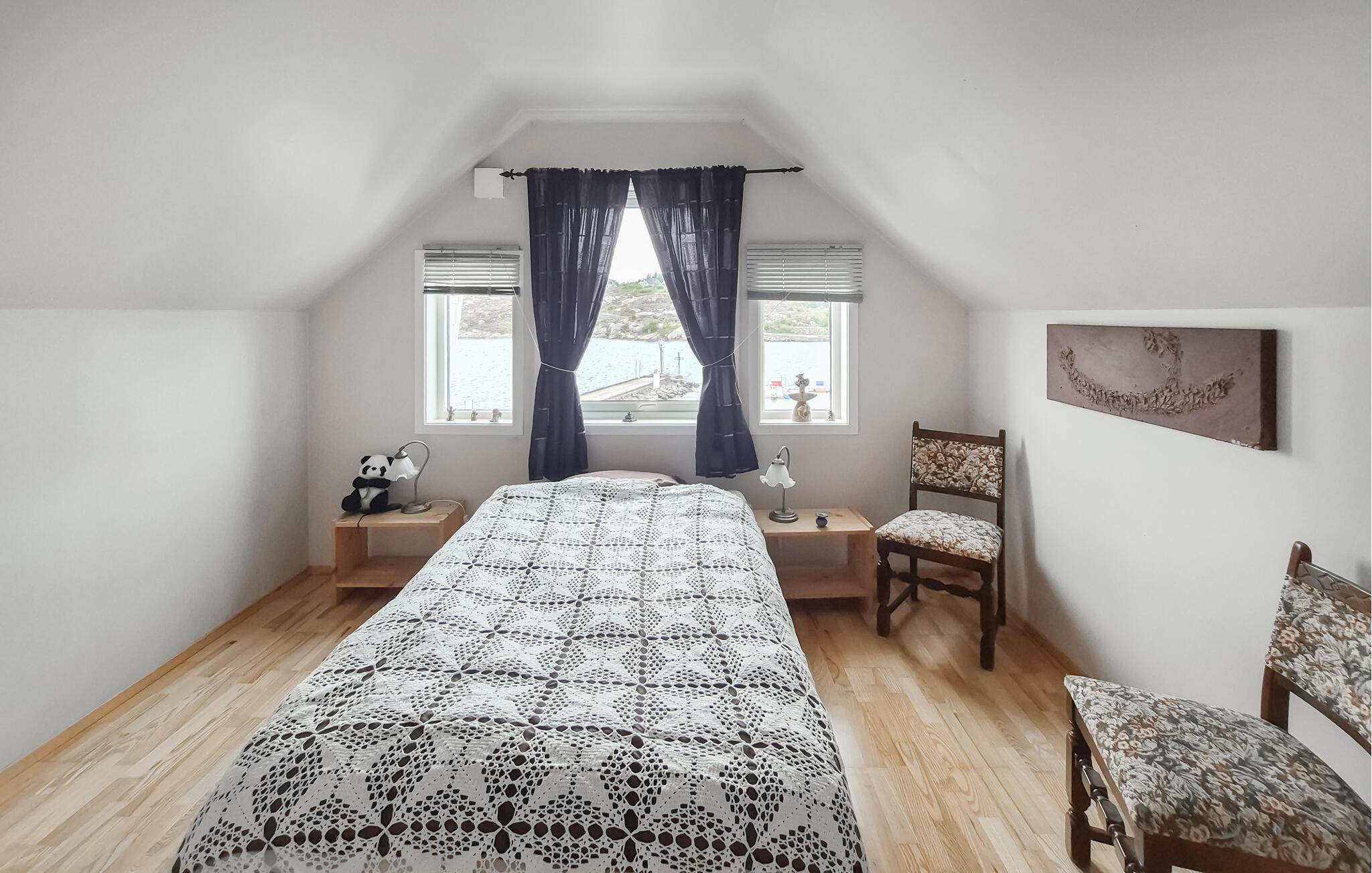 Ankom med familien og finn fred og ro. De moderne møblene skaper en koselig og innbydende atmosfære der du umiddelbart vil føle deg som hjemme. Den lyse, åpne planløsningen i rommene gir rikelig med lys og en vennlig, luftig atmosfære som er ideell for utetiden. De mange vinduene gir deg en fantastisk utsikt over vannet, og terrassen med hagemøbler er perfekt for avslapping i solen. Den private bryggen og den solide leiebåten gjør det enkelt å utforske de omkringliggende fiskeplassene.