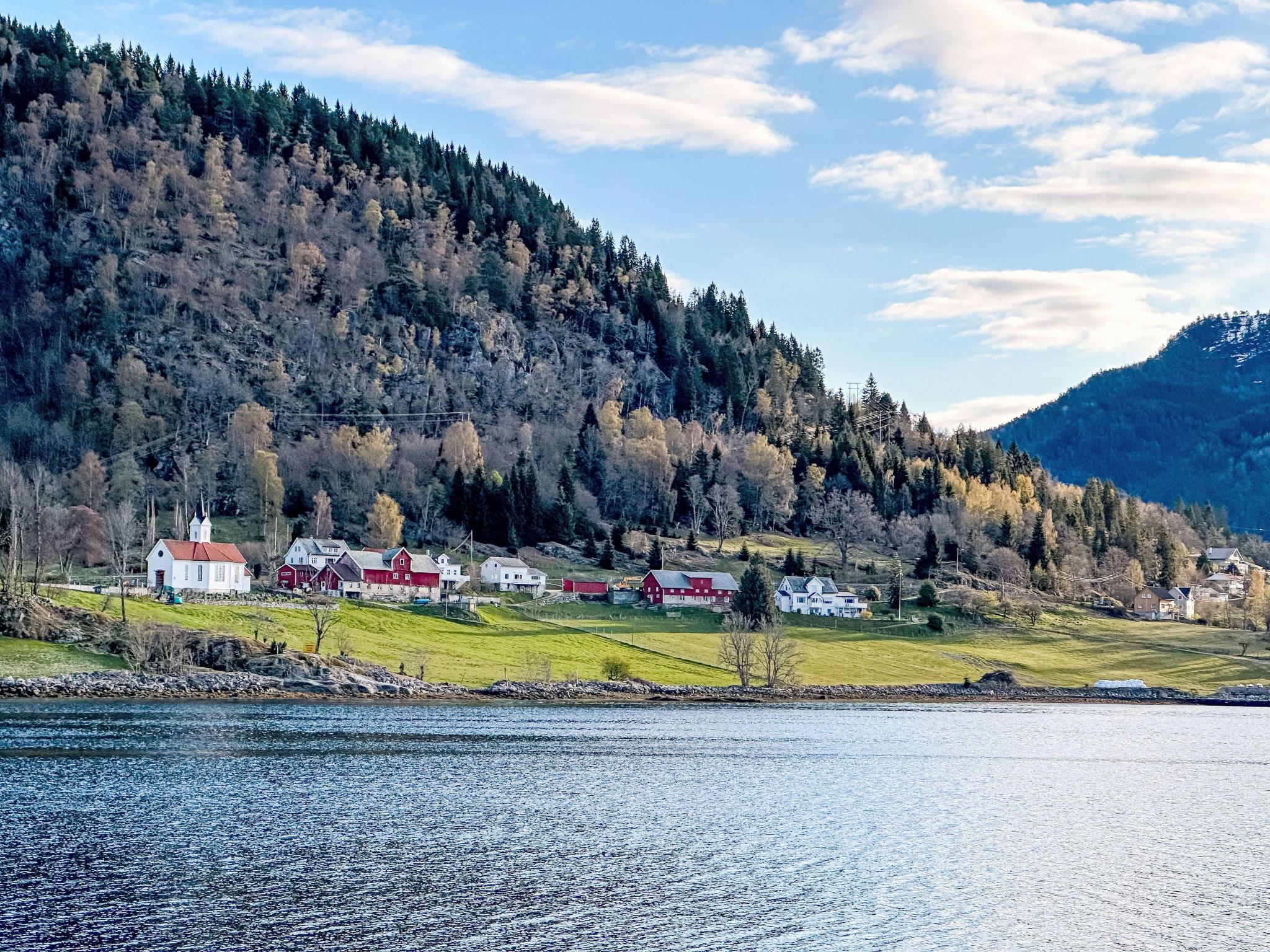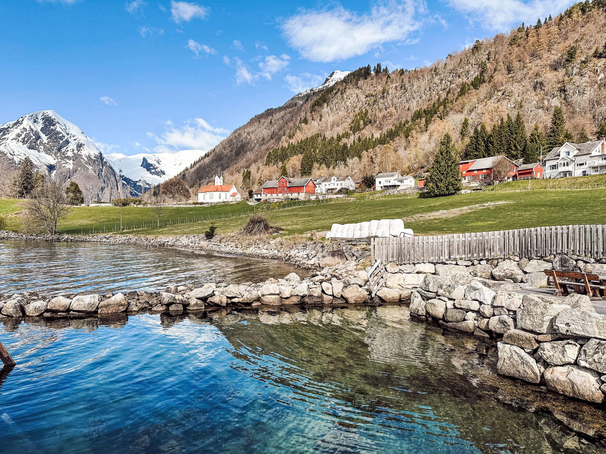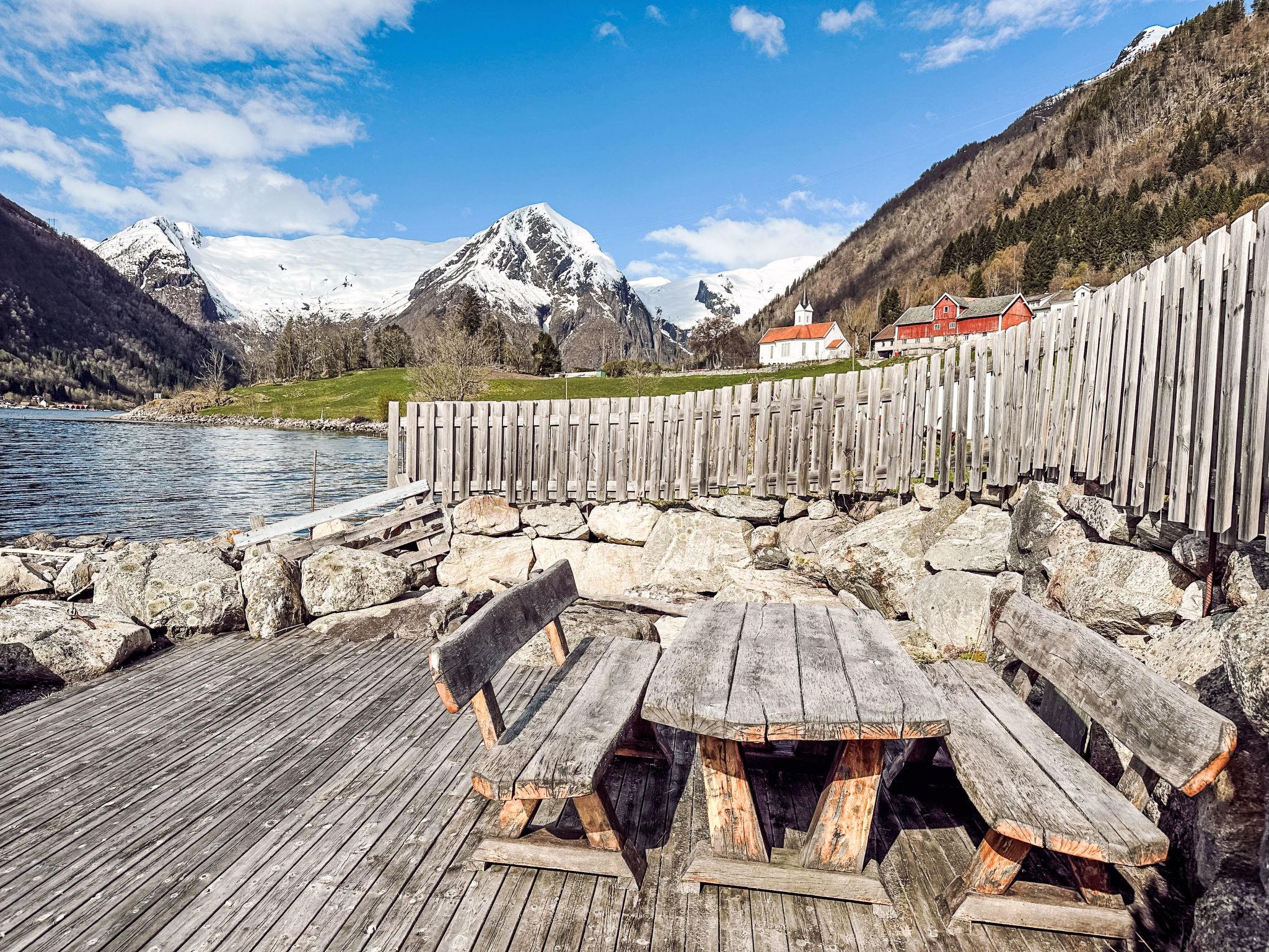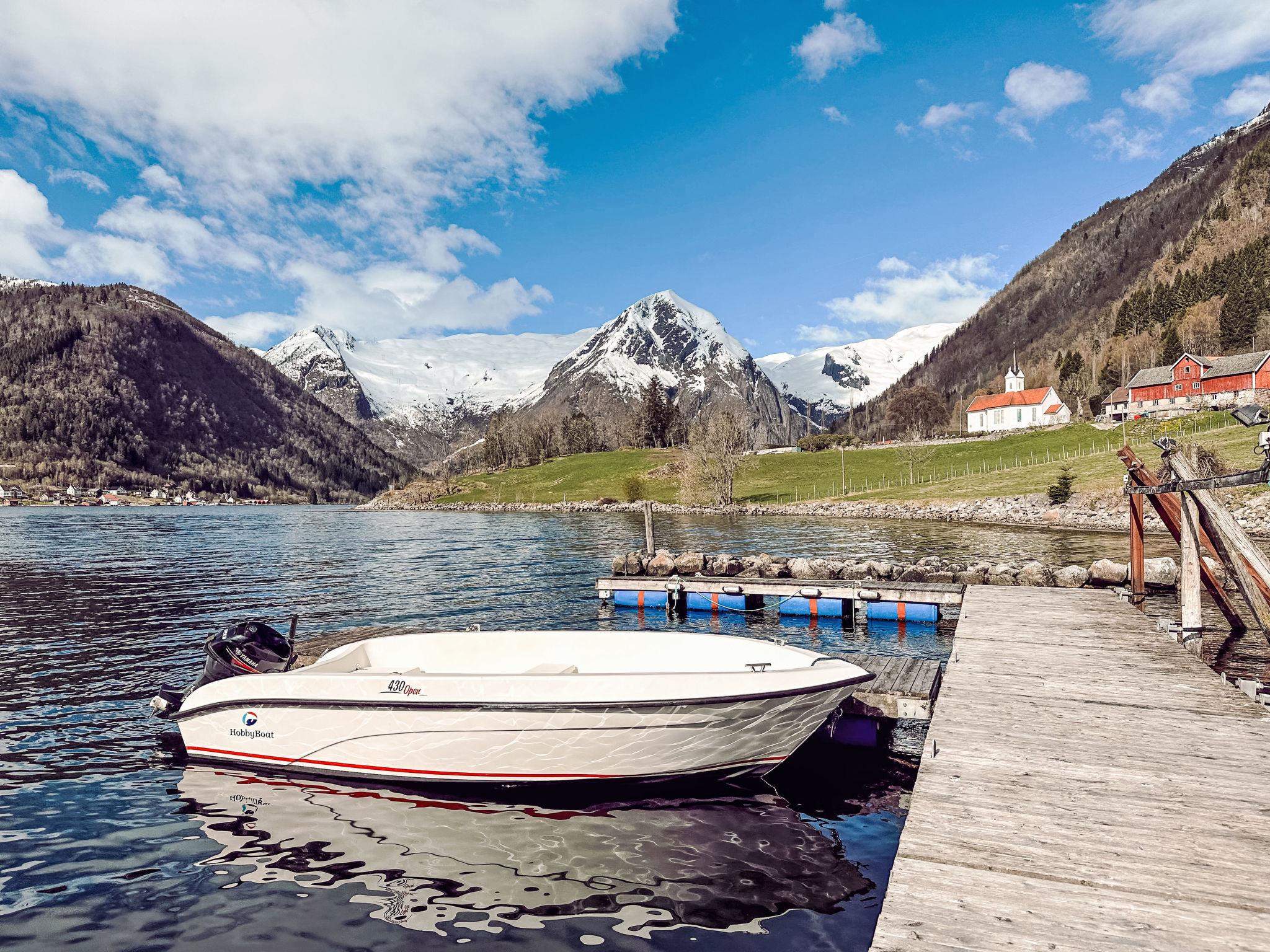 Certified fishing house "Tantestova", surrounded by meadows. In the hamlet Tjugum 8 km from the centre of Balestrand, 38 km from the centre of Sogndal, 53 km from the centre of Høyanger, in an elevated position on a slope, 120 m from the fijord. Bathing place, fish-processing table. Private: natural state property with meadow. Motor boat (on order), parking at the house. Supermarket 8 km, bus stop 200 m, railway station "Flåm" 110 km, ferry "Bergen" 187 km. Walking paths from the house 120 m, fishing possibilities 150 m. Please note: private mooring. Table for processing fish inside a house by the sea. Freezer box 300 L.