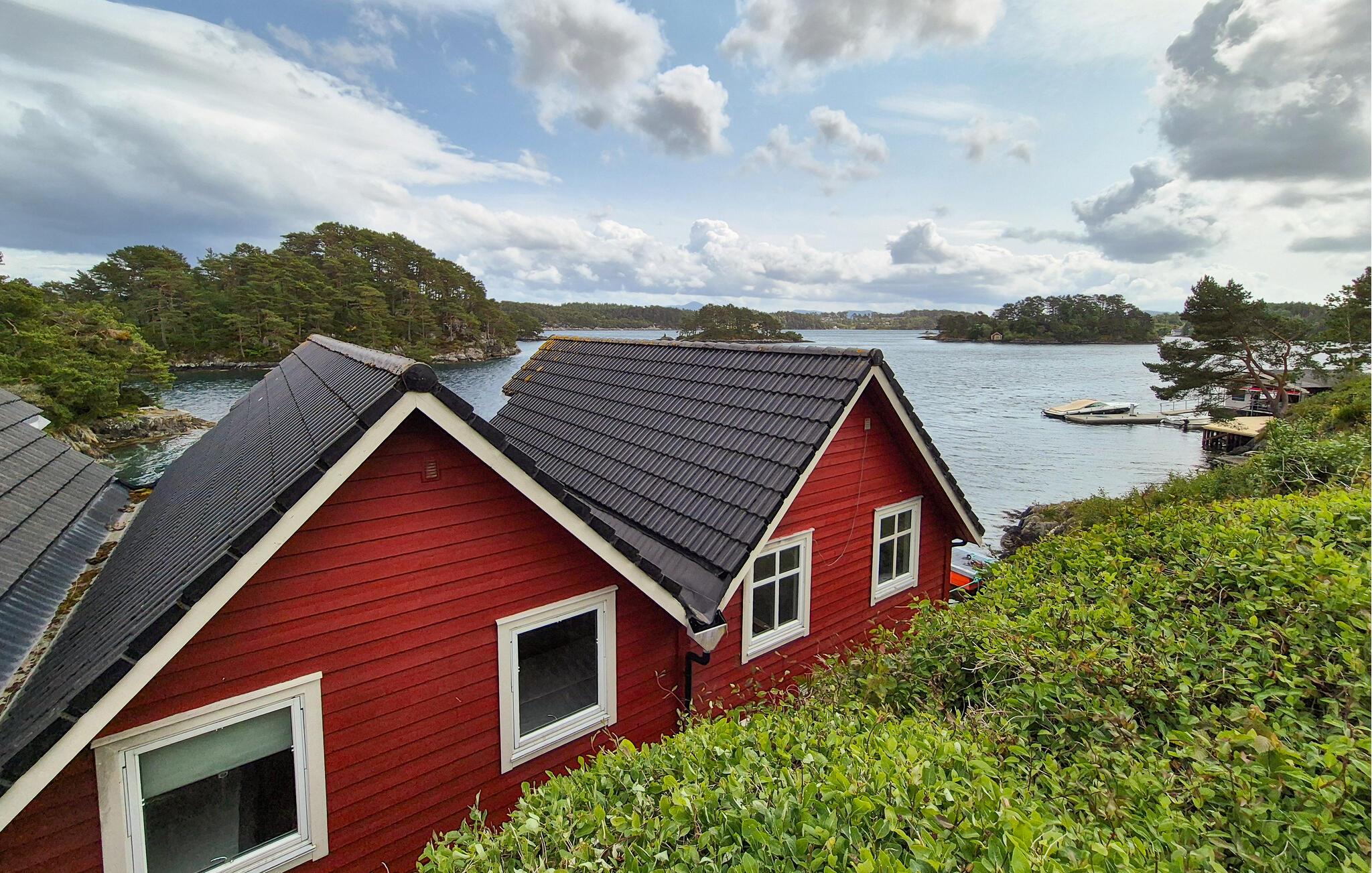 Denne vakre hytta ved sjøen ønsker deg velkommen til en idyllisk beliggenhet på Brimsholmen i den vakre skjærgården vest for Bjørnafjorden. Gled deg til hyggelig matlaging og harmoniske måltider mens du nyter den fantastiske utsikten over fjorden med små øyer og skjær. Slapp av med en film etter en lang dag i frisk luft, tilbring tid med dine nærmeste på en spillkveld eller fordyp deg i en god bok i den koselige sofaen.