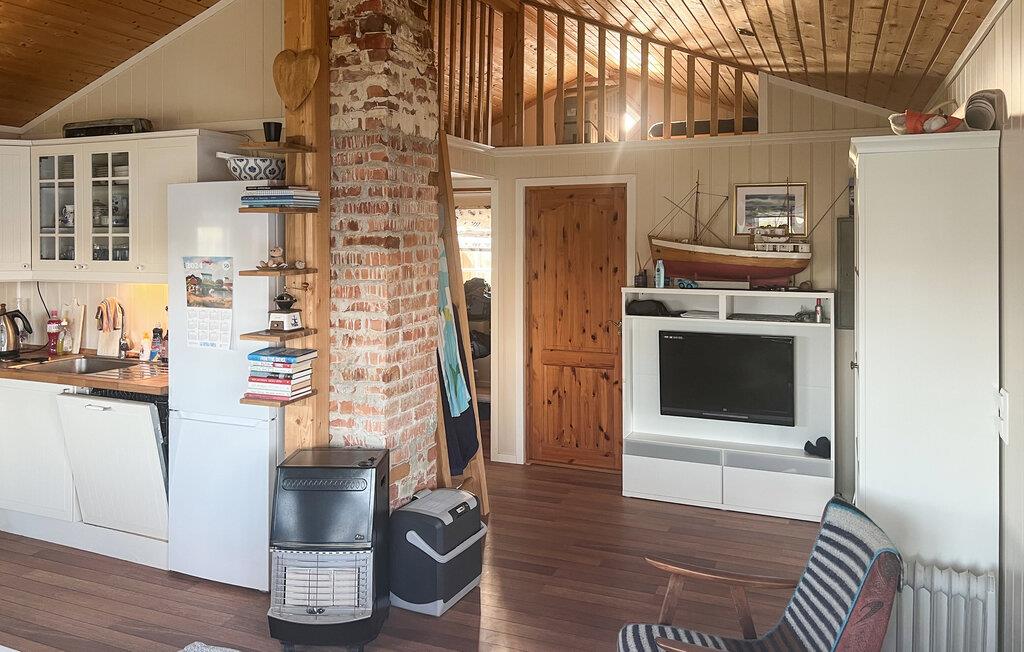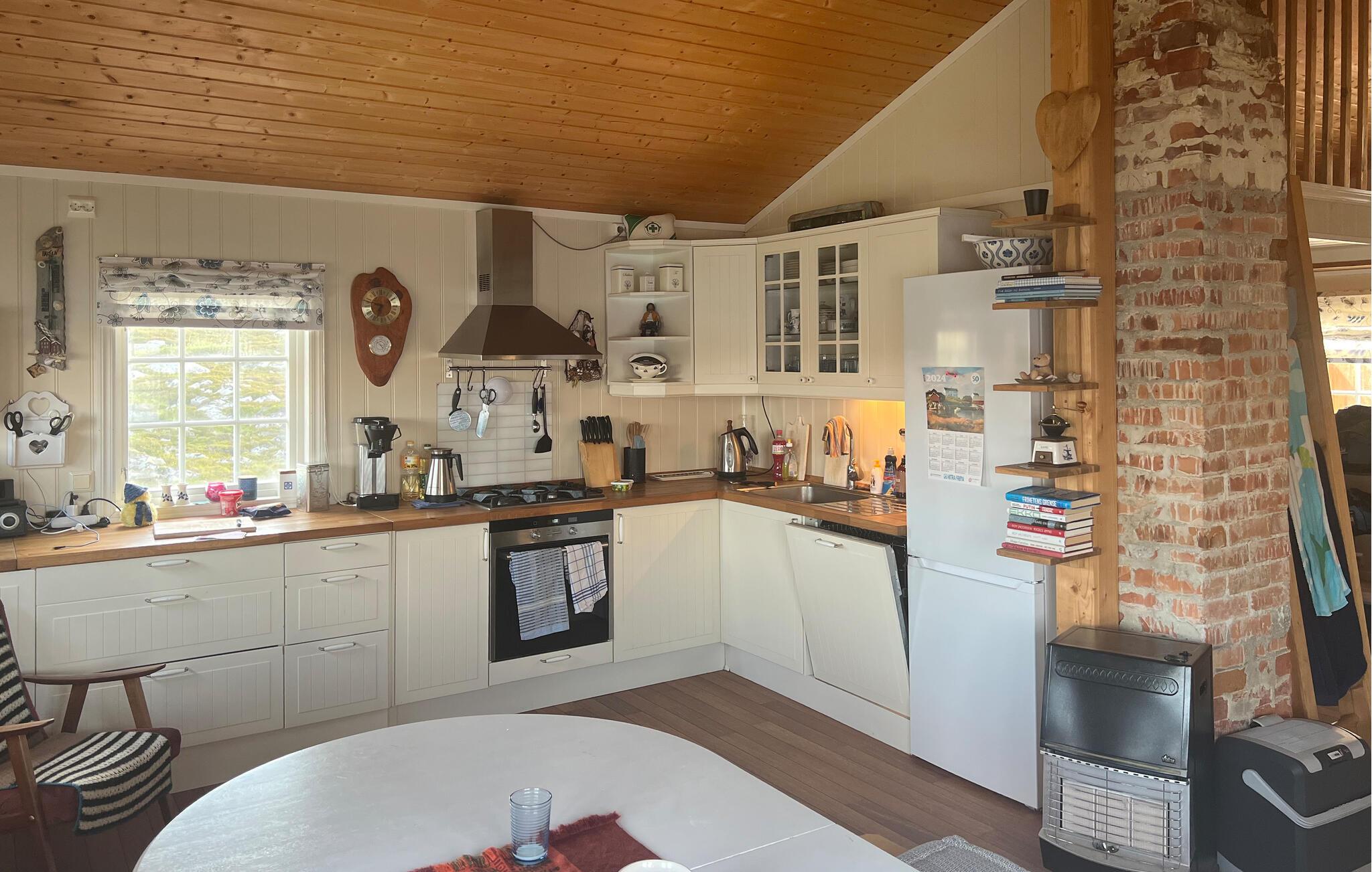 Dette huset ligger på en egen øy, og tilbyr deg en ferie i fred, tilbaketrukkethet og nærhet til naturen. Et koselig utseende i tre og murstein, en stor sofagruppe og et praktisk kjøkken skaper en behagelig atmosfære der du raskt kan koble av. Enten dere vil høre på musikk, prate eller lage mat sammen, er det her dere bestemmer tempoet på dagen.