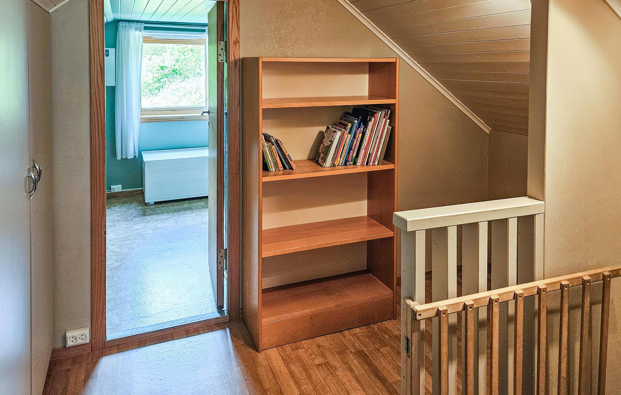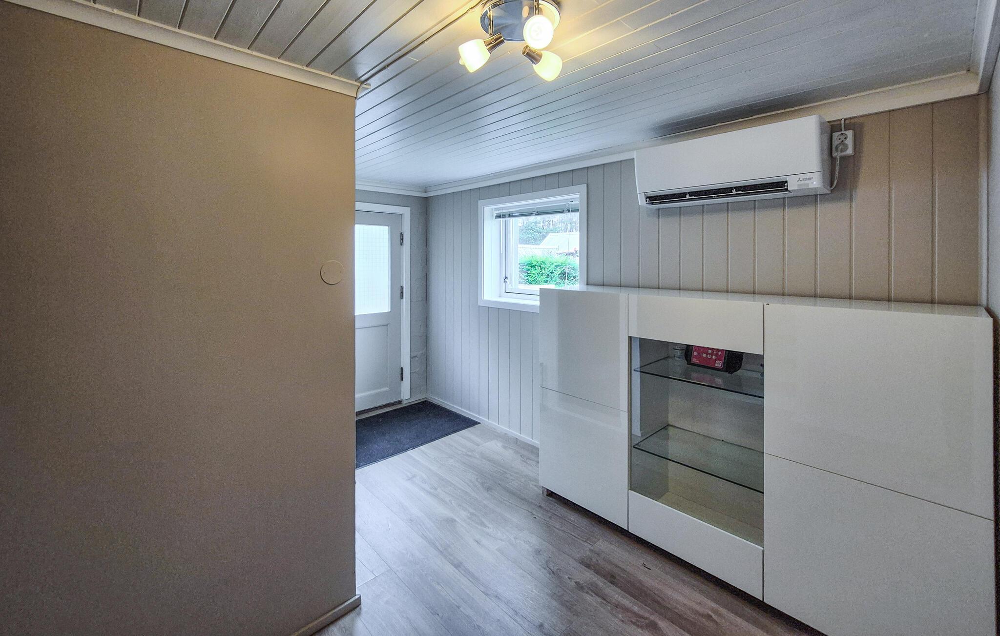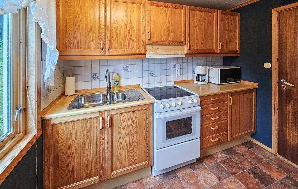 Tilbring ferien i et koselig feriehus som med sin beliggenhet på en øy byr på både fred og ro og et bredt utvalg av fritidsaktiviteter. Føl deg som hjemme i den romslige stuen med en komfortabel sofagruppe og TV. Bruk den tilstøtende spisestuen med stort bord og vedovn til hyggelige måltider eller avslappende kvelder ved den knitrende peisen. Tilbered måltidene dine på det praktisk utstyrte kjøkkenet.