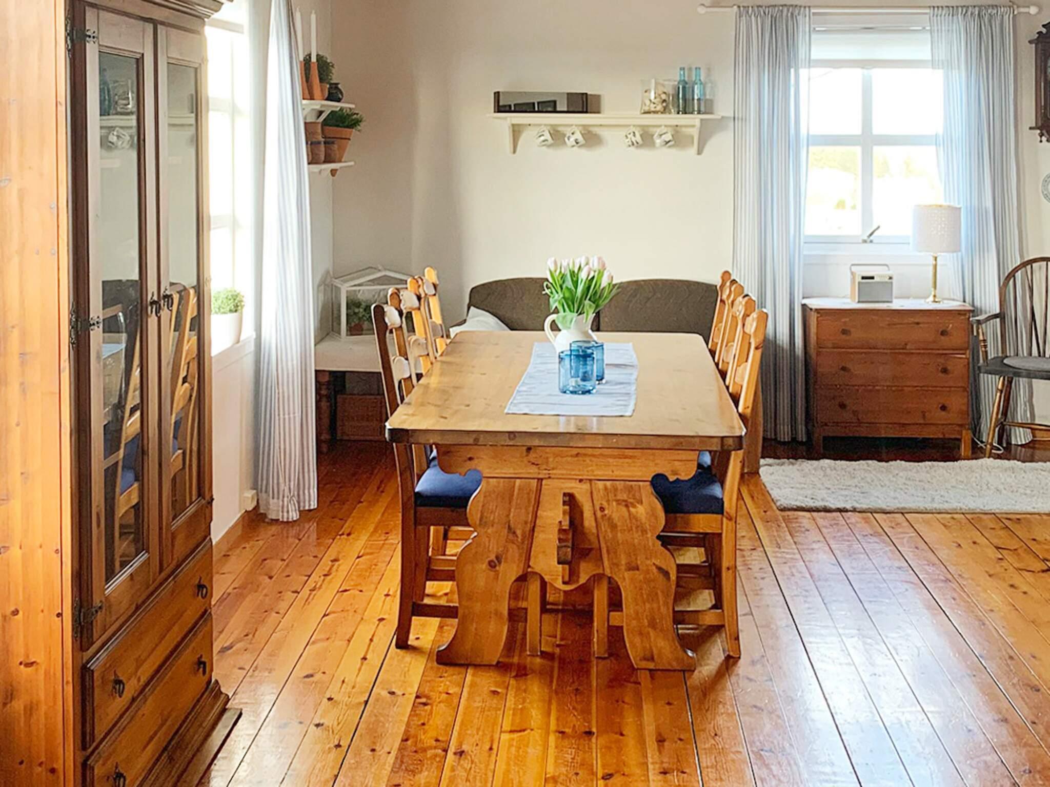 Koselig feriehus med peis i stuen. Utenfor er det en stor terrasse laget av steinheller. Internetthastighet: 200 Mbits. TV via internett/fiber: norsk, tyske og internasjonale TV kanaler, AppleTV. Køyesengene har 120cm bredde nede og 80 cm oppe. Rommet merkete BY er ikke vaskerom, men fileteringsrom for fisk med fryser og oppbevaringsplass for fiskeutstyr m.m.