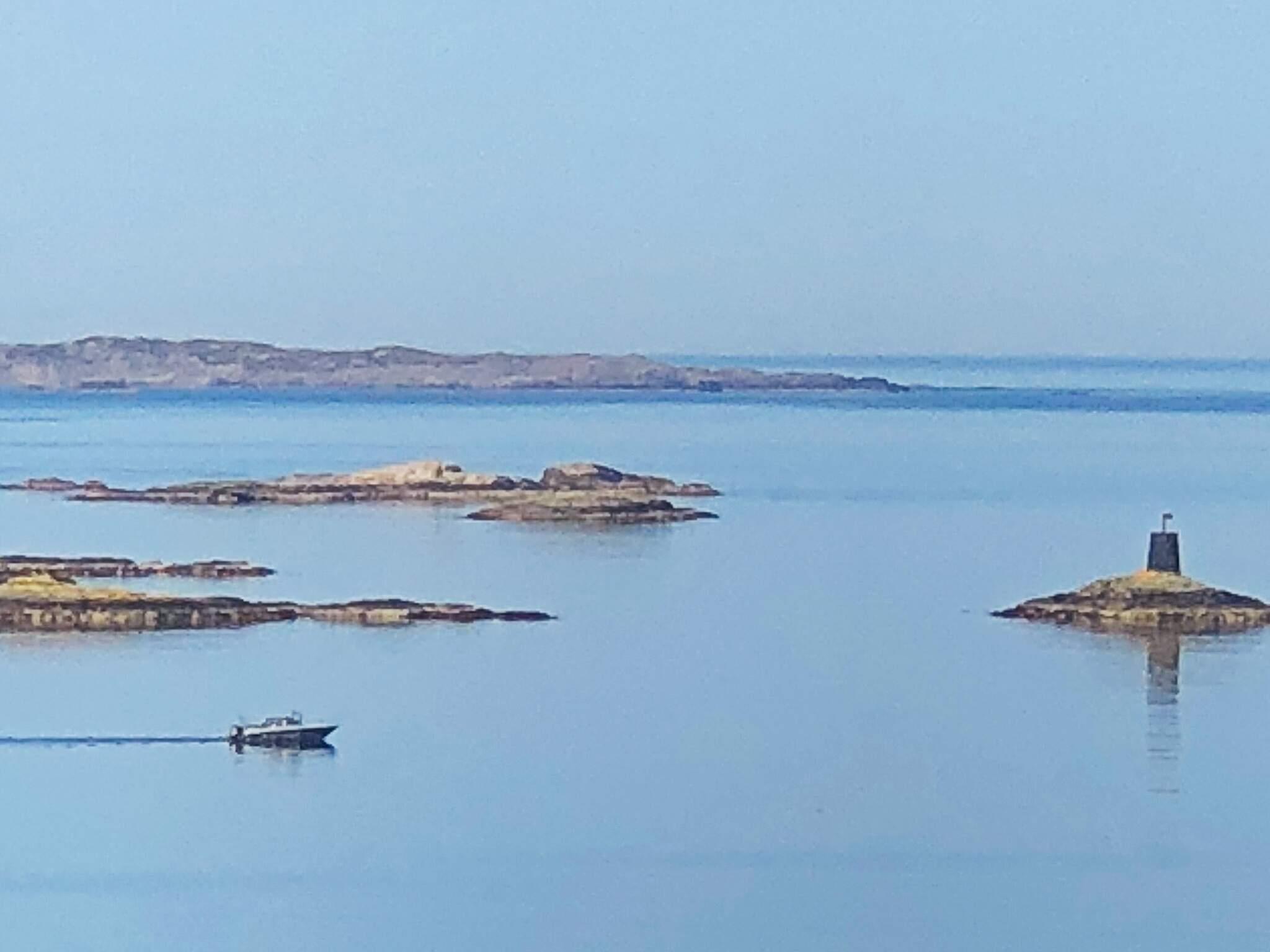 Feriehus med panoramautsikt over skjærgården og storhavet utenfor.
