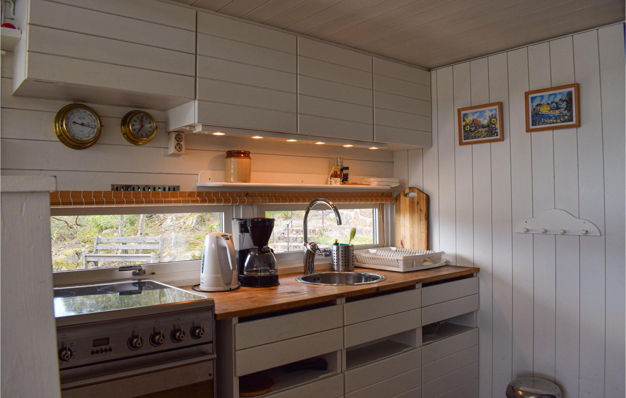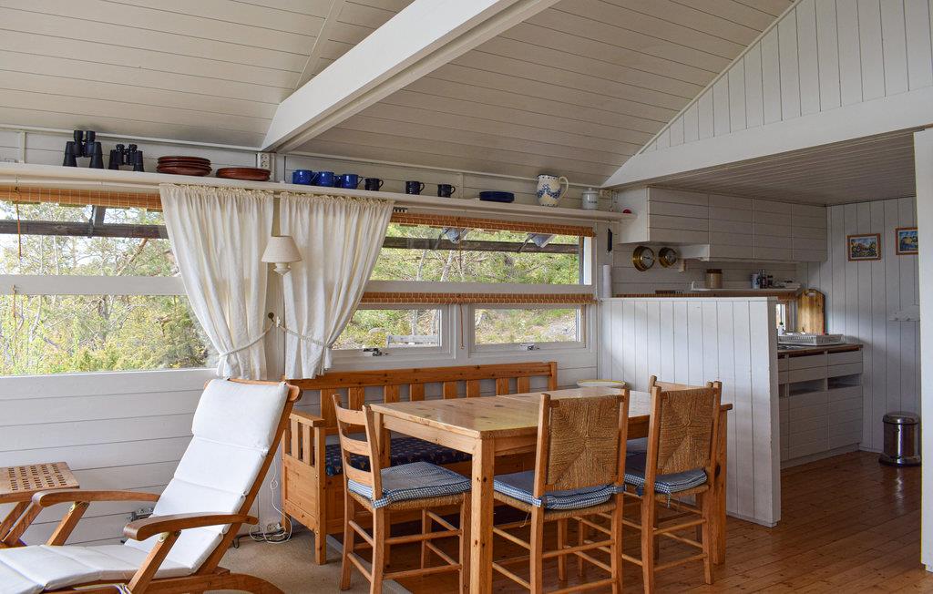 Eiendommen består av et hovedhus og et uthus. Nydelig utsikt så snart du kommer opp til huset fra parkeringsplassen. Nyt solen på den store terrassen og bad ved brygga. Forresten, dette er også et flott sted å fiske. I selve huset tilbyr det åpne kjøkkenet et godt samlingspunkt om kvelden. I tillegg er det et bad og tre soverom, hvorav det ene er et gjennomgangsrom, og det ene loftet. I uthuset er det et annet soverom med dobbeltseng og eget bad med dusj.