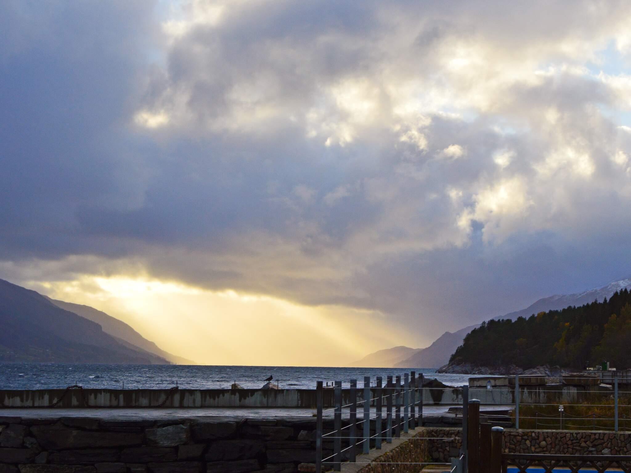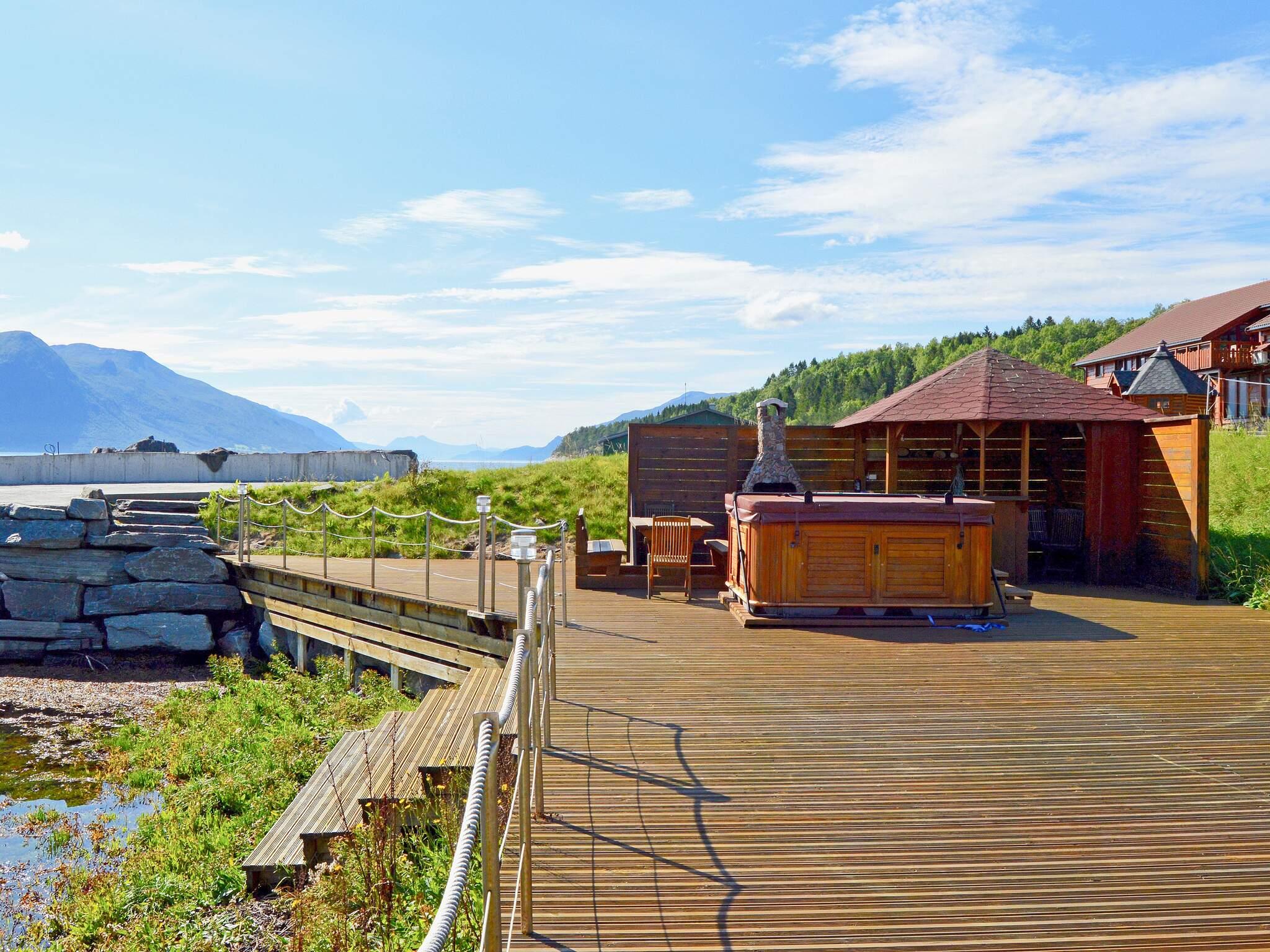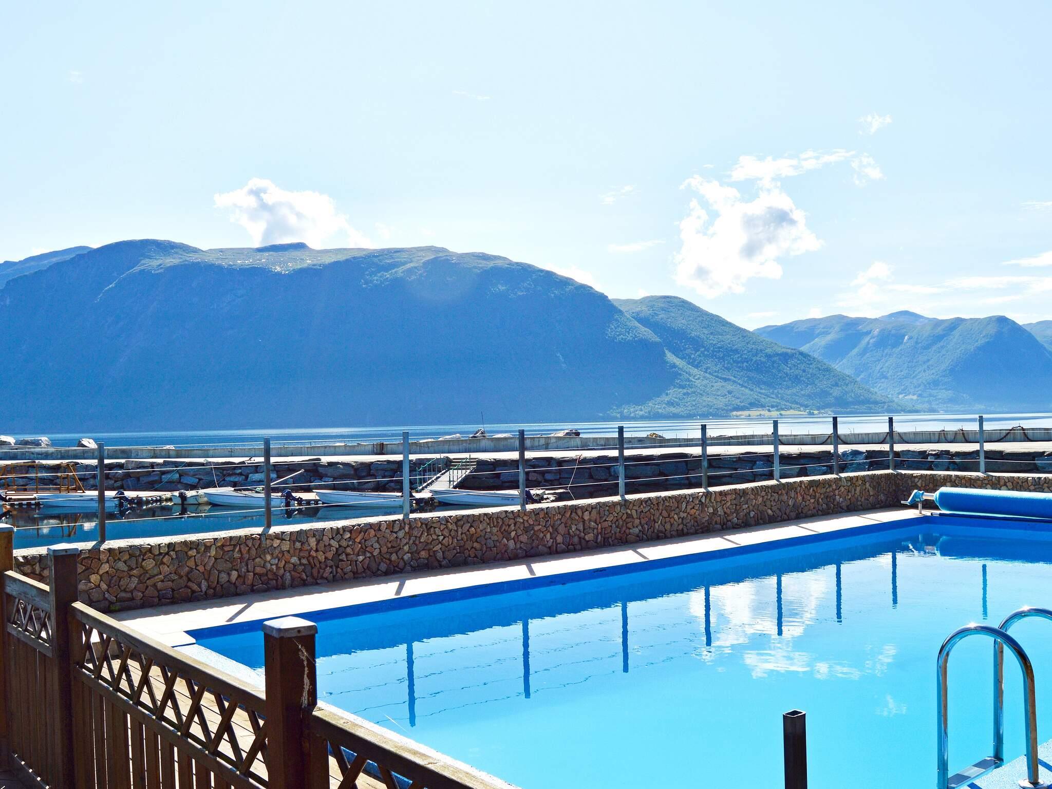 Fint feriested med felles svømmebasseng, direkte ved fjorden omgitt av et fantastisk fjord- og fjellandskap.