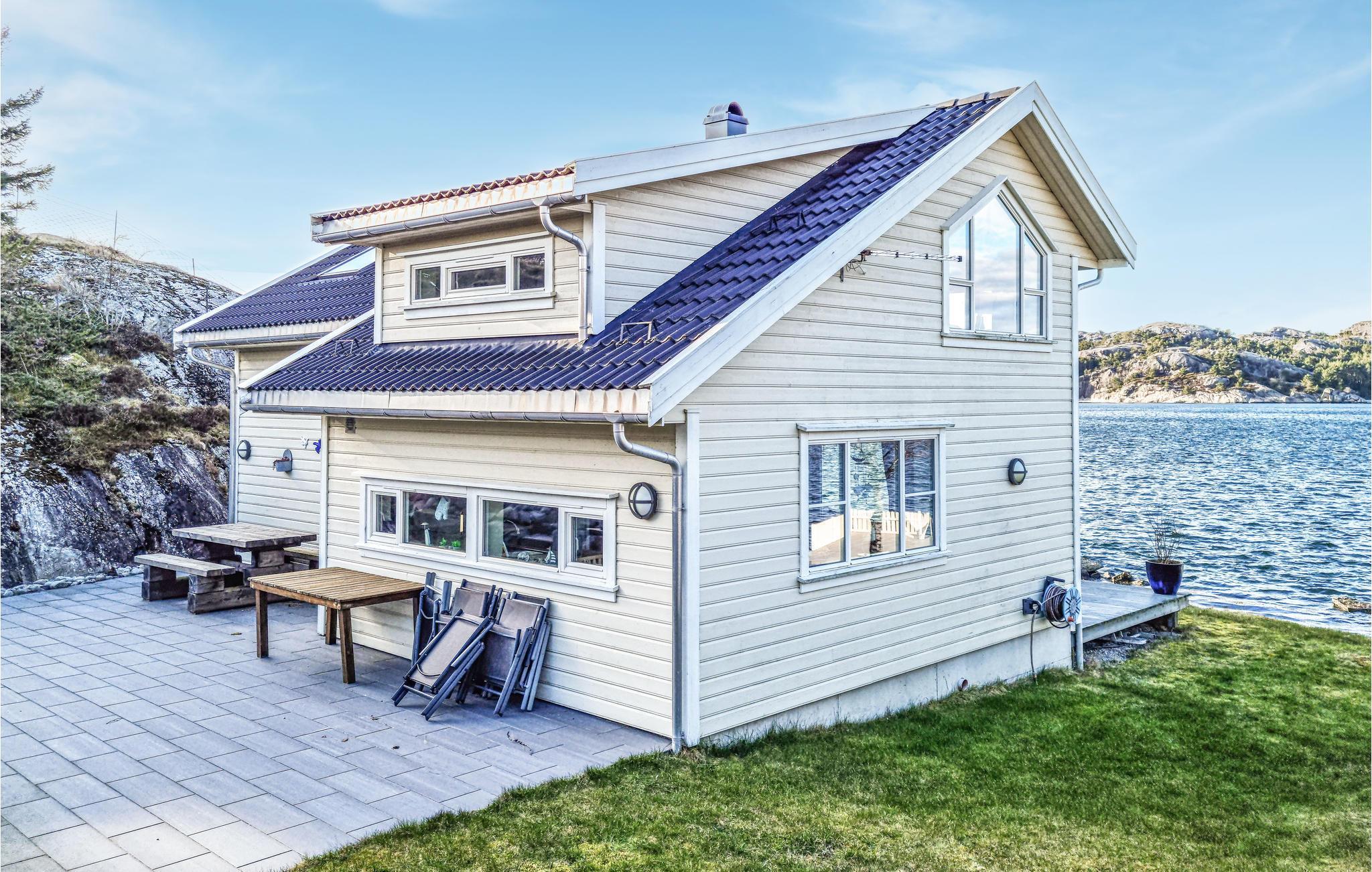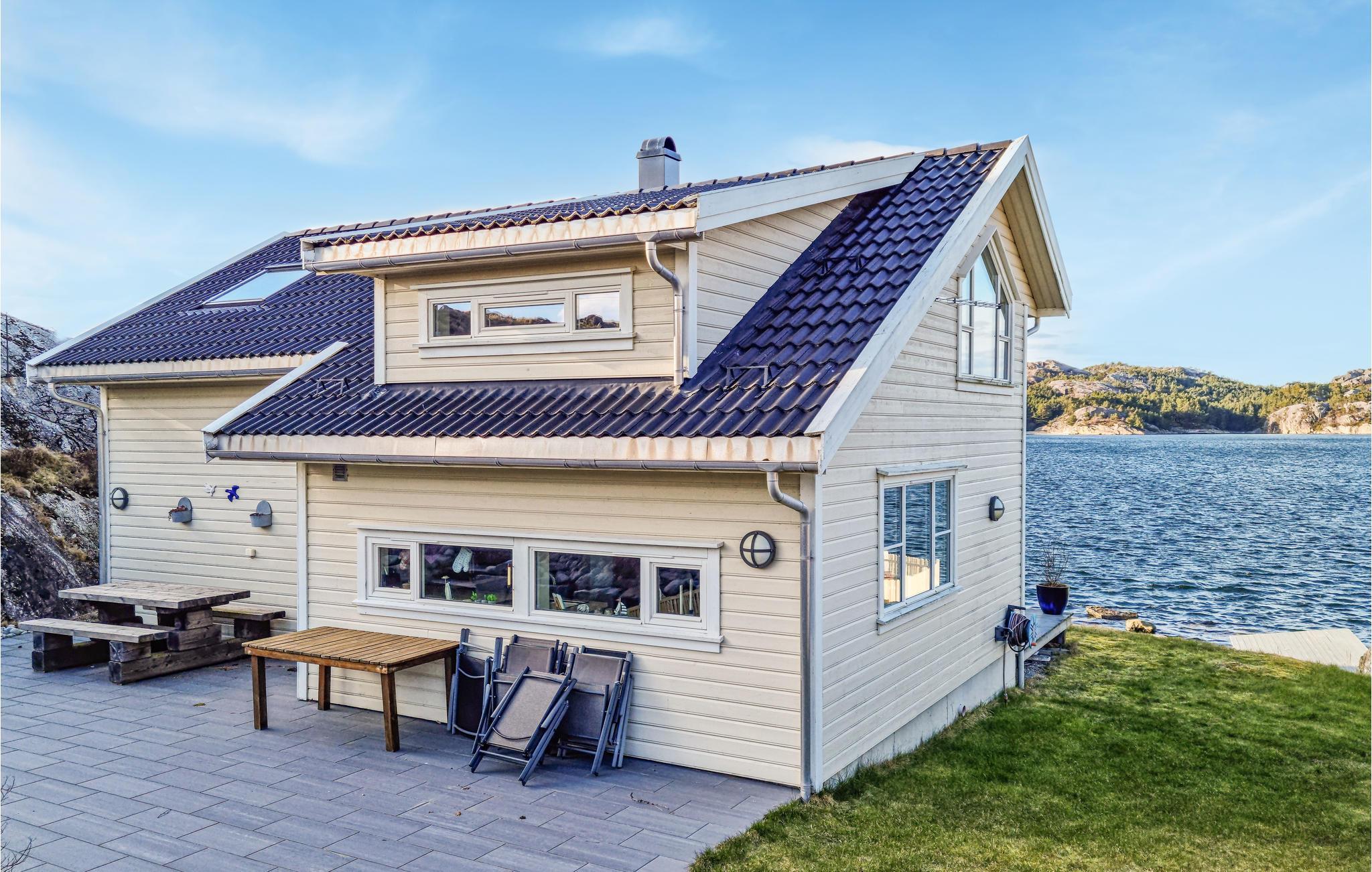 Se frem til en imponerende panoramautsikt i dette koselige feriehuset rett ved fjorden!