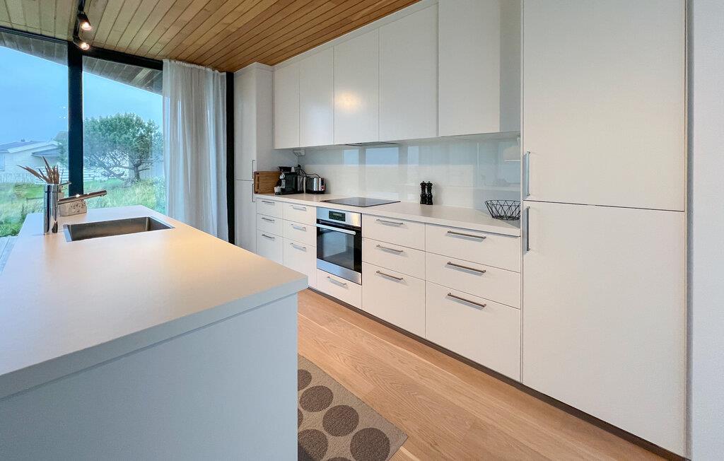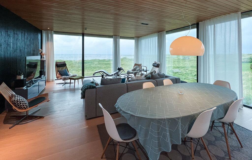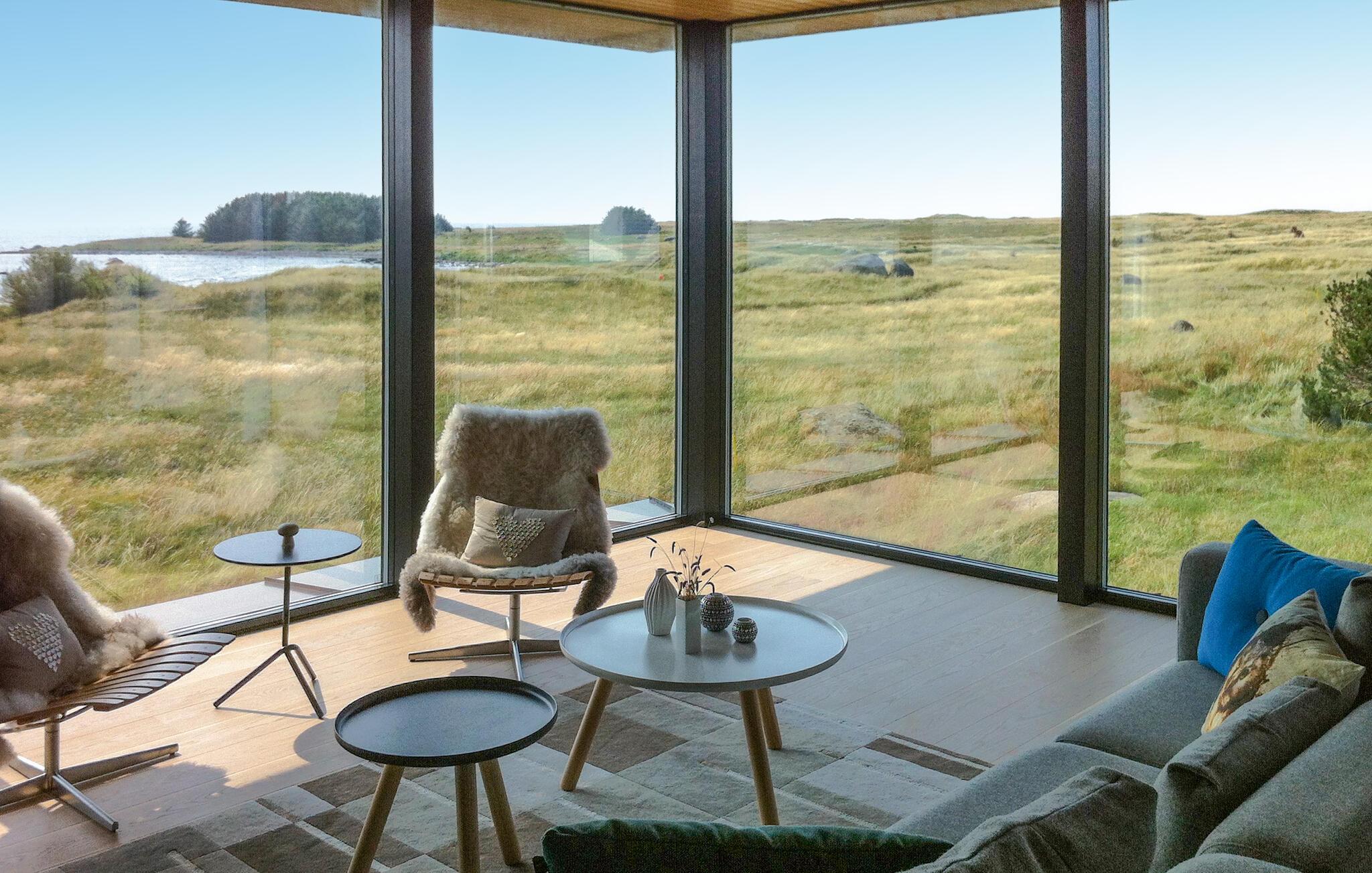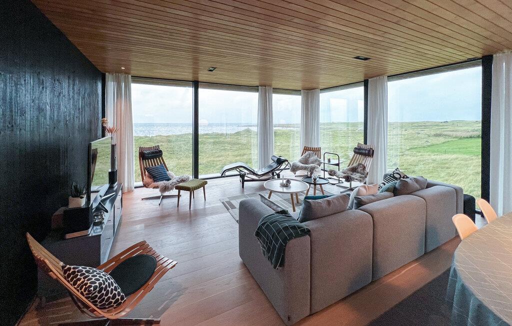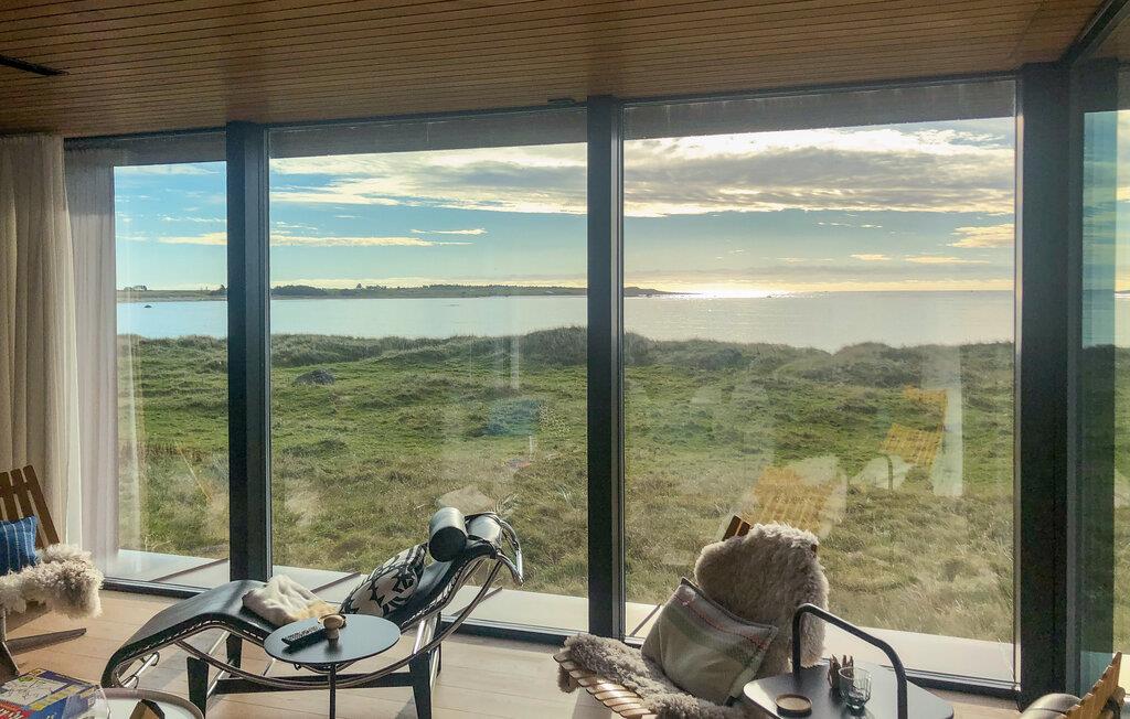 Dette huset kombinerer ikke bare komfort og hygge på en harmonisk måte, men byr også på en imponerende utsikt over havet og sanddynelandskapet. Store panoramavinduer slipper lyset inn i den åpne planløsningen, og sammen med lyse tregulv og elegante møbler skaper det en avslappende atmosfære. Huset ligger i Nordhasselvika, som ble kåret til en av Europas 20 skjulte perler av The Guardian i 2025.