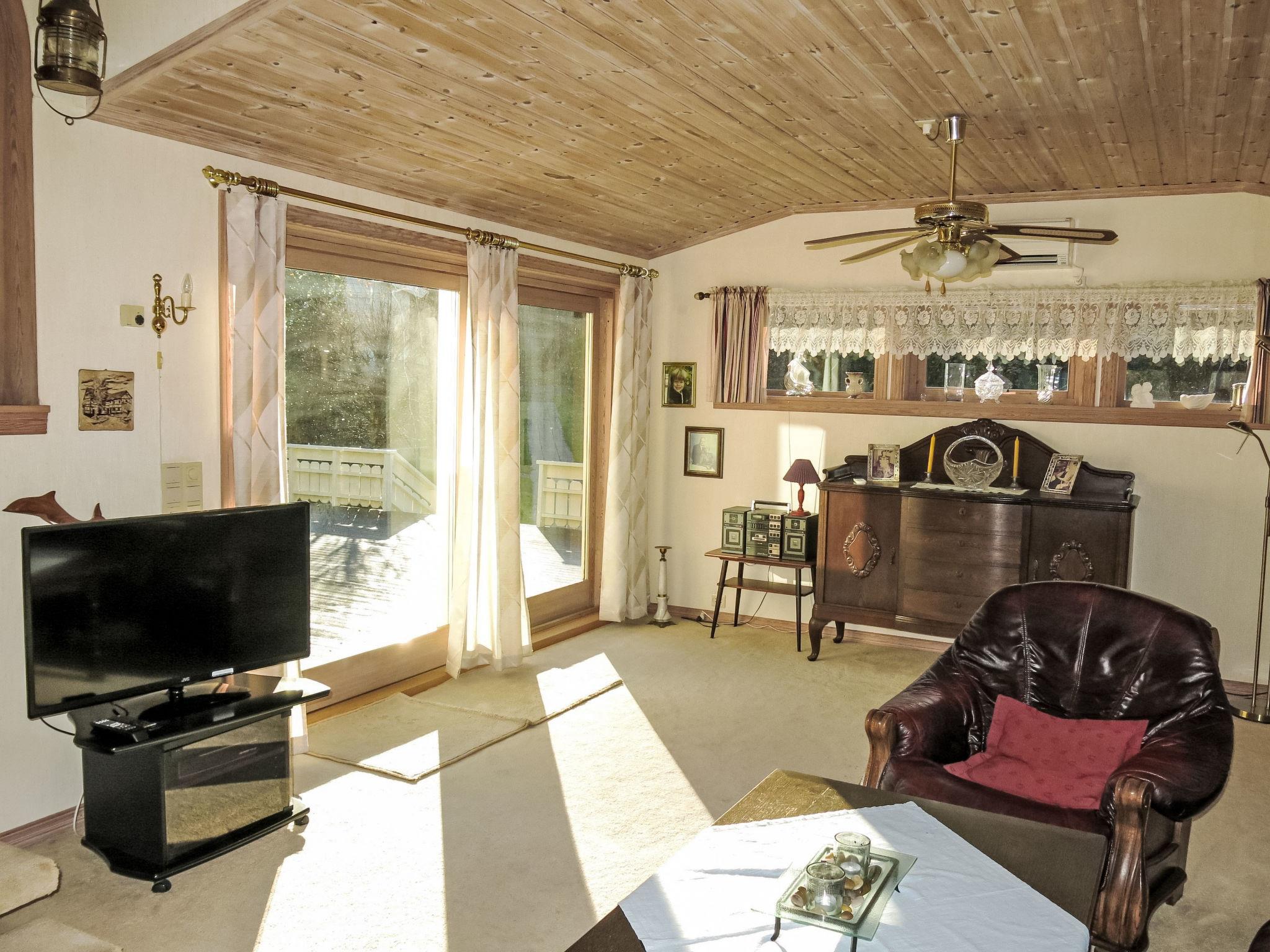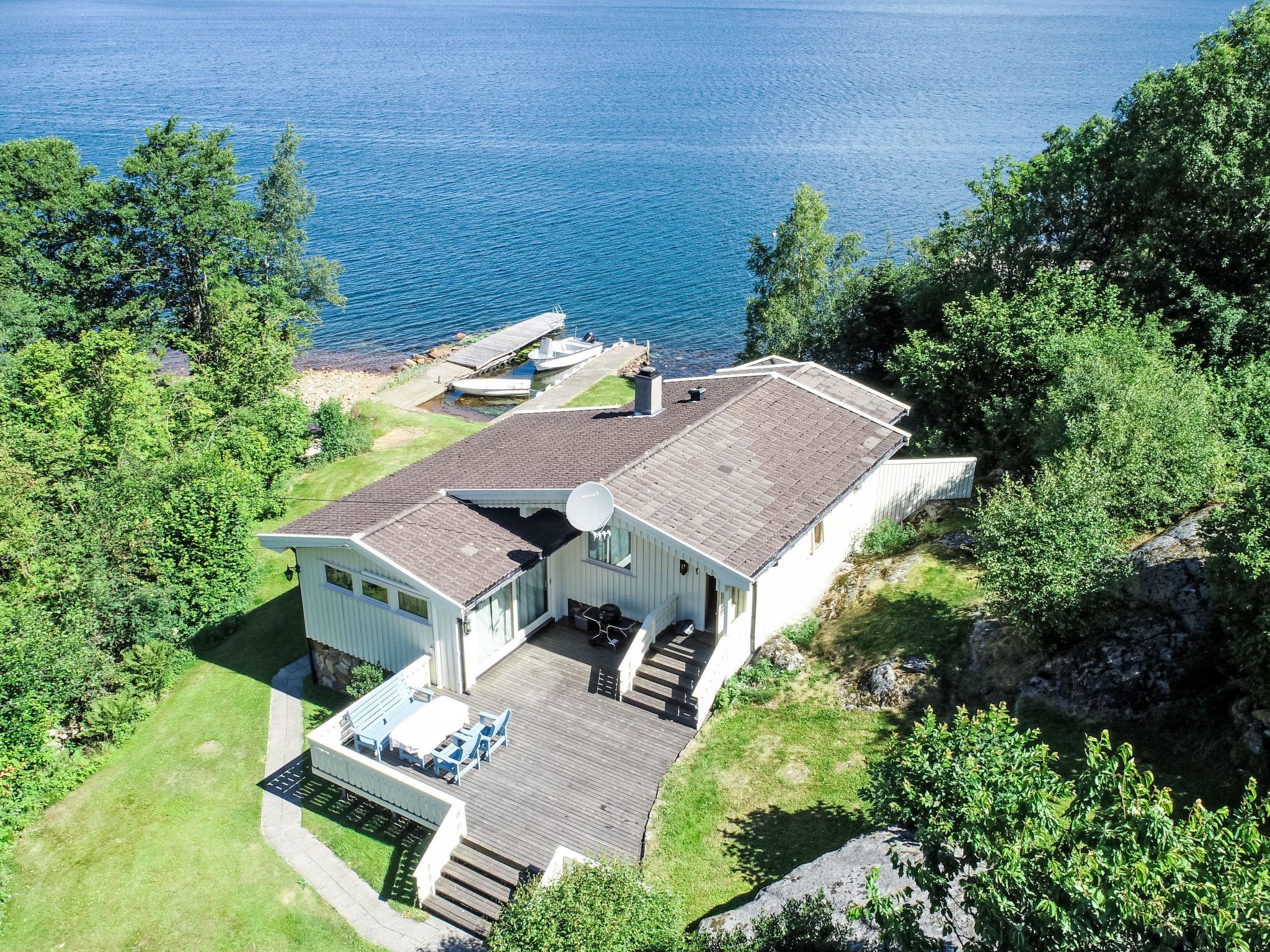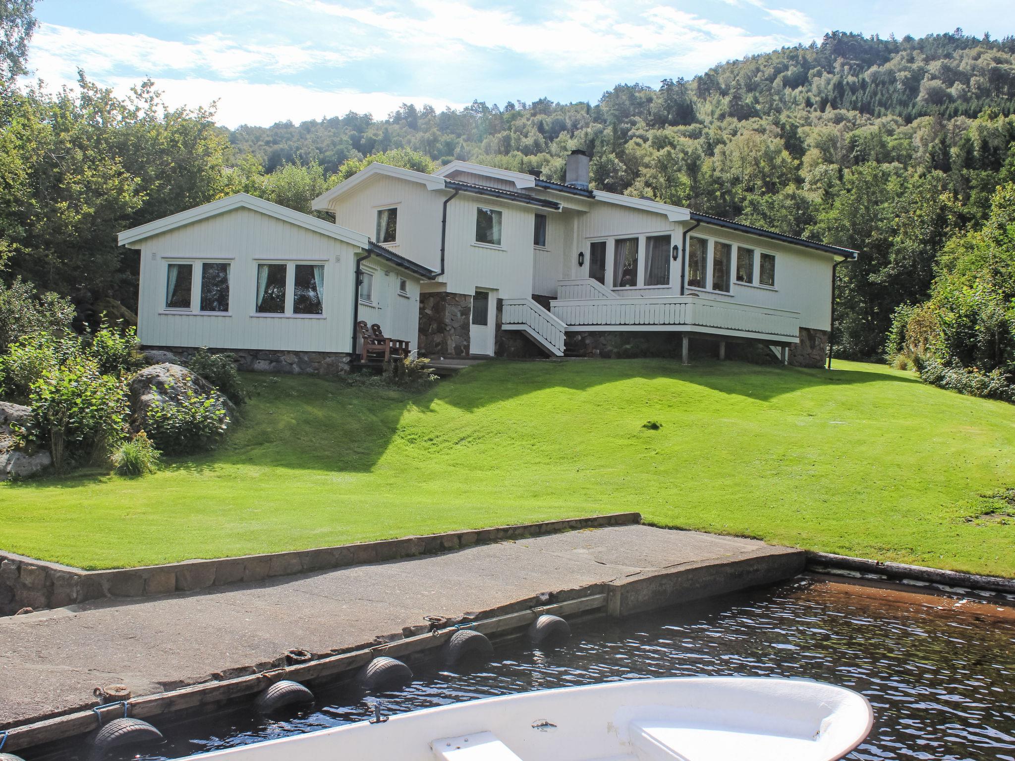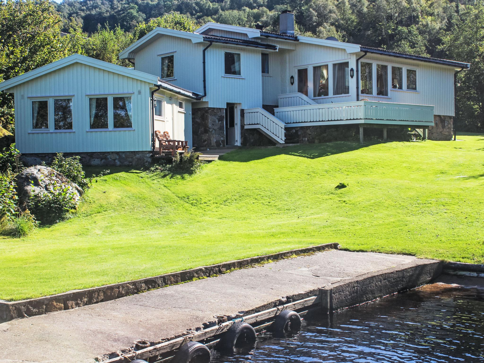 House "Åptafjorden". Property composed of main house and outbuilding, in the hamlet Hauli 12 km from the centre of Farsund, 61 km from the centre of Mandal, 103 km from the centre of Kristiansand, 10 m from the sea. Private: property 2'000 m2, well-kept garden (not fenced) with lawn and trees. Bathing place. Motor boat (on order), single garage. Supermarket 12 km, bus stop "Sande" 1.2 km, ferry "Kristiansand" 103 km. Fishing possibilities 10 m. Please note: private mooring.