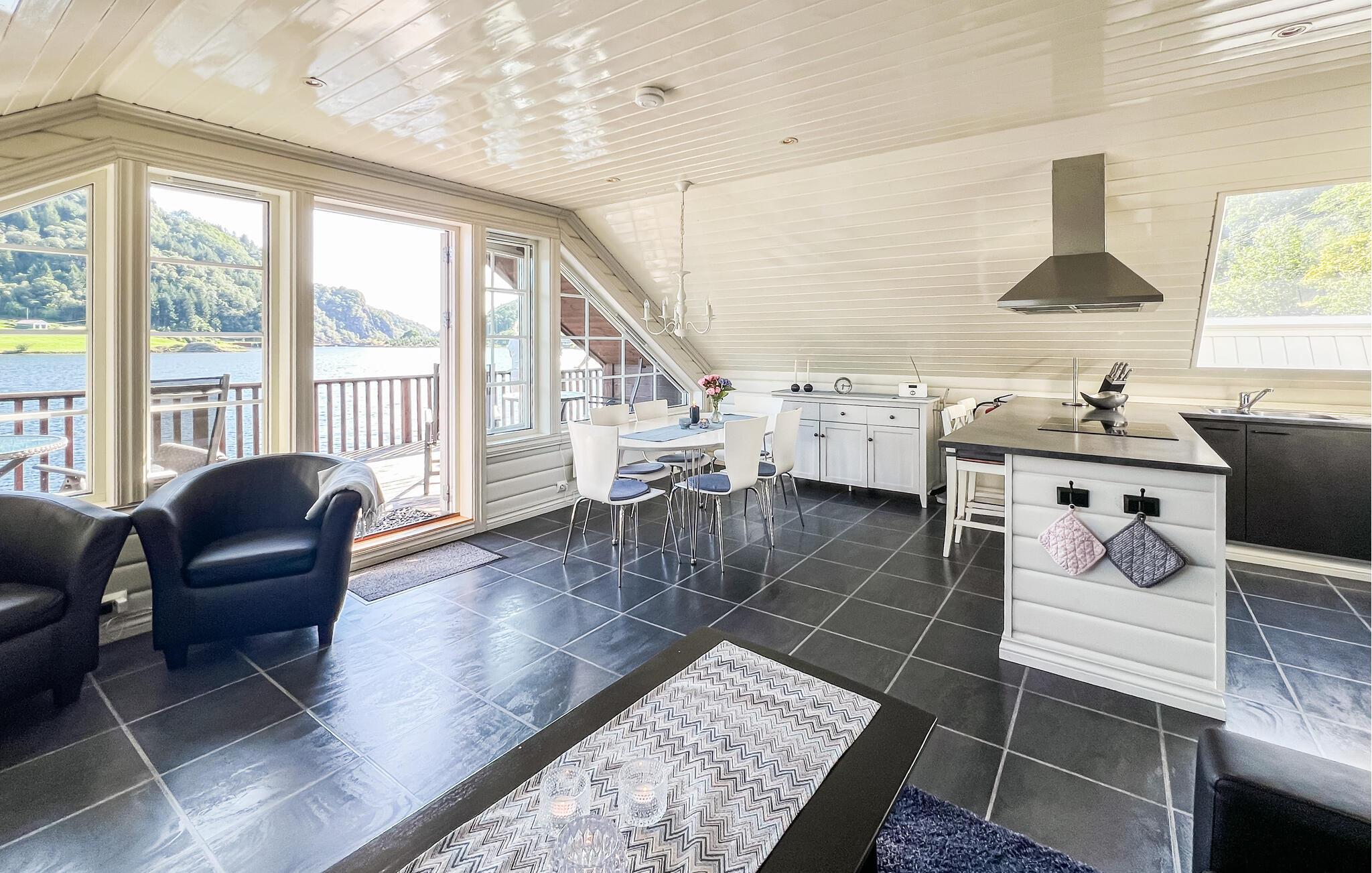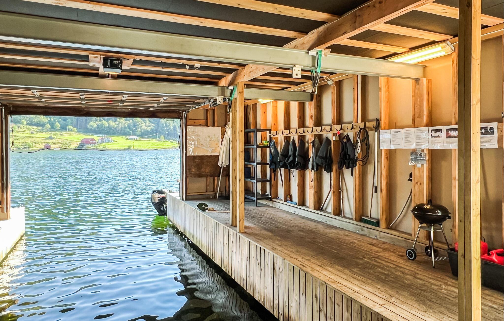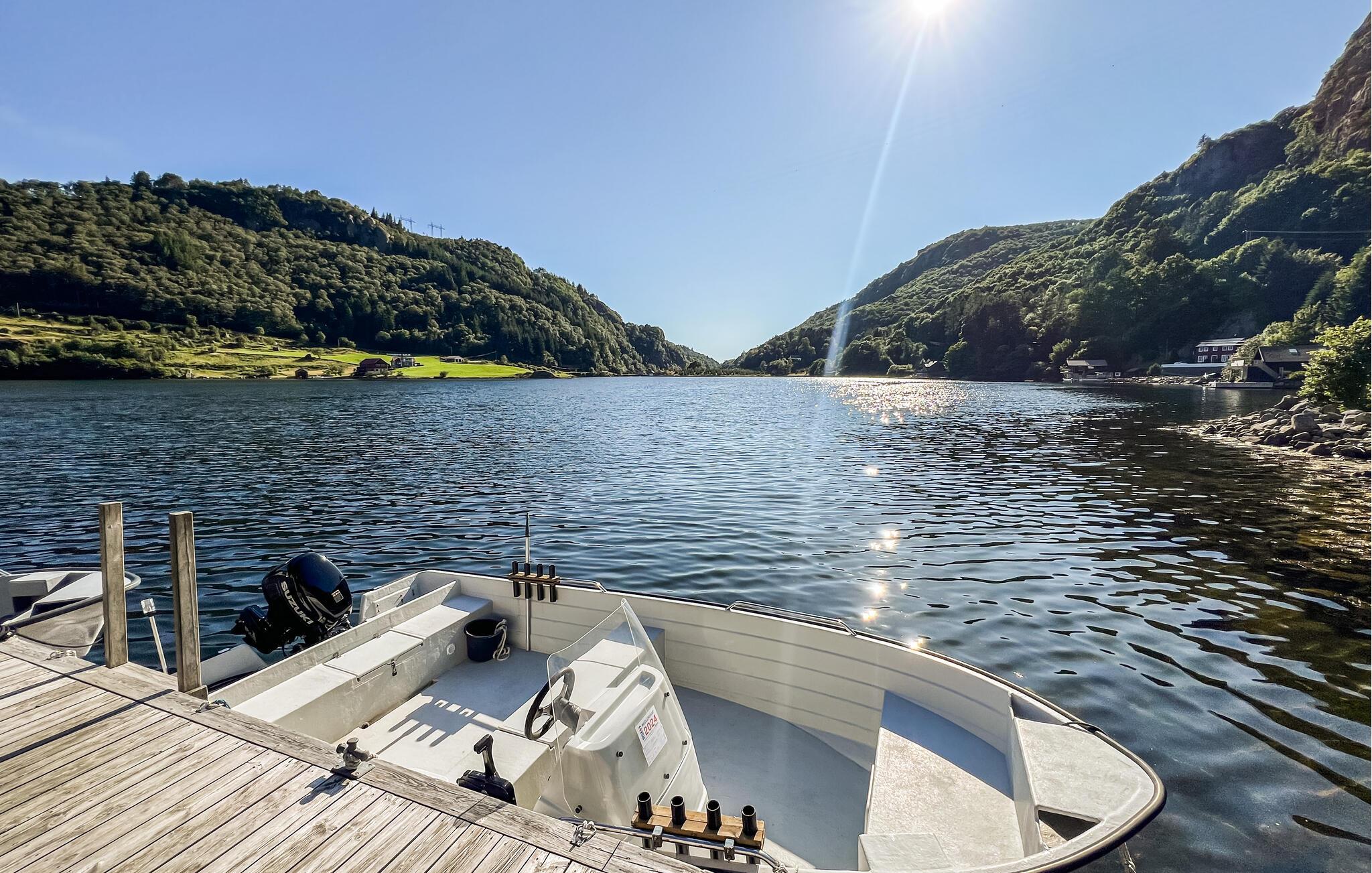 Fra hytta har du en vakker utsikt over fjorden og området rundt. Dette er det perfekte feriehuset for fiskeentusiaster. Huset har en fin fileteringsbenk og en stor fryser i naustet. Du kan ikke ta med egen båt og motor. En ekstra båt er tilgjengelig på forespørsel.