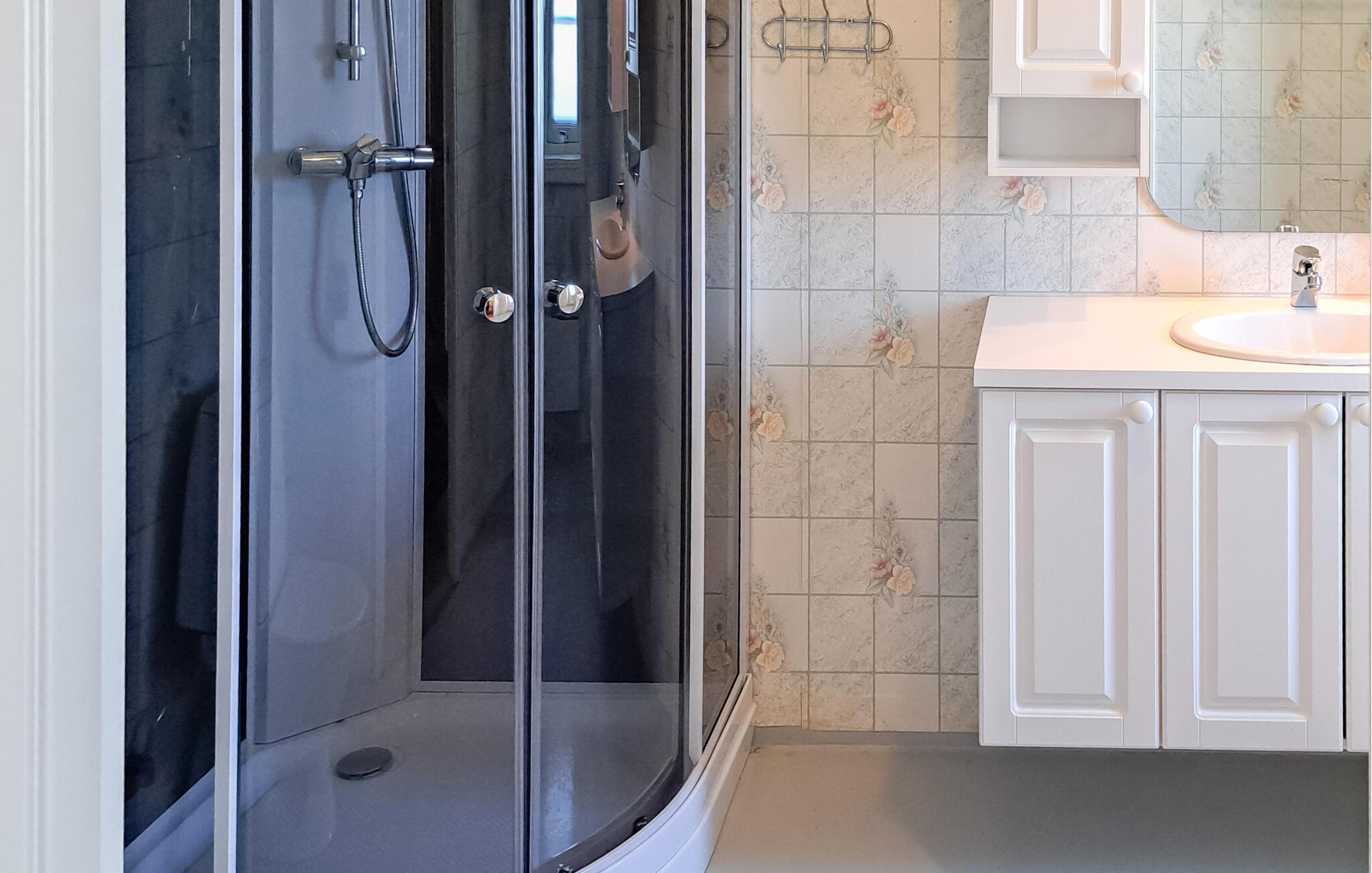Dette romslige feriehuset ønsker deg velkommen med en lys og koselig atmosfære, og byr på god plass for en hyggelig stund sammen med venner eller familie. Se frem til felles måltider og gode samtaler i den lyse stuen, la blikket vandre over det pittoreske landskapet til havet, og etter en lang dag i frisk luft kan du sette deg godt til rette ved vedovnen for en filmkveld eller en avslappende lesestund.