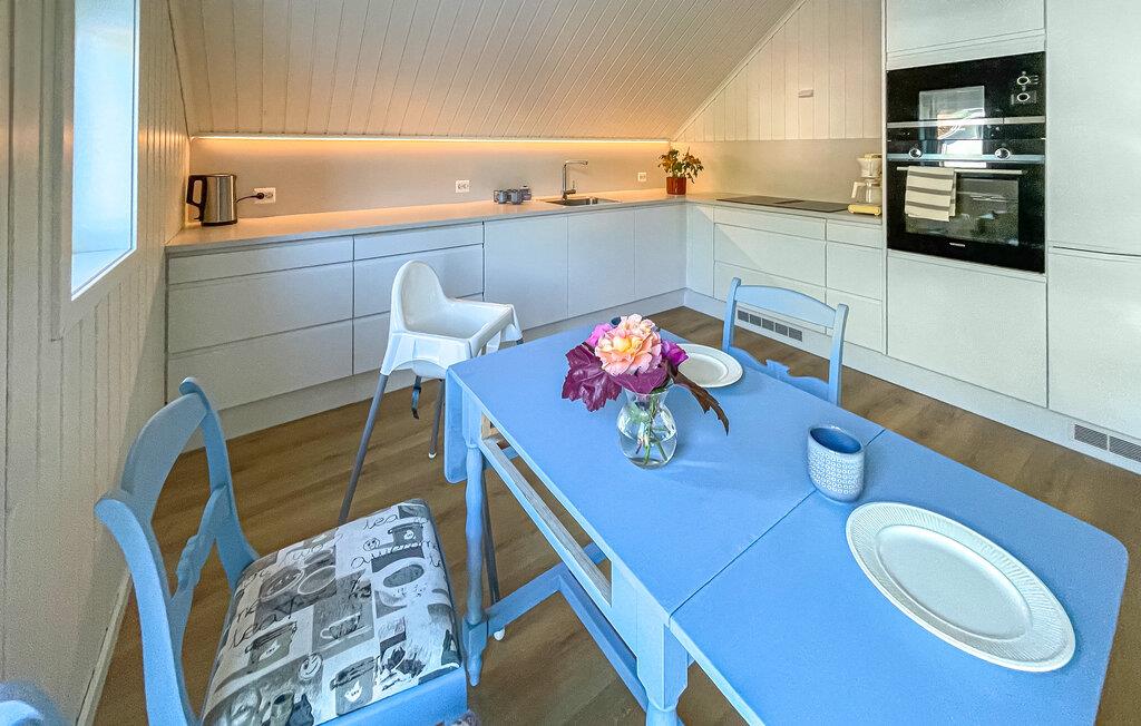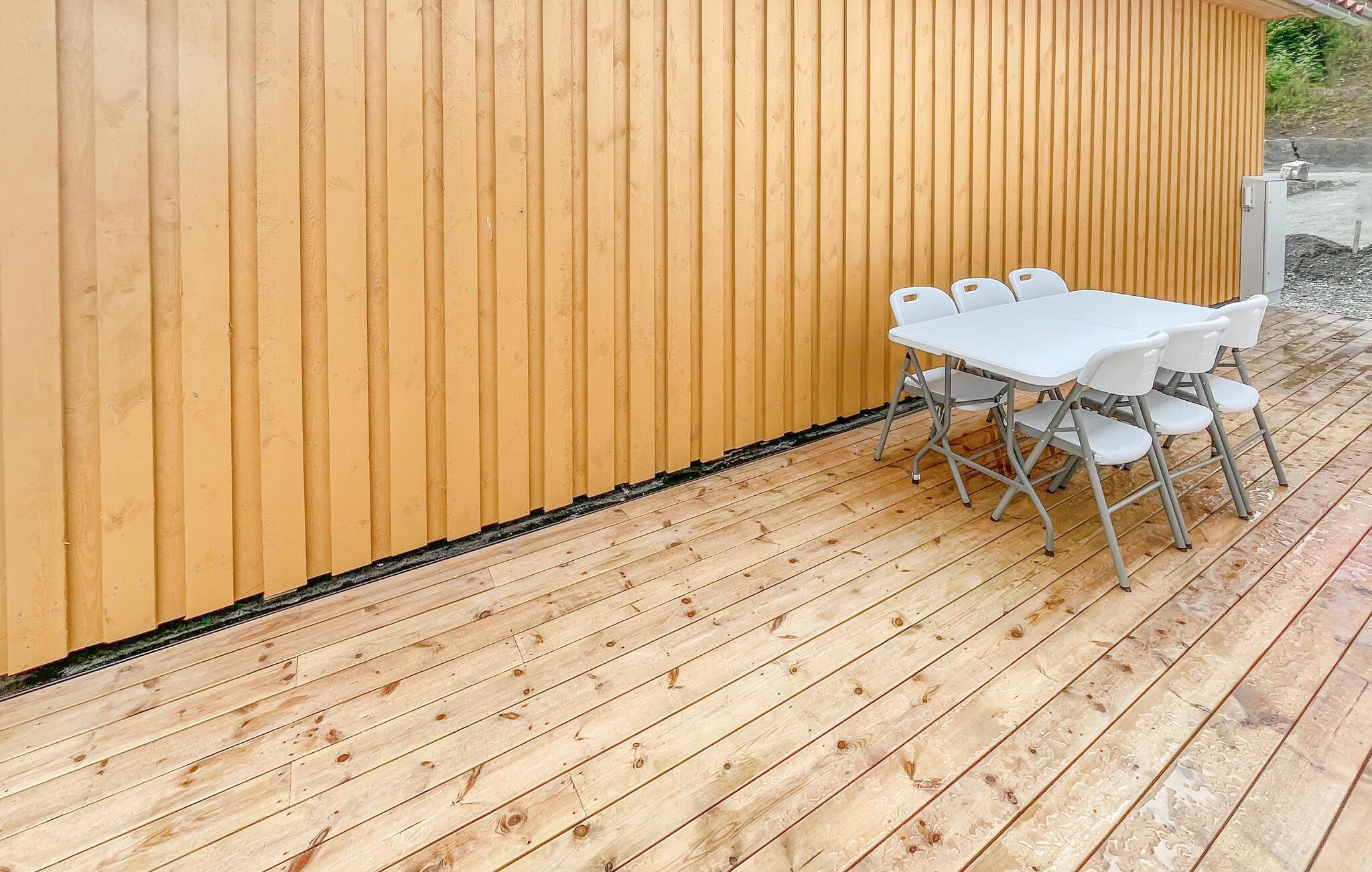 Dette moderne feriehuset i Feda imponerer med sin idylliske beliggenhet ved vannet. Det stilfulle interiøret kombinerer moderne komfort med koselig sjarm. Vinduer fra gulv til tak i oppholdsrommet gir en fantastisk utsikt over fjorden og slipper inn rikelig med lys. Slapp av i møblene og nyt de vennlige fargene som skaper en innbydende atmosfære. Et spesielt høydepunkt er den private brygga og den romslige treterrassen med direkte tilgang til vannet. Her kan du slappe av, fiske eller bare nyte den spektakulære utsikten.