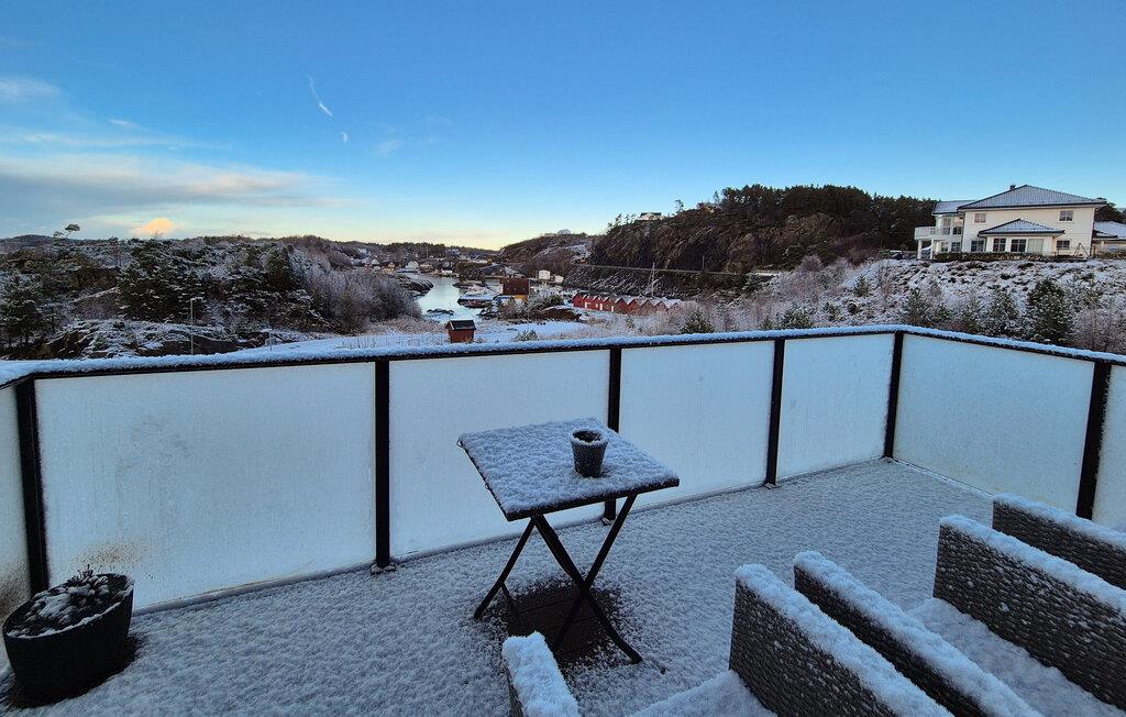 Gå ut på den store, møblerte terrassen og pust inn den friske fjordluften. Nyt utsikten over vannet og det omkringliggende landskapet. En elektrisk markise sørger for skygge når det trengs. På den mindre balkongen kan du nyte morgenkaffen eller avslutte kvelden i rolige omgivelser.