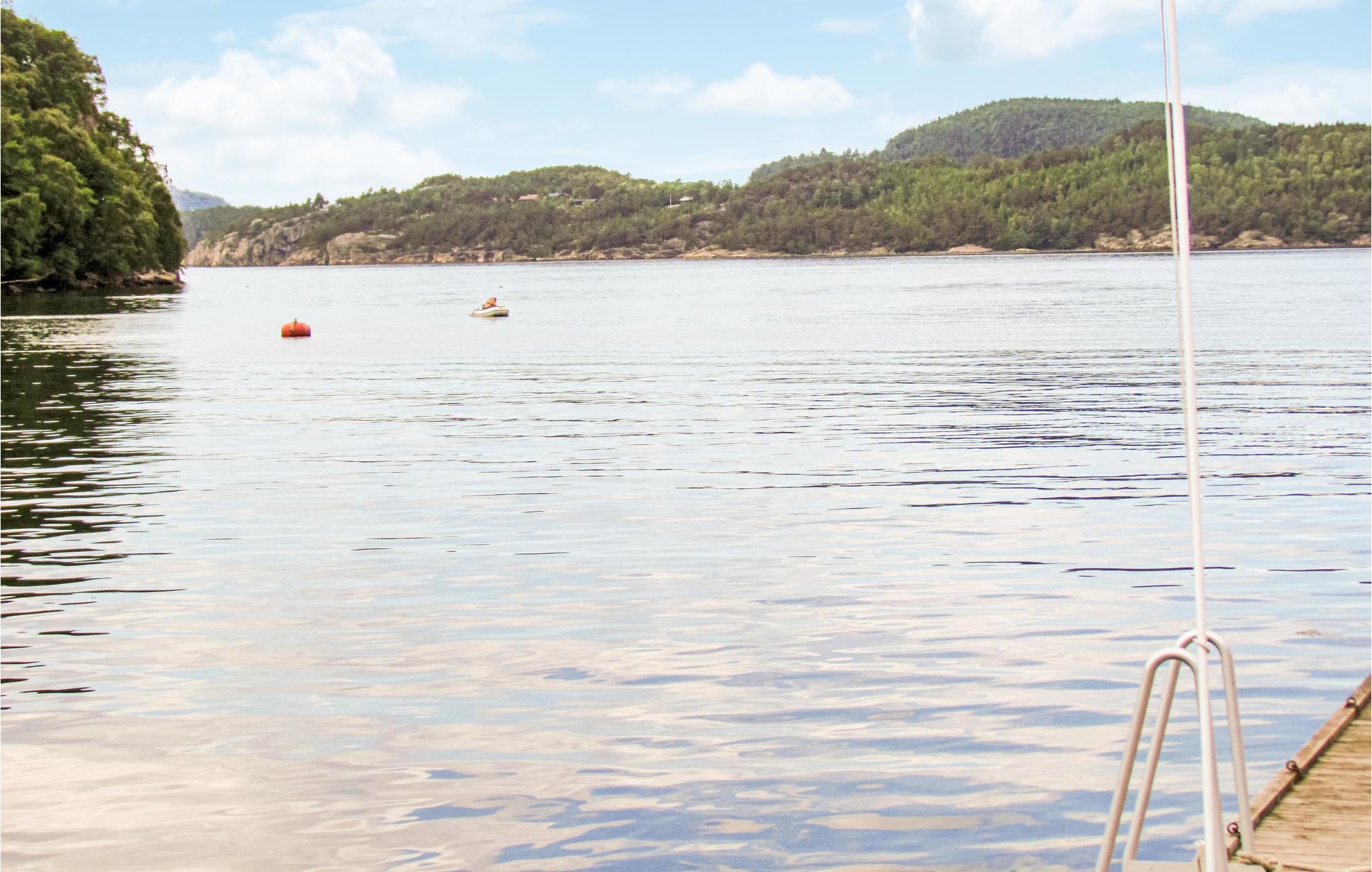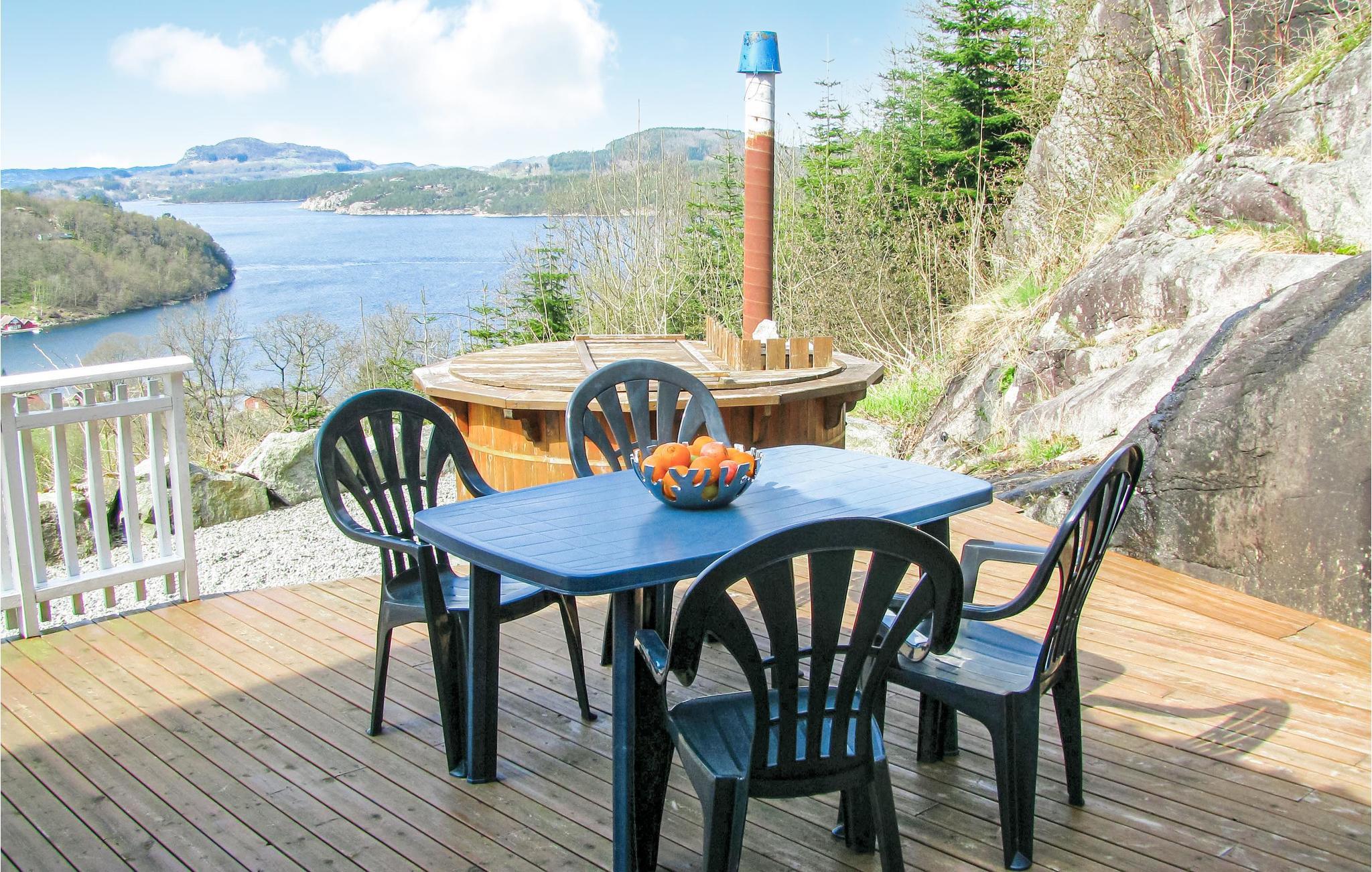 Ved Fisterfjorden finner du dette velutstyrte feriehuset, rolig beliggende med vakker utsikt over fjorden og de omkringliggende øyene. Fiskemulighetene er spesielt gode både i fjorden og i de omkringliggende fjellvannene. Du kan nyte de lange sommerkveldene på den store terrassen. Det er ikke langt til Prekestolen og Lysefjorden. De minste (og sikkert også de litt eldre) vil ha stor glede av en dag i fornøyelsesparken Kongeparken. En dagstur til Stavanger med førsteklasses restauranter, butikker og Norsk Oljemuseum kan også anbefales.