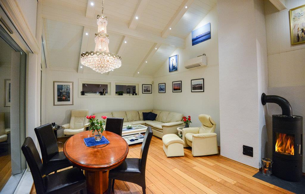 Denne luksuriøse ferieleiligheten overlater ingenting å være ønsket: Rolig beliggenhet rett ved fjorden. Panoramautsikt over fjorden og fjellene. Utmerkede bade- og fiskemuligheter. Fin sandstrand rett utenfor døren. Terrasse og hage med grill og hagemøbler av høy kvalitet. Barnevennlig. Eget område i naust med båtplass. Fileteringsplass ved fjorden. Gode turmuligheter i området. Besøk gjerne Kongeparken og Stavanger. Dagsturer til Lysefjorden og Prekestolen. N16101 ligger i 1. etasje, N16100 ligger i 2. etasje.