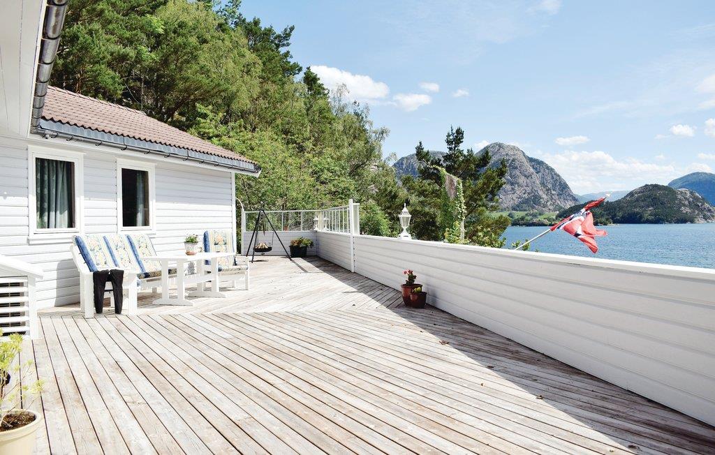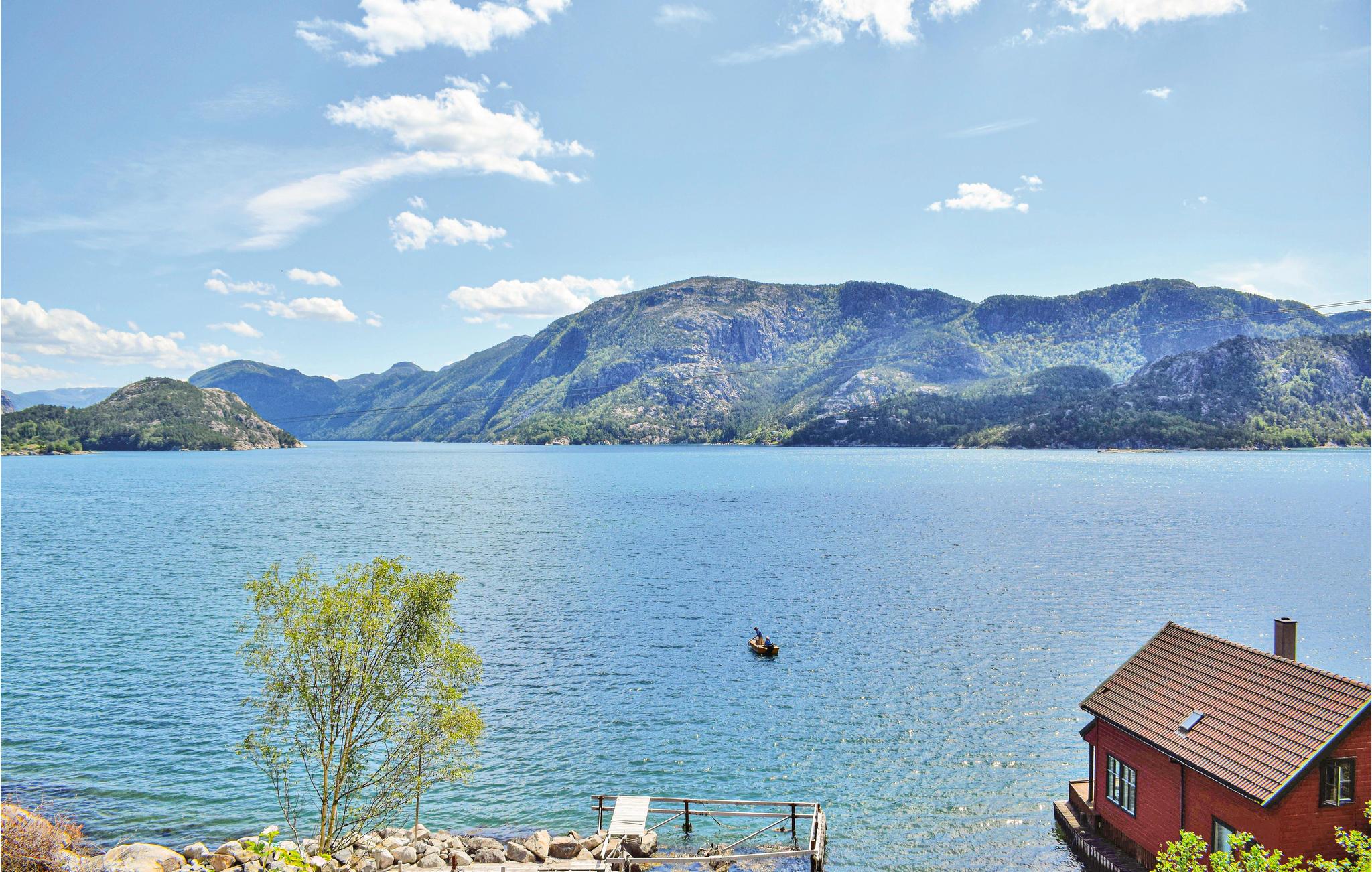 Ønsker du et feriehus hvor du kan nyte en spektakulær panoramautsikt over fjorden i ferien? Da er dette vakre feriehuset i søkelyset for deg. Fra den store terrassen kan du nyte utsikten over fjorden og fjellene på lange sommerdager. På terrassen er det også fine hagemøbler og en grill, slik at du kan nyte måltidet ute. Du kan fiske til middag i den nærliggende fjorden enten fra båt eller fra land. Hytta har en fileteringsplass og et kjølerom (1 kvm). Det er også gode bademuligheter i fjorden og fine forhold for barn. Ønsker du å gå en tur i løpet av ferien er det ikke langt til et flott turområde med merket tursti. Hjelmeland og Årdal er verdt en tur fra feriehuset, samt dagsturer til Lysefjorden og Prekestolen. For barna er et besøk i fornøyelsesparken Kongeparken en god idé. Alt ligger med andre ord til rette for en ferie med familie og venner i vakre omgivelser. Ekstra båt (15 fot/25 hk) med elektrisk starter.