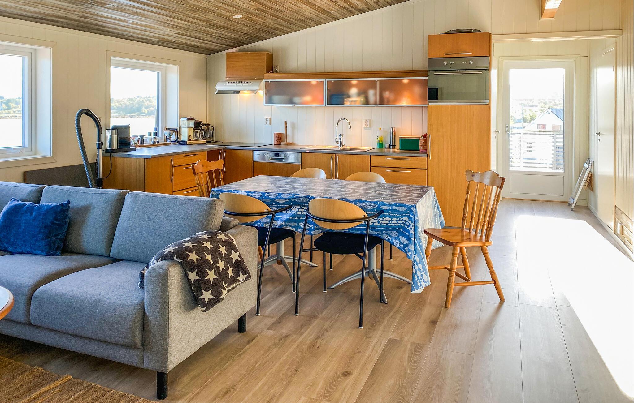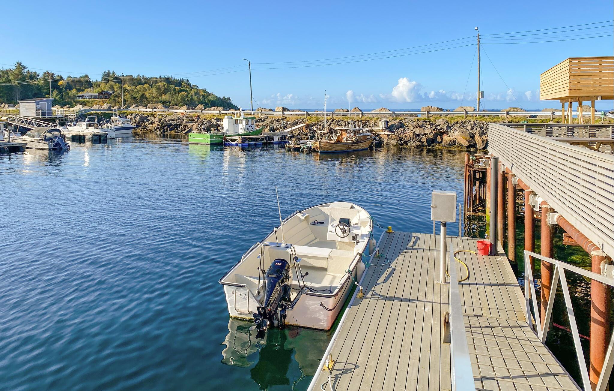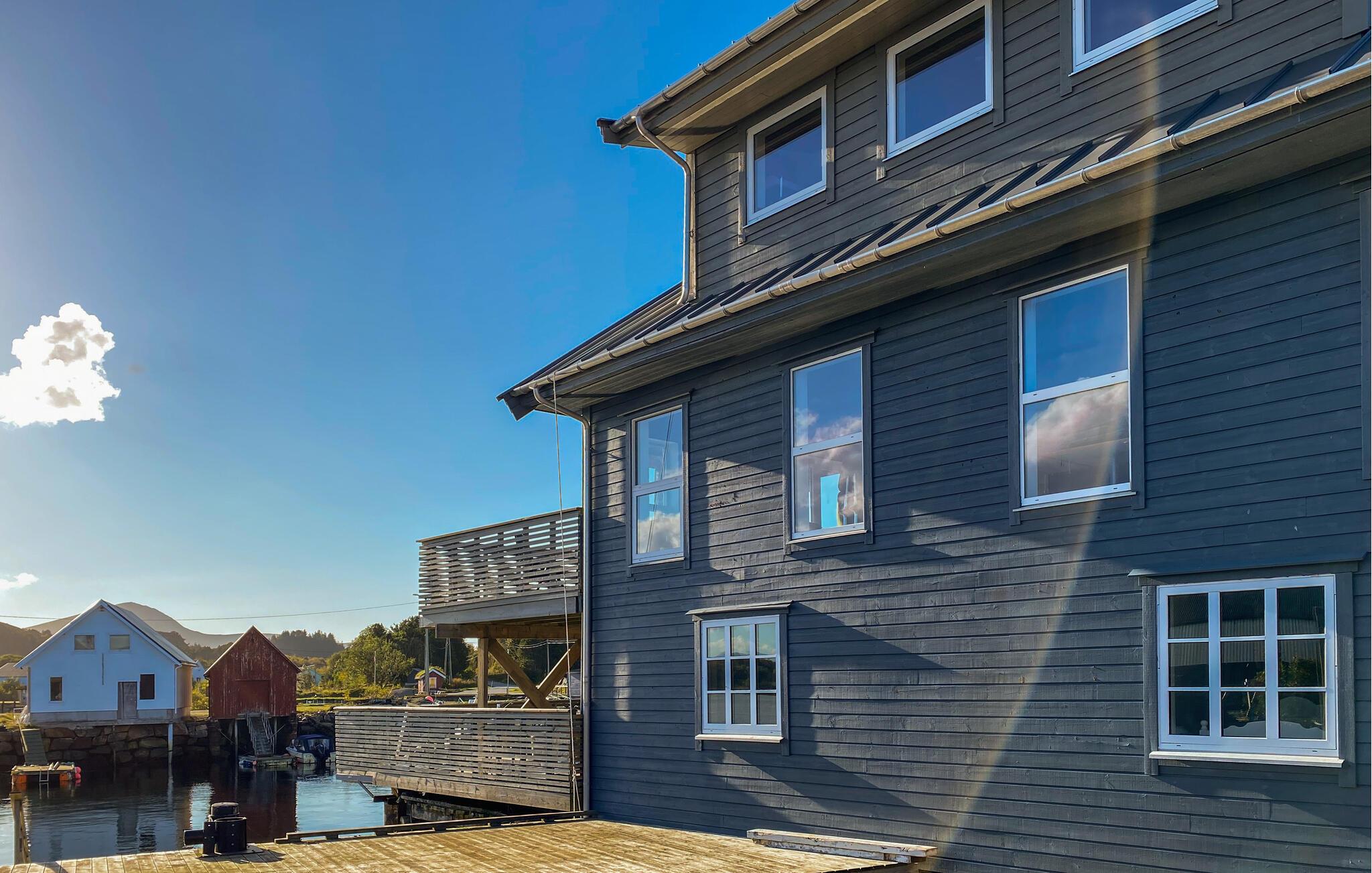 Dette romslige feriehuset på Fjørtoft har god plass til store familier eller flere familier som ønsker å feriere sammen. Med to kjøkken, to oppholdsrom og flere terrasser samt en veranda er det god plass til å føle seg hjemme. Etter en begivenhetsrik dag kan du slappe av i boblebadet mens du nyter utsikten over havet. Forholdene er ideelle for sportsfiskere, med fortøyningsplasser og mulighet for å leie båt for å prøve fiskelykken rett utenfor døren.
