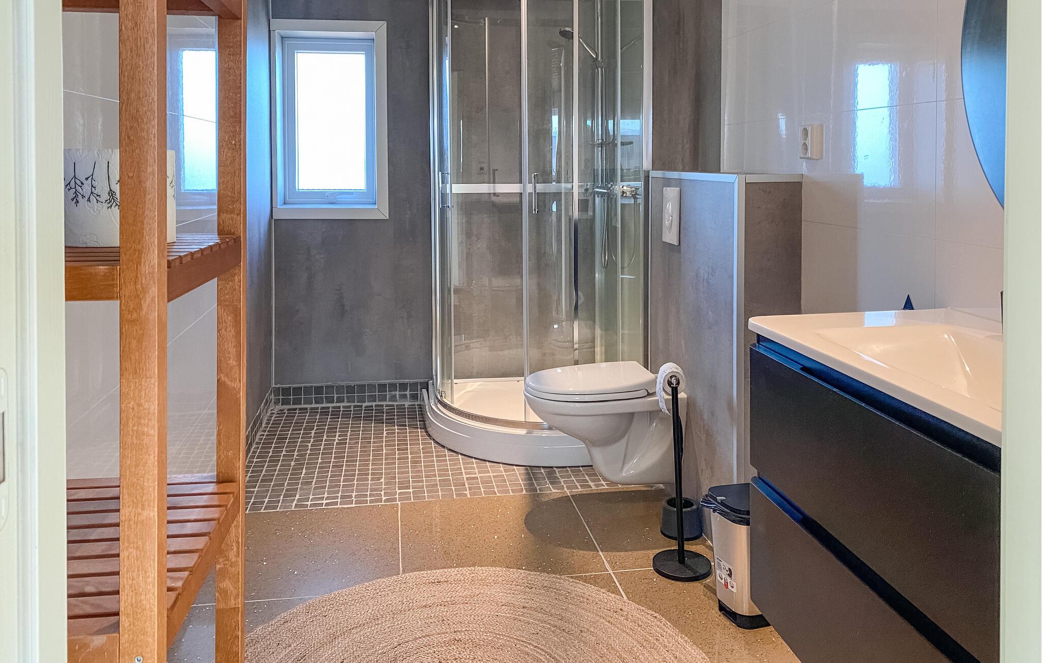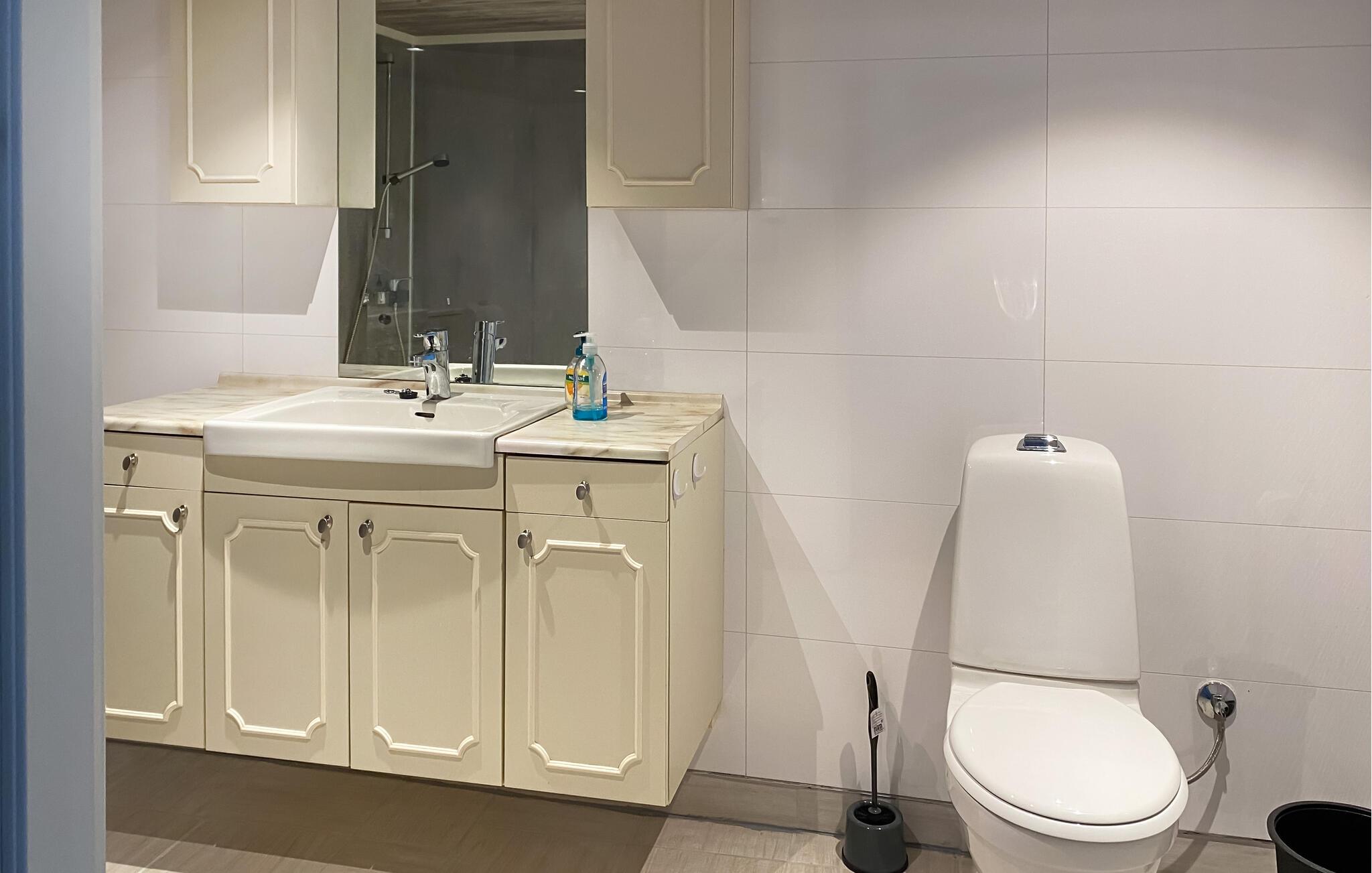 - WC med varmt og kaldt vann, Dusj