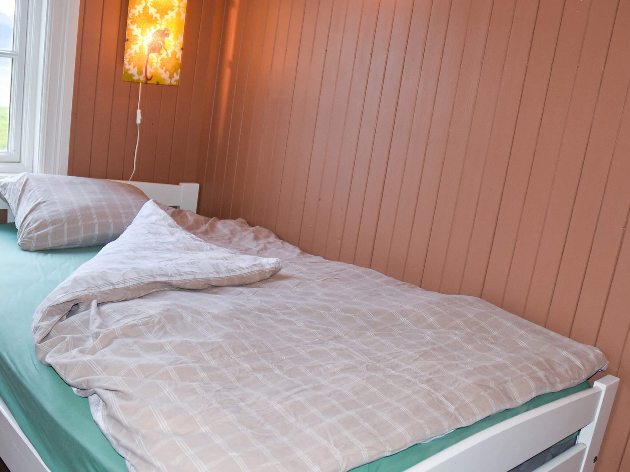 Koselig feriehus med peisovn på kjøkkenet. Internett: fiber, 100 Mbits, smart- TV med tyske og internasjonale kanaler m.m. De to enkeltsengene kan sammensettes til dobbeltseng. Flott utsikt til den langgrunne sandstranden og småbåthavnen nede ved Harøyfjorden. På gården er det hester, melke- og kjøttproduksjon.