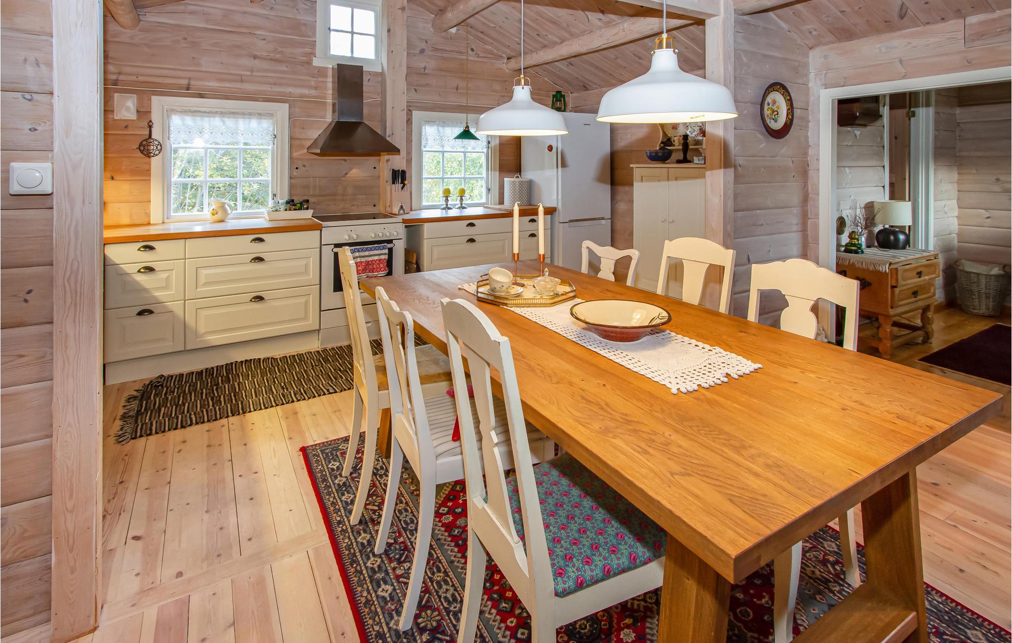 Feriehuset er delikat innredet og innbyr til en fredelig og hyggelig ferie med familie og venner. Her kan dere samles i stuen til kortspill og gode samtaler, og nyte deilige middager ved spisebordet.