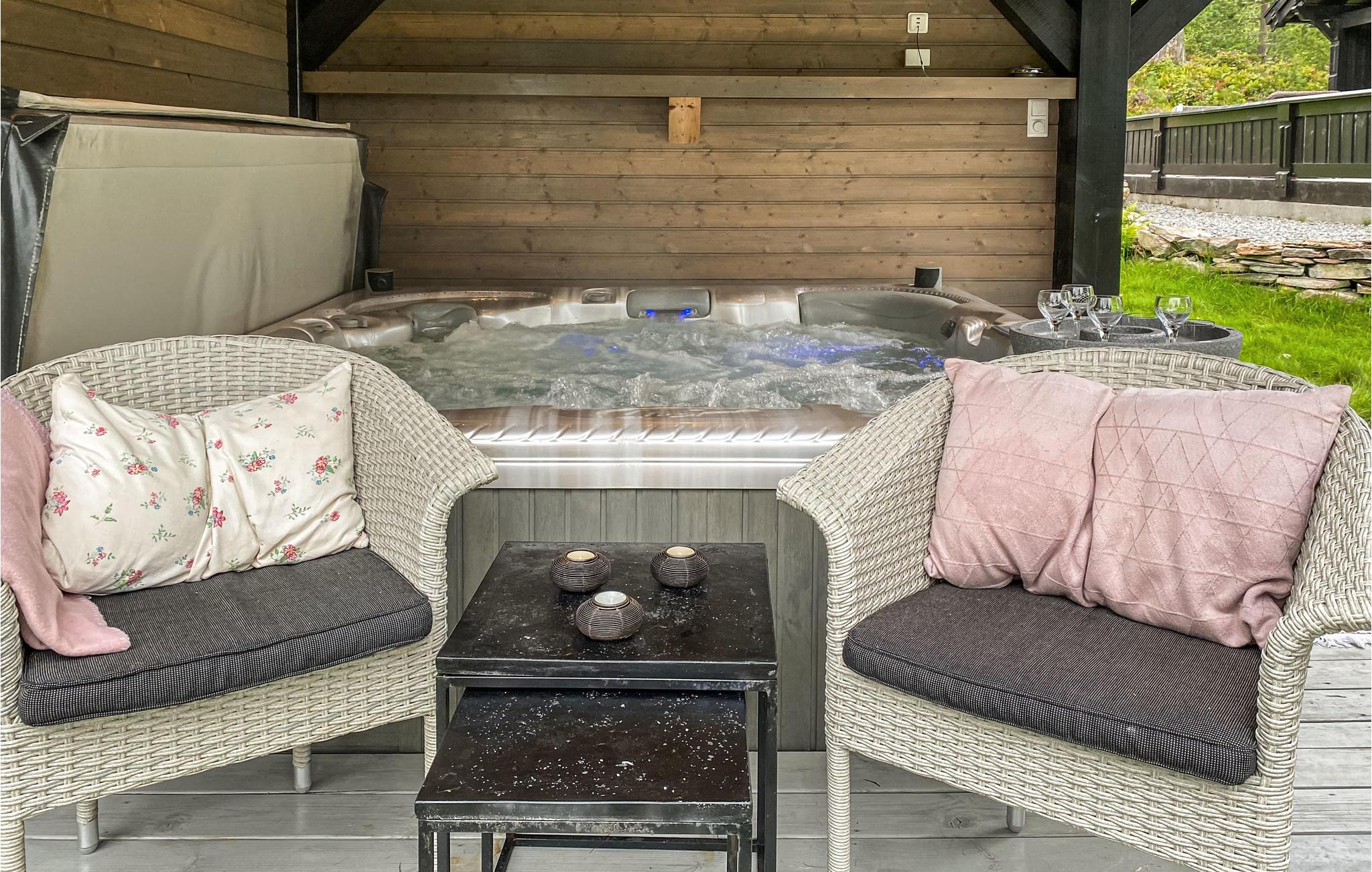 Få massasje av slitne turmuskler mens du nyter et glass vin i boblebadet.