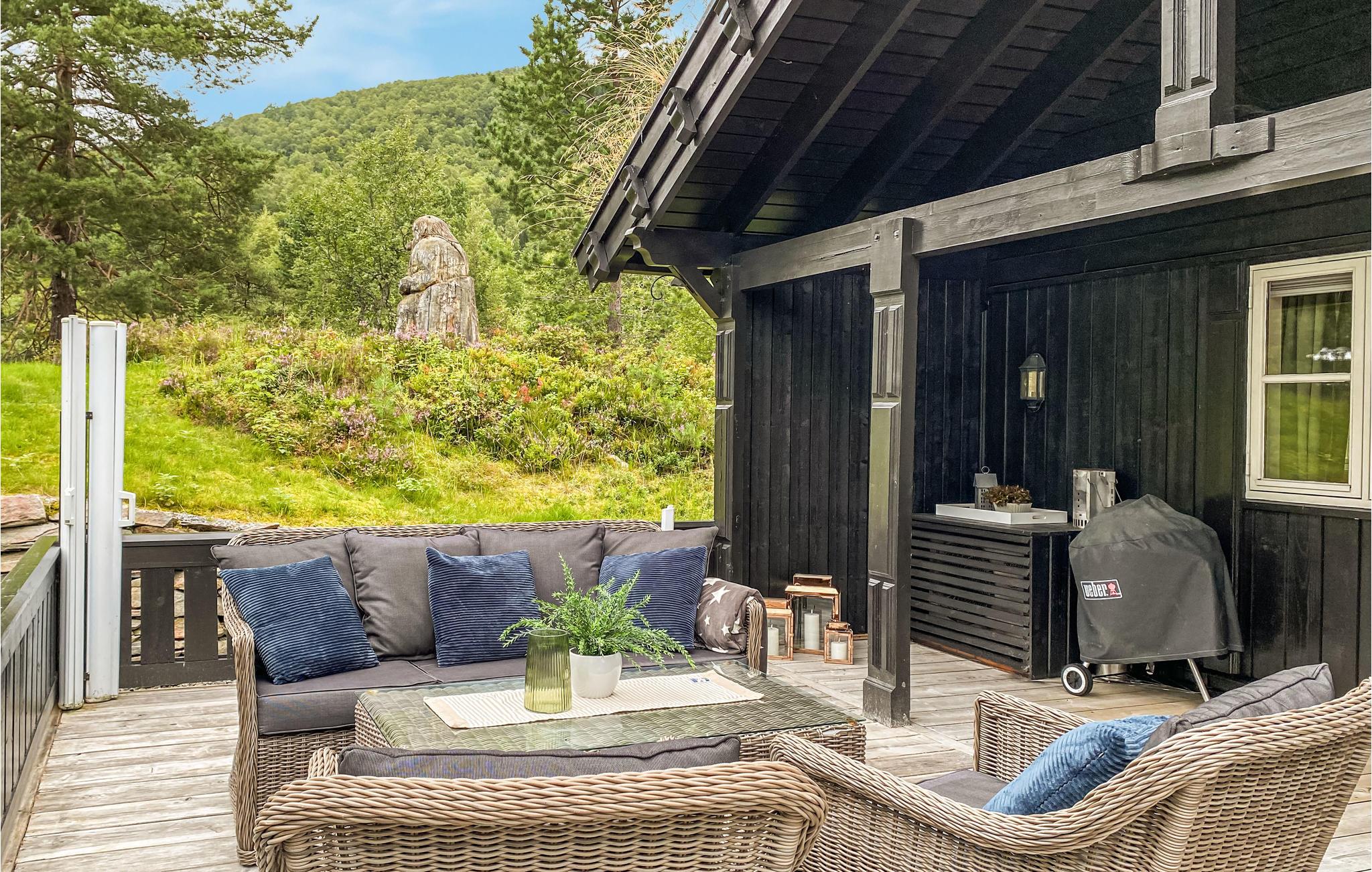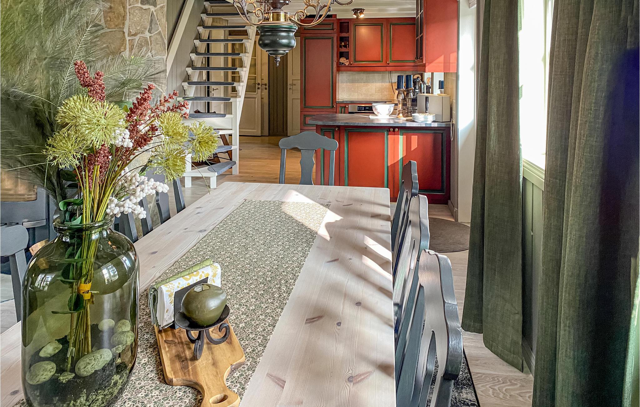 Nyt en eksklusiv fjellferie ved Nysætervatnet! Denne luksuriøse hytta i naturskjønne omgivelser ønsker deg og den store familien velkommen. Den barnevennlige hytta byr på en rekke fordeler og passer perfekt for deg som foretrekker både førsteklasses beliggenhet og høy bokomfort. Innvendig overrasker huset med en iøynefallende fargemiks av komplementærfargene rødt og grønt, noe som skaper spenning i interiøret og koselig varme. Her vil hele gruppen garantert føle seg hjemme. Kanskje dere skal feire noe spesielt? Ved det lange spisebordet kan du holde bursdagsselskap eller bare nyte herlige brunsjer og kvelder med deilig mat. På dagtid kan du lene deg tilbake på den store, åpne terrassen og slappe av i loungemøblene. Avslutt dagen med grillede delikatesser under åpen himmel.