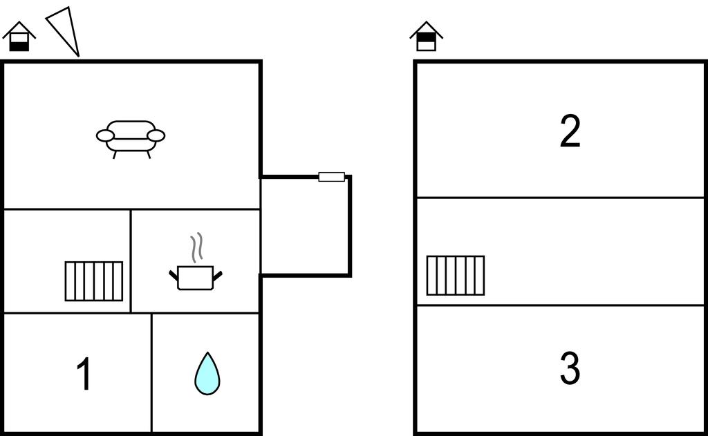 Merk: Soverommene i øverste etasje er ikke egnet for små barn, eldre eller gangbesværede på grunn av en bratt trapp.