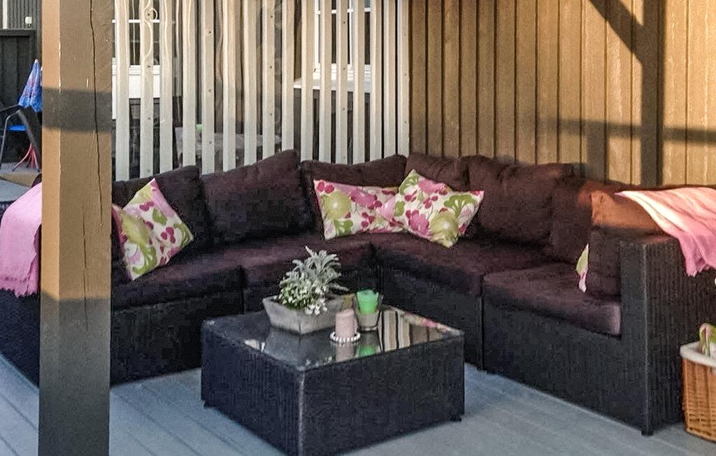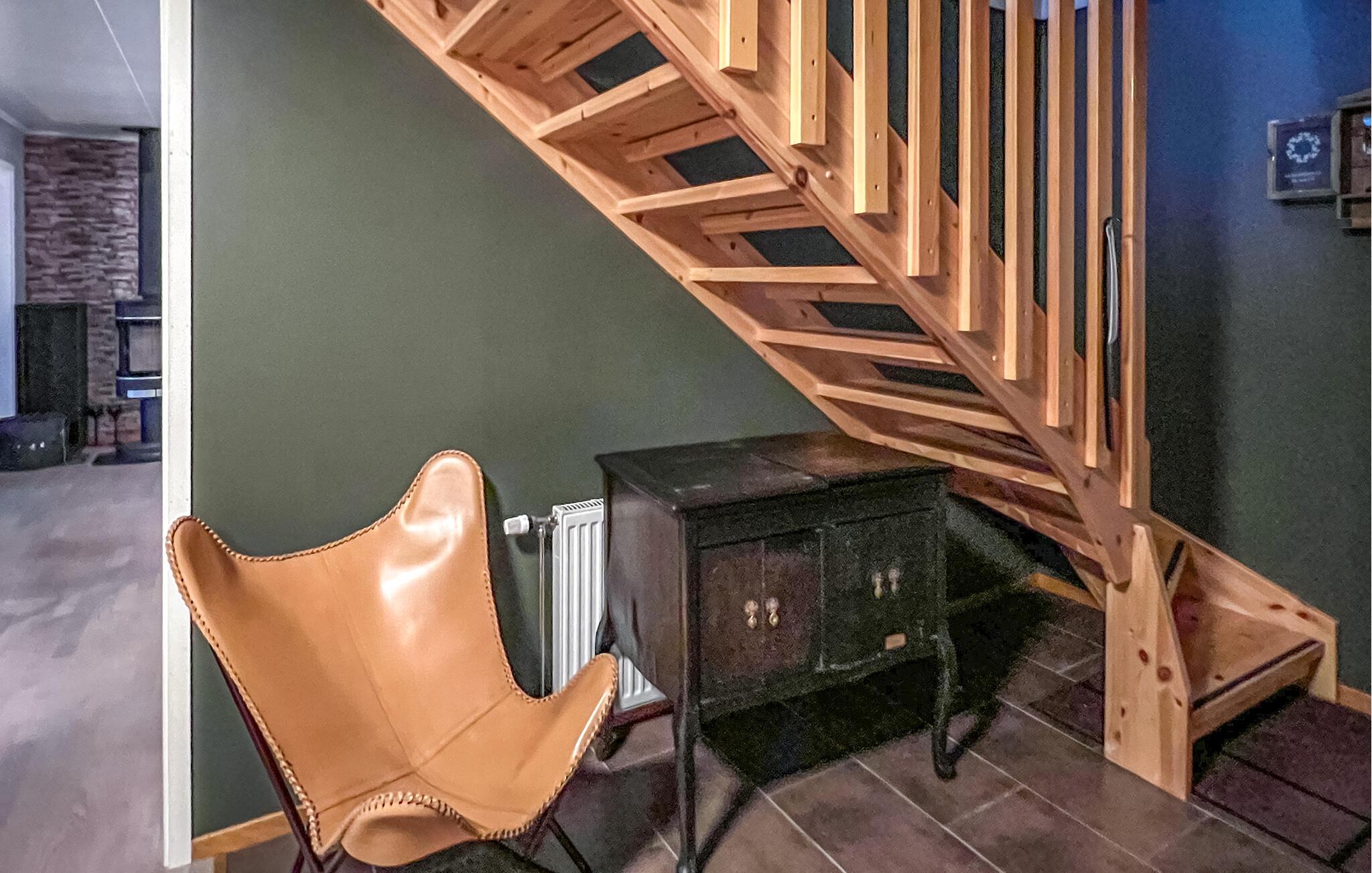 Slapp av når som helst på den skjermede terrassen og nyt den friske luften. Det romslige sittegruppen innbyr til å dele et måltid eller et glass vin om kvelden. Selv på kjøligere dager er dette rommet et koselig tilfluktssted der du kan kombinere nærhet til naturen med komforten i en stue.