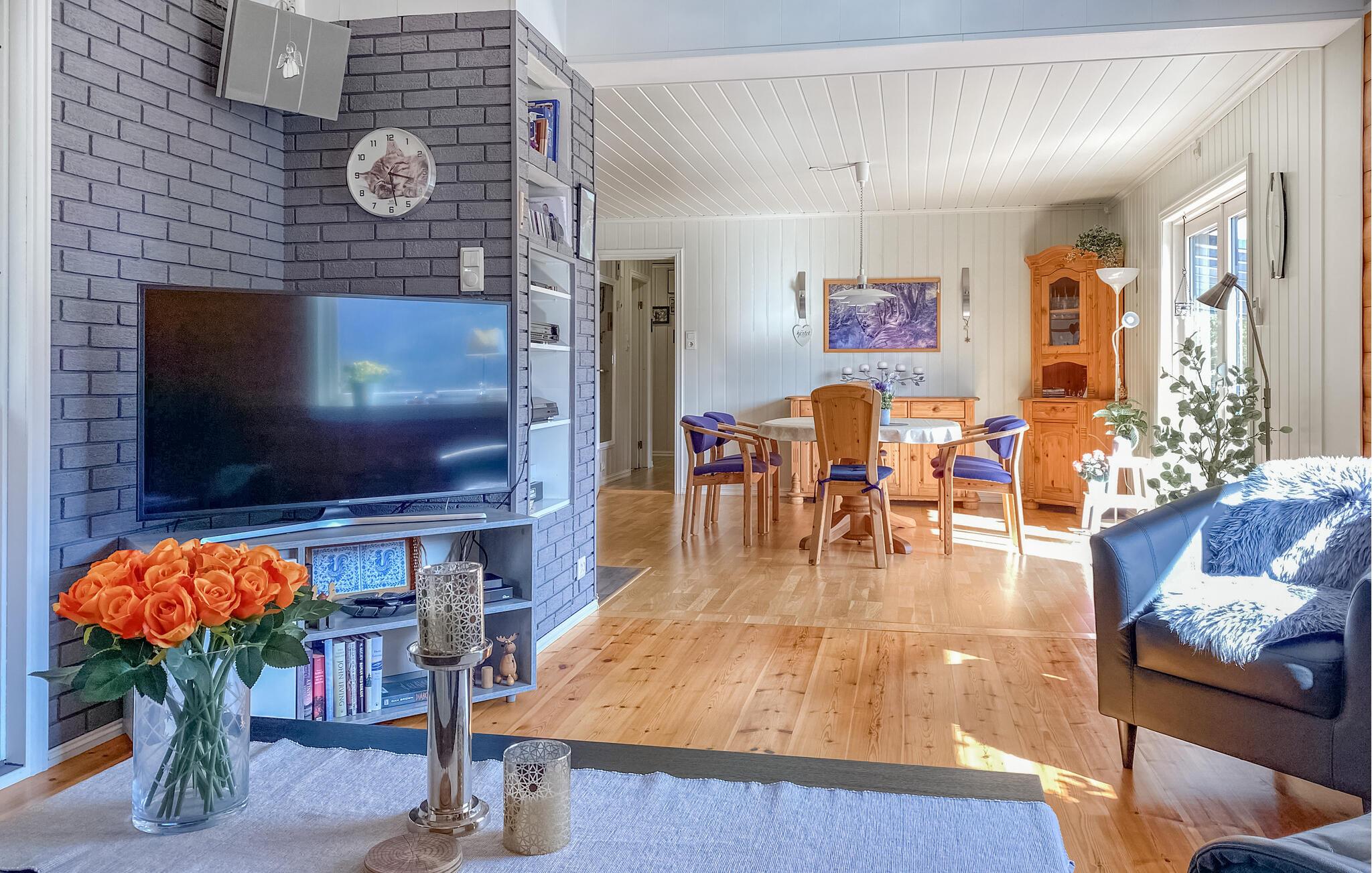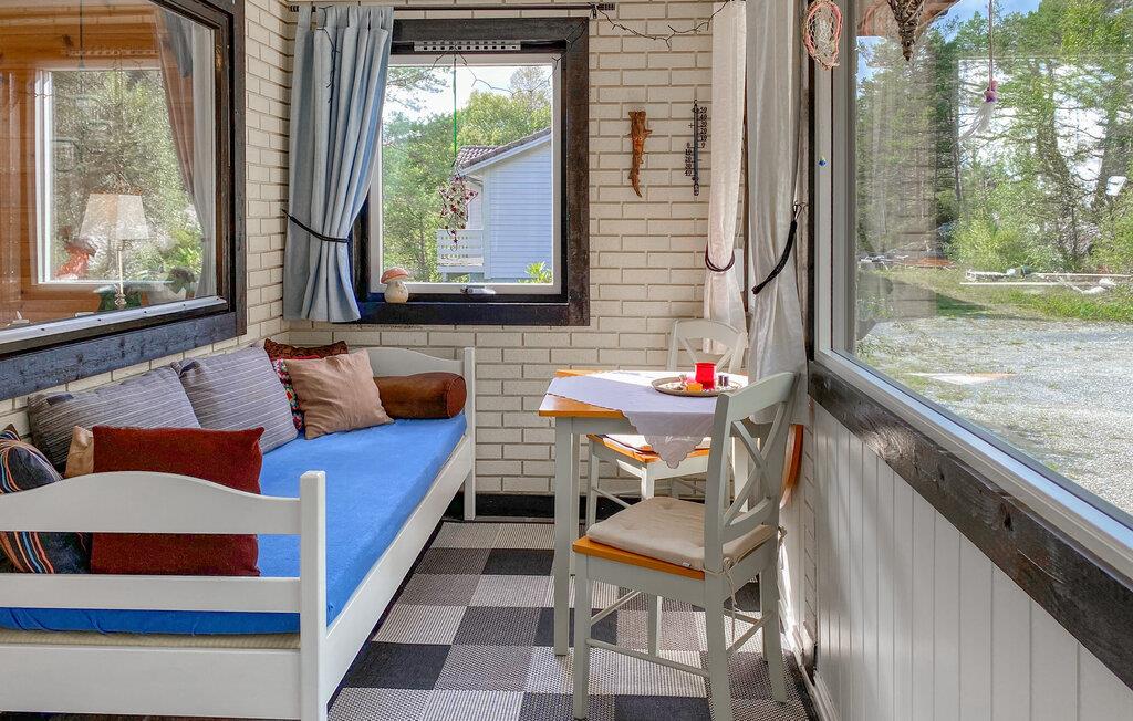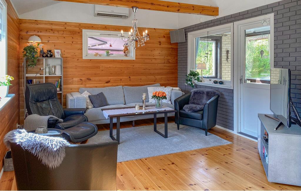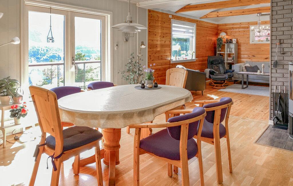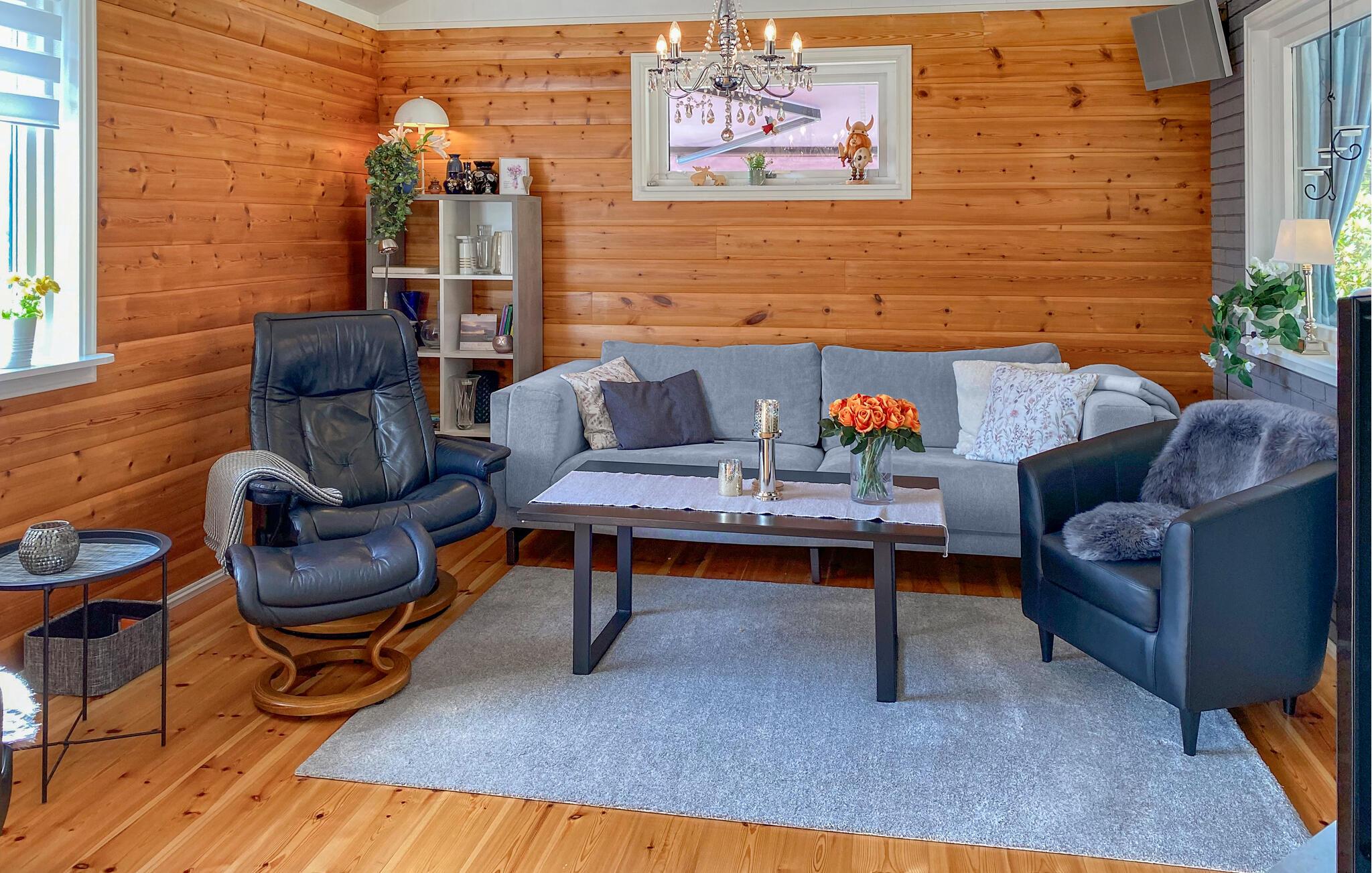 Dette idyllisk beliggende feriehuset, fordelt på to bygninger, tilbyr deg en uforlignelig oase av fred og avslapning. Den attraktive og smakfulle innredningen skaper en koselig atmosfære der du umiddelbart vil føle deg hjemme. De mange vinduene gir deg en fantastisk utsikt over den omkringliggende naturen og havet, mens husets varme trekonstruksjon gir en behagelig følelse av trygghet. Her kan du koble av i fred og ro, langt borte fra hverdagens kjas og mas, og nyte den fredelige stillheten på terrassen mens vedovnen knitrer.
