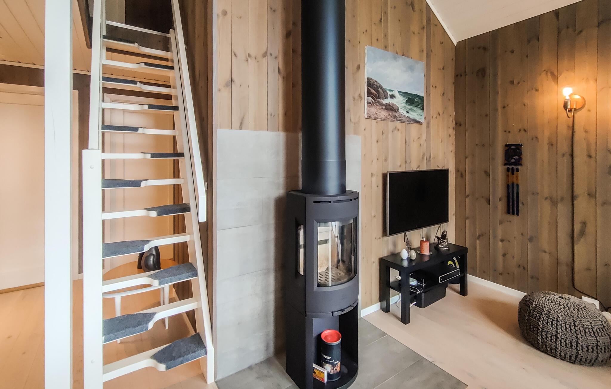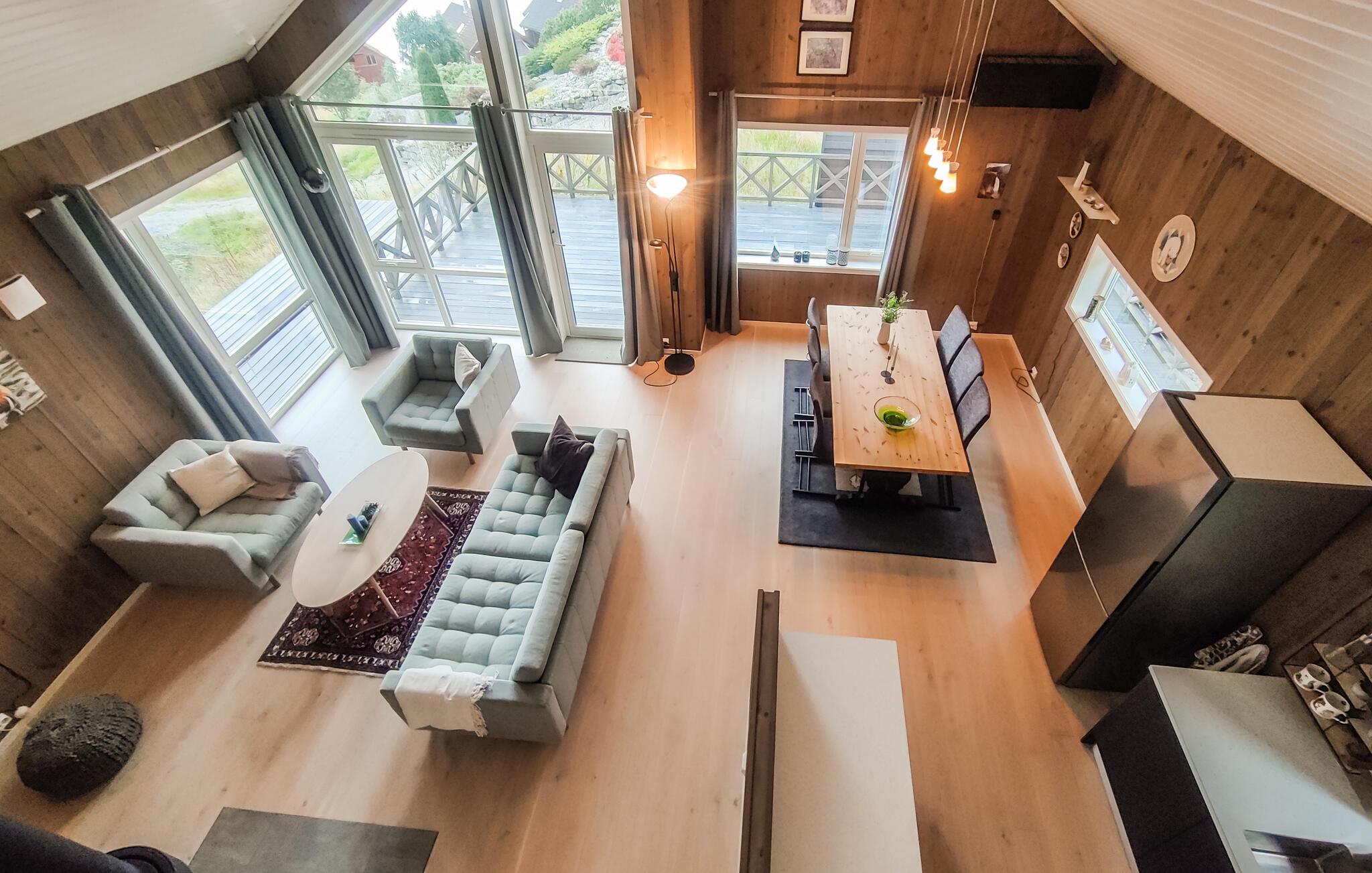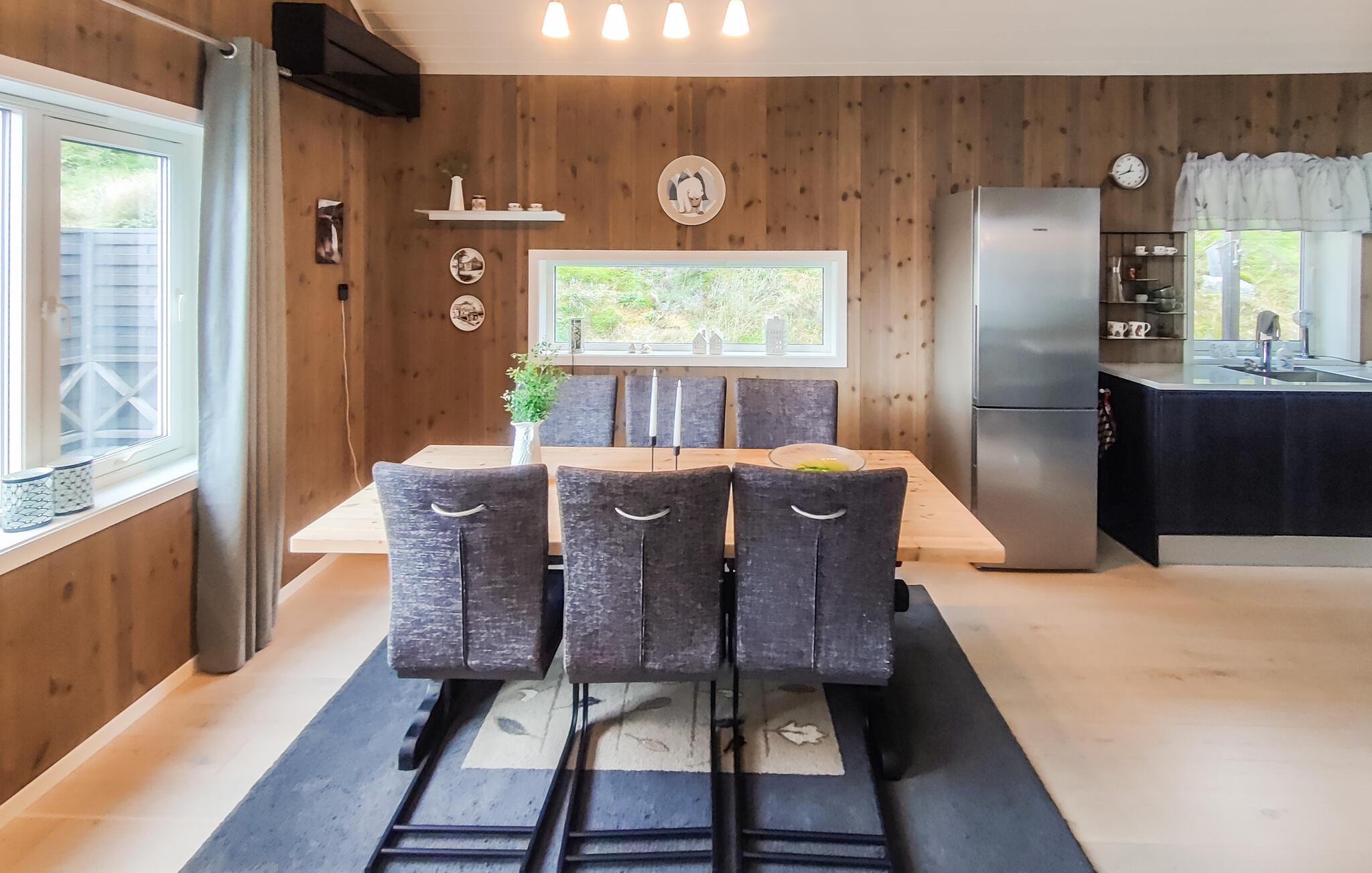 Dette moderne og stilfulle feriehuset i nærheten av Forsand har alt du trenger for en uforglemmelig ferie. Den åpne soveloftet skaper en luftig og koselig atmosfære, mens det velutstyrte kjøkkenet er perfekt for å lage mat sammen på kveldstid. Ved spisebordet kan dere spille spill eller ha lange samtaler før dere koser dere i stuen ved den knitrende vedovnen. Nyt utsikten over fjorden gjennom de store vinduene, eller gå ut på den romslige terrassen for å nyte solen og runde av kvelden med en grillfest.